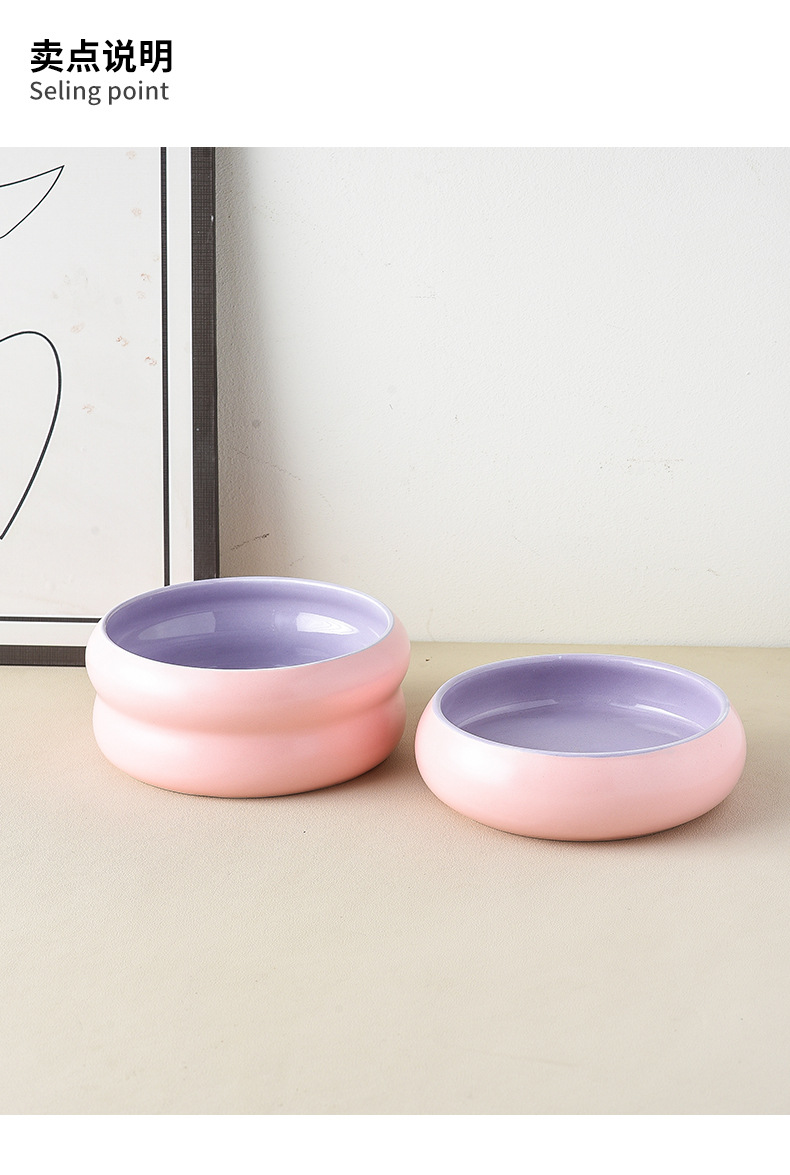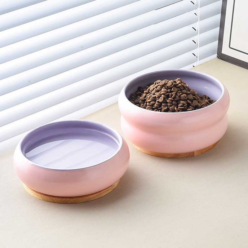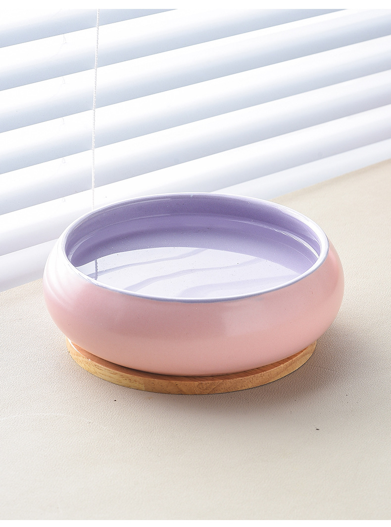 단일 롤러 그릇-보라색 + 나무 트레이 내부 외부 핑크