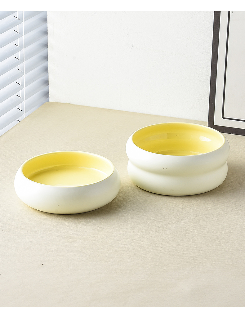 단일 롤러 그릇-외부 베이지 내부 우유 노란색 + 나무 트레이