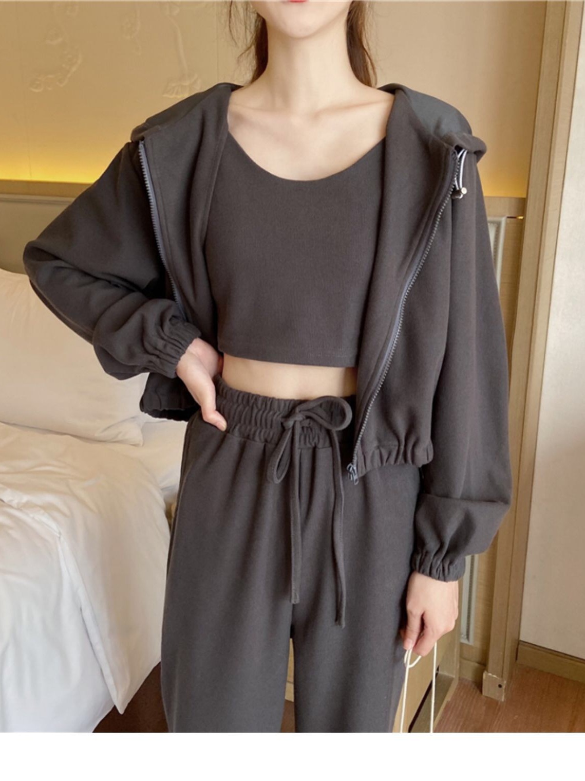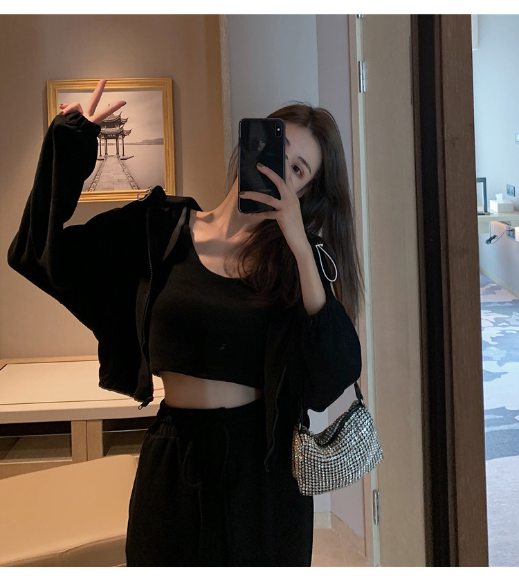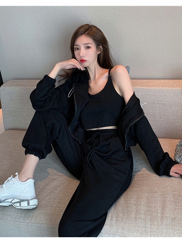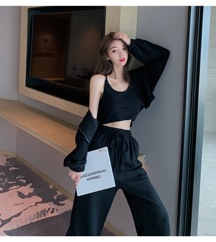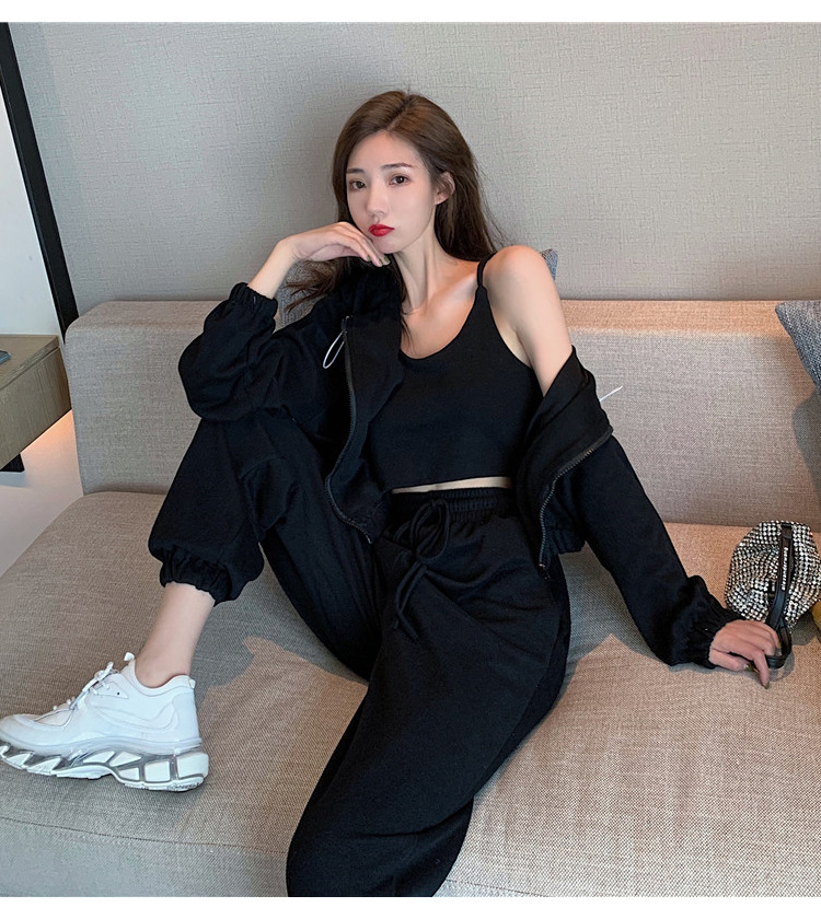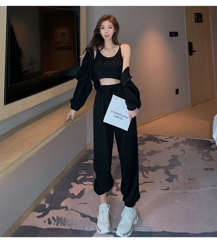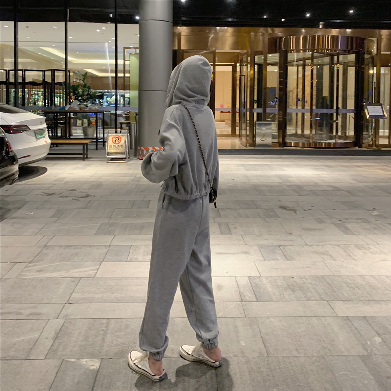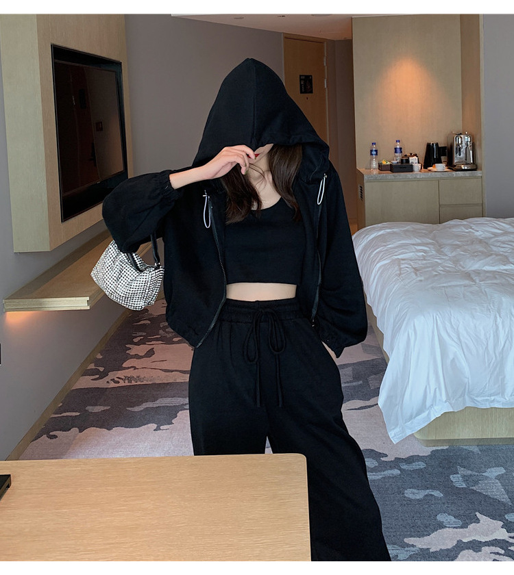 국경 캐주얼 가을 새로운 3 피스 느슨한 얇은 후드 스웨터 재킷 패션 스포츠웨어 세트 여성 패션