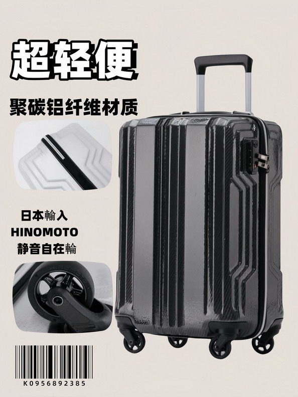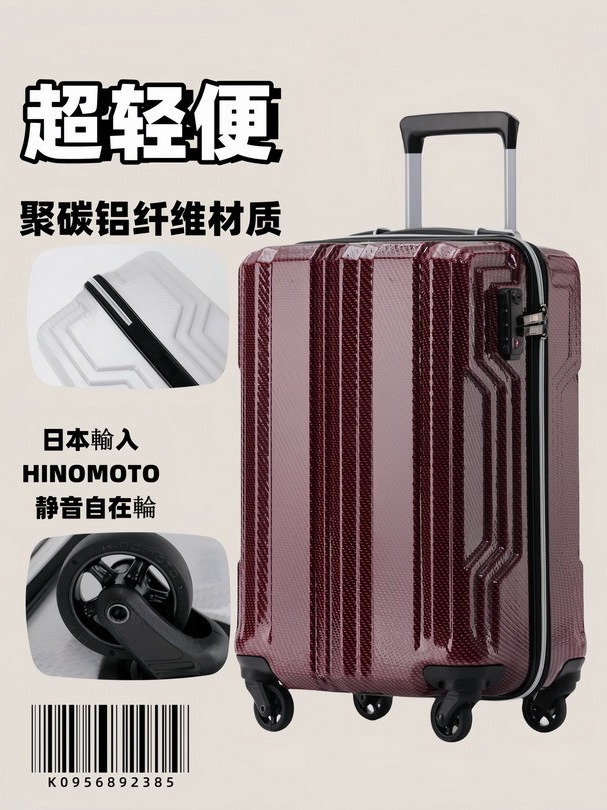 초경량 새로운 폴리 카본 알루미늄 섬유 수하물 음소거 유니버설 휠 트롤리 케이스 등록 위탁 여행 가방 남성과 여성