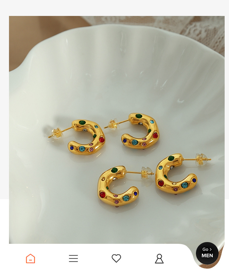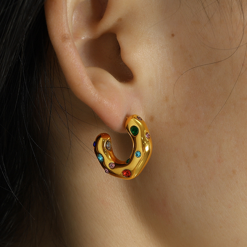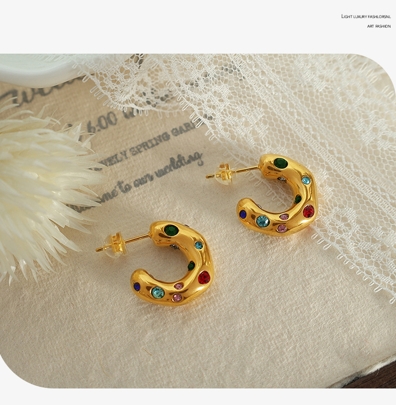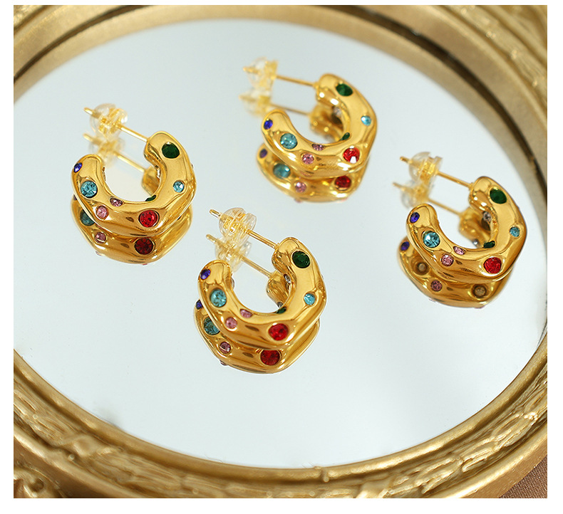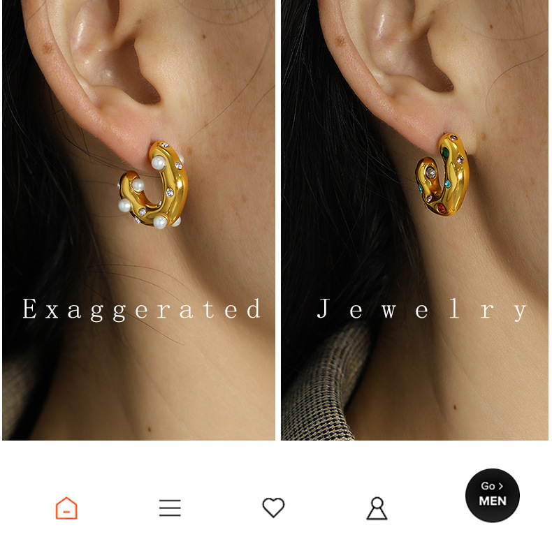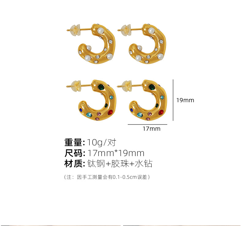 유럽과 미국의 국경 티타늄 스틸 C 자형 중공업 상감 모조 다이아몬드 진주 불규칙한 귀걸이 예술적 복고풍 스타일