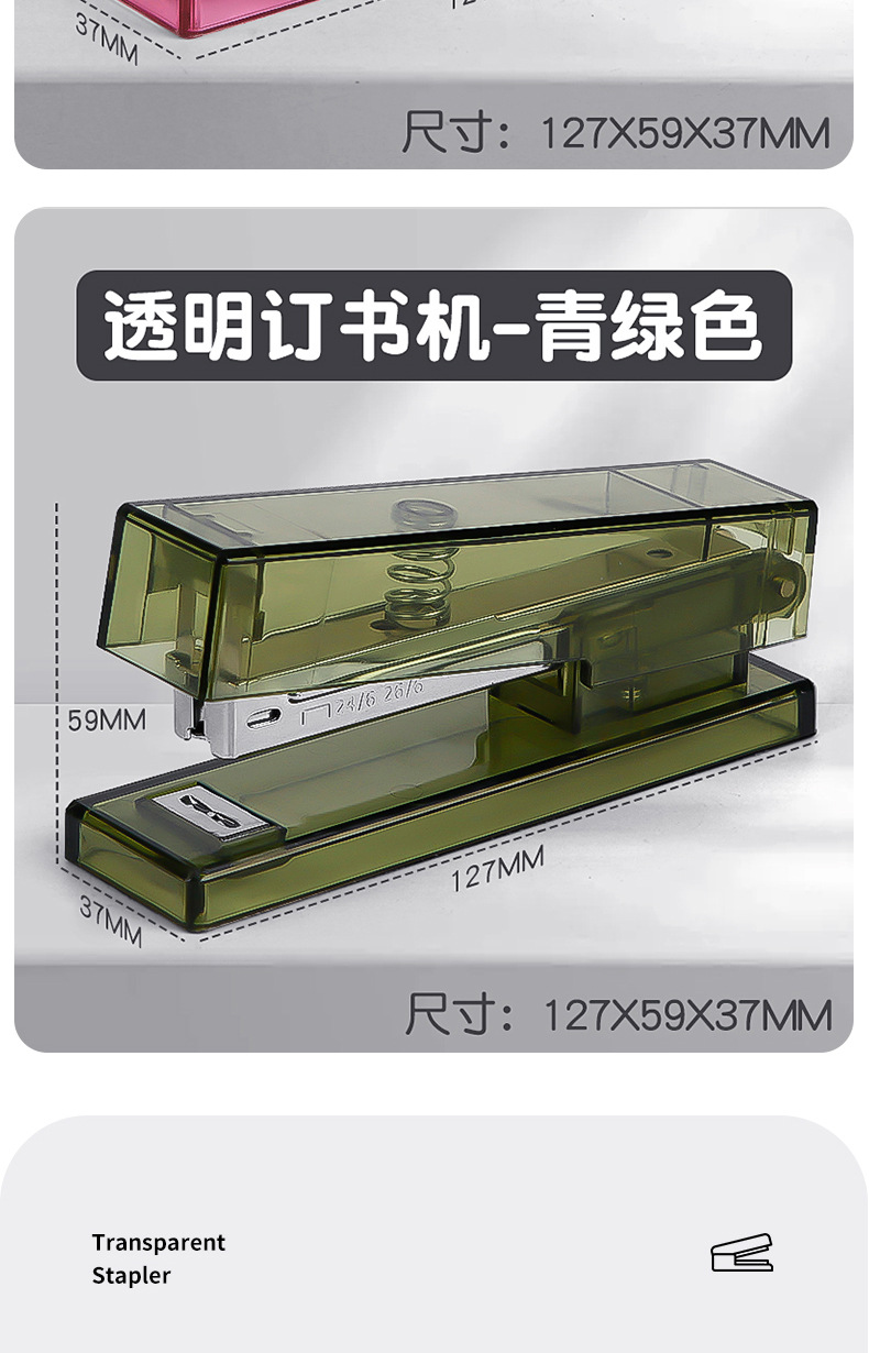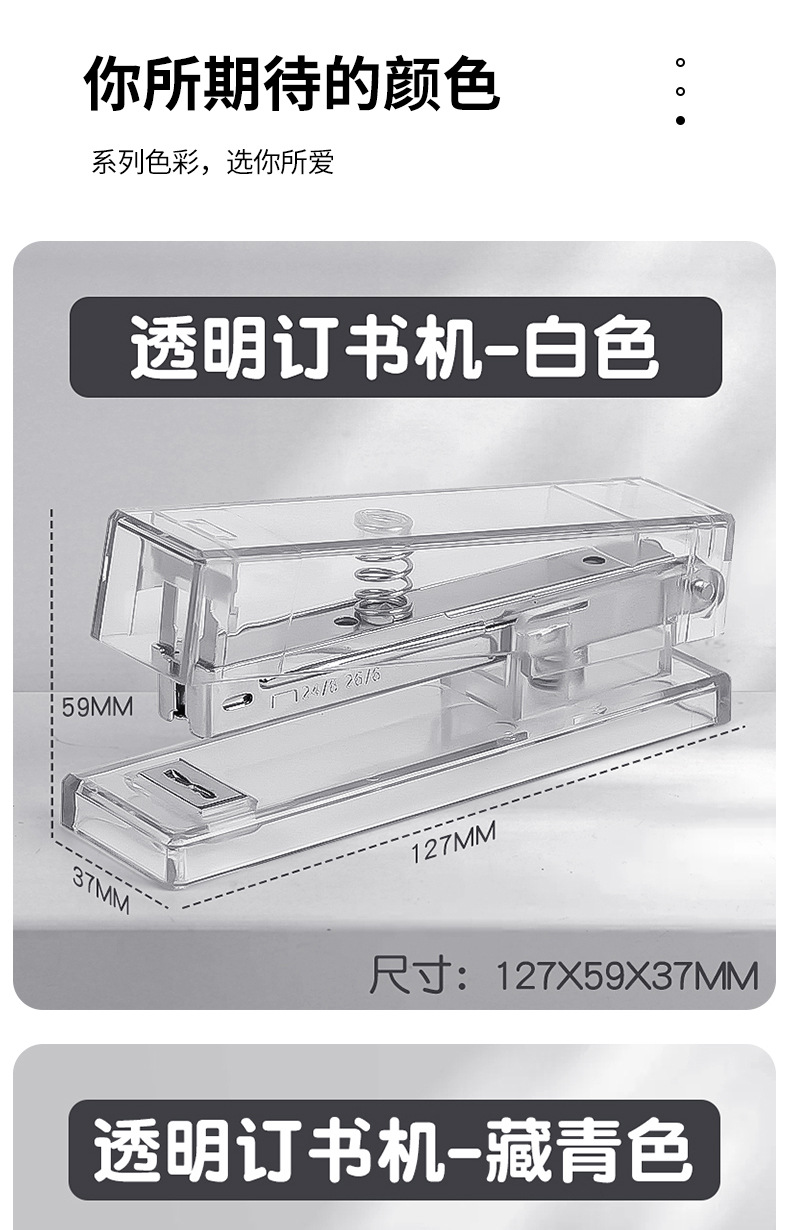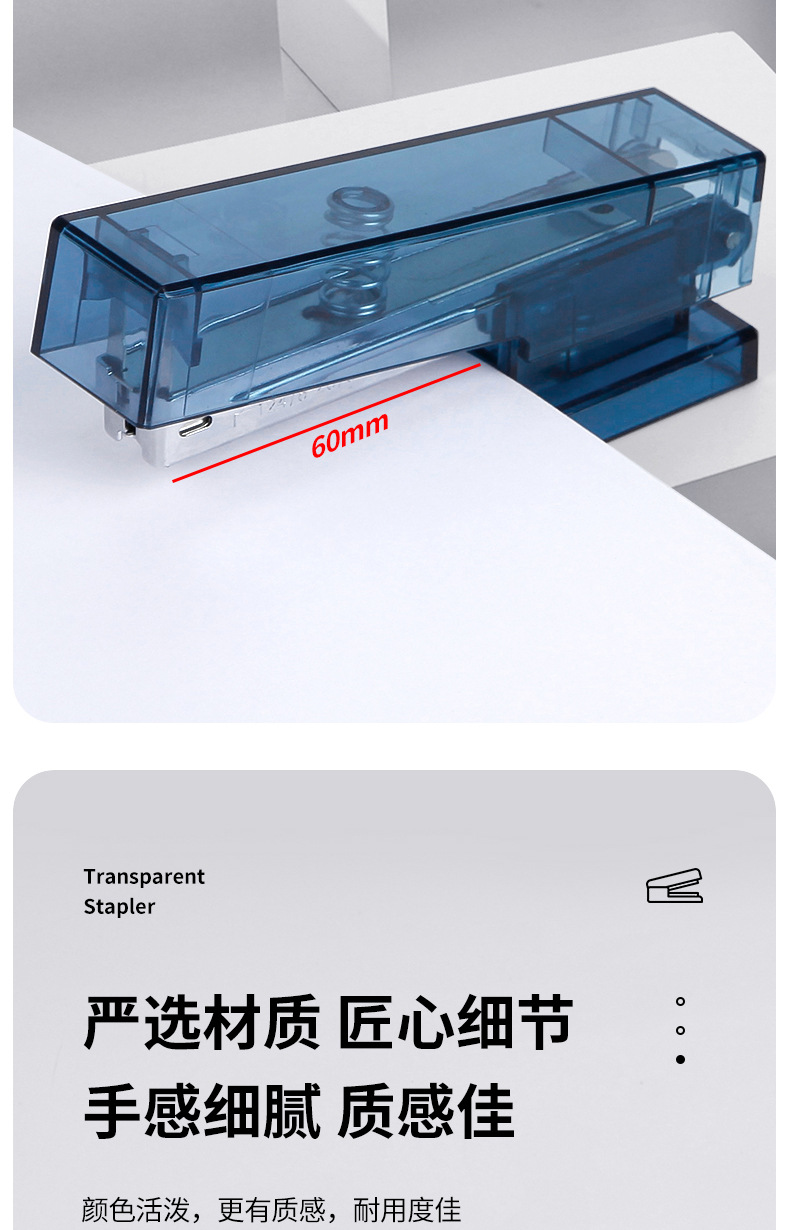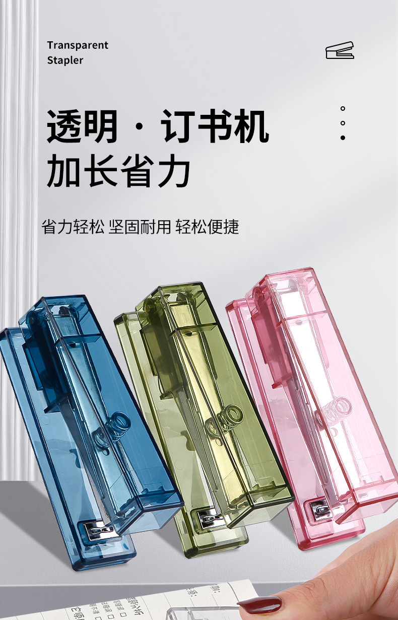 귀여운 투명 스테이플러, 스타일 학생 문구 사무실 용품 창조적 인 간단한 휴대용 스테이플러 도매