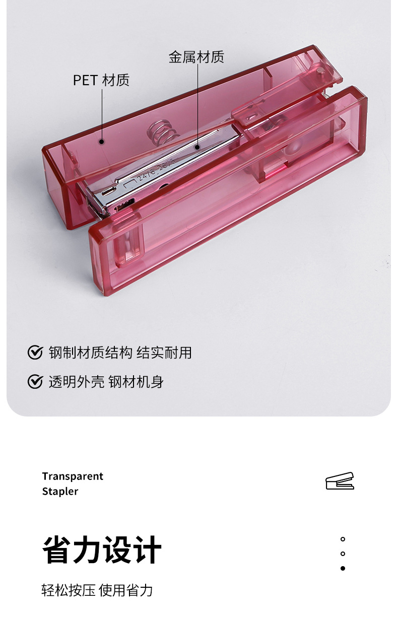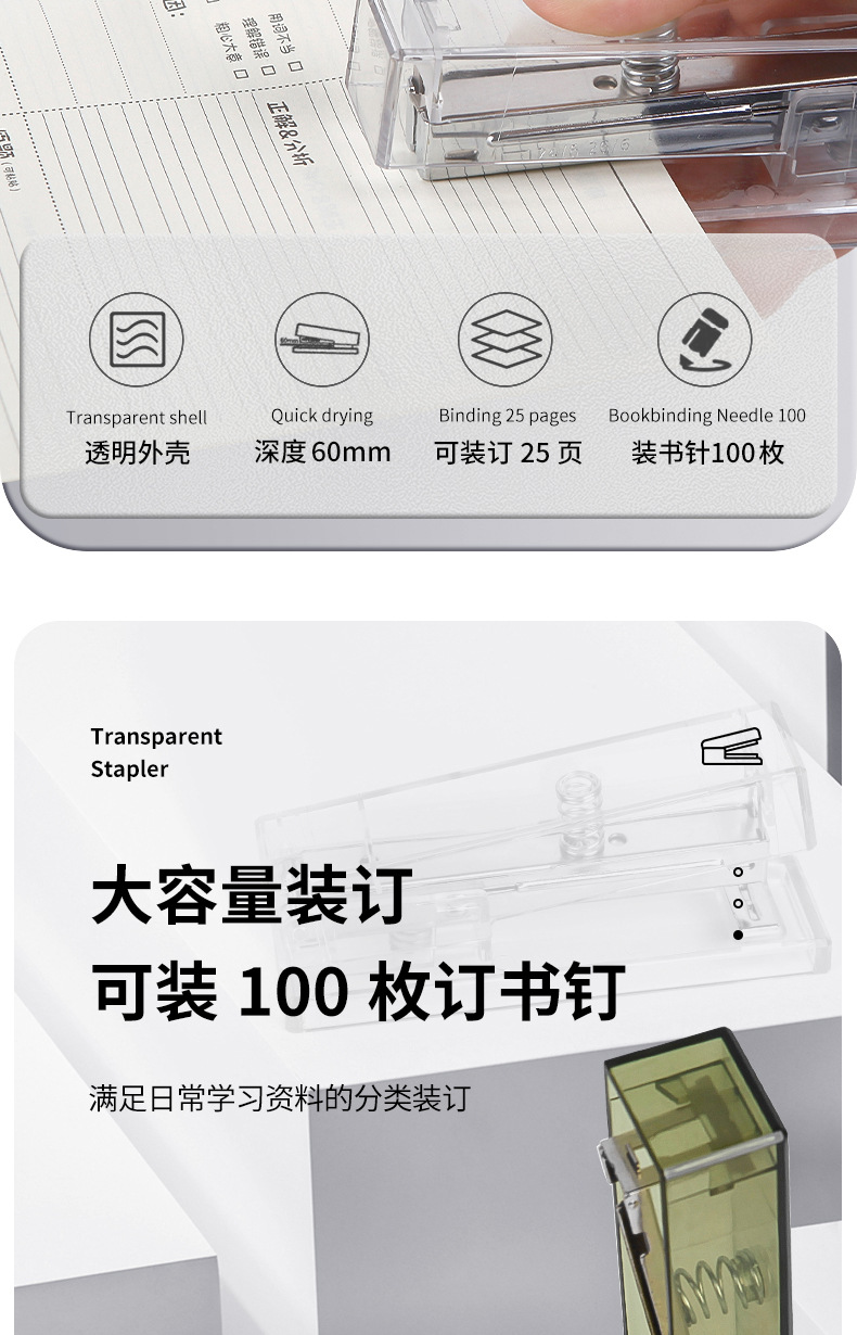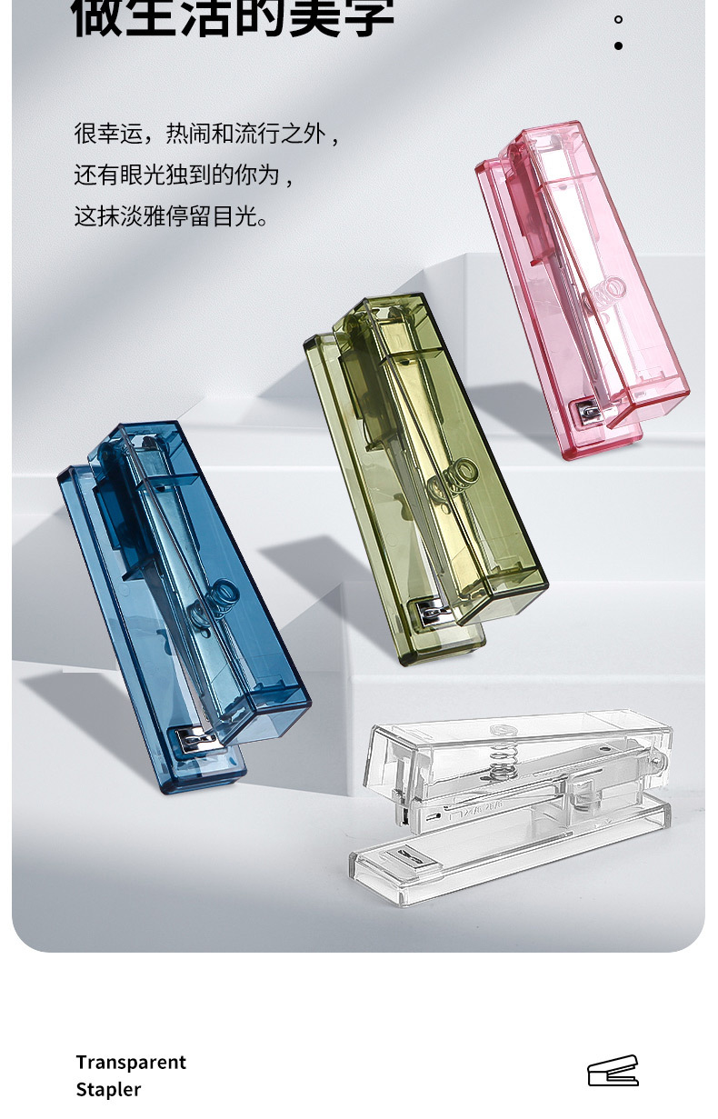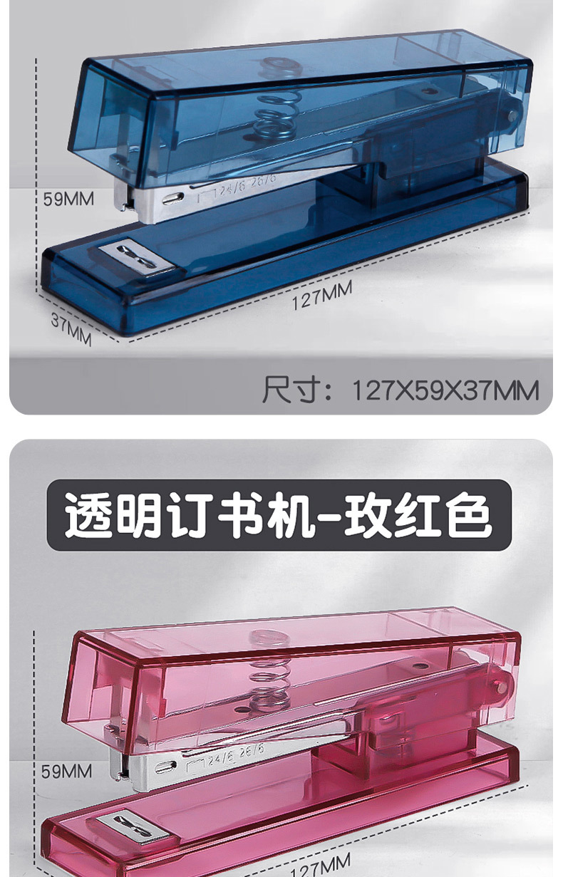 귀여운 투명 스테이플러, 스타일 학생 문구 사무실 용품 창조적 인 간단한 휴대용 스테이플러 도매