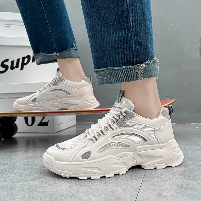 운동화 남성용 캐주얼 메쉬 투박한 스니커즈 남성용 신발 봄 새로운 다재다능한 트렌디 한 러닝 화이트 슈즈 남성용