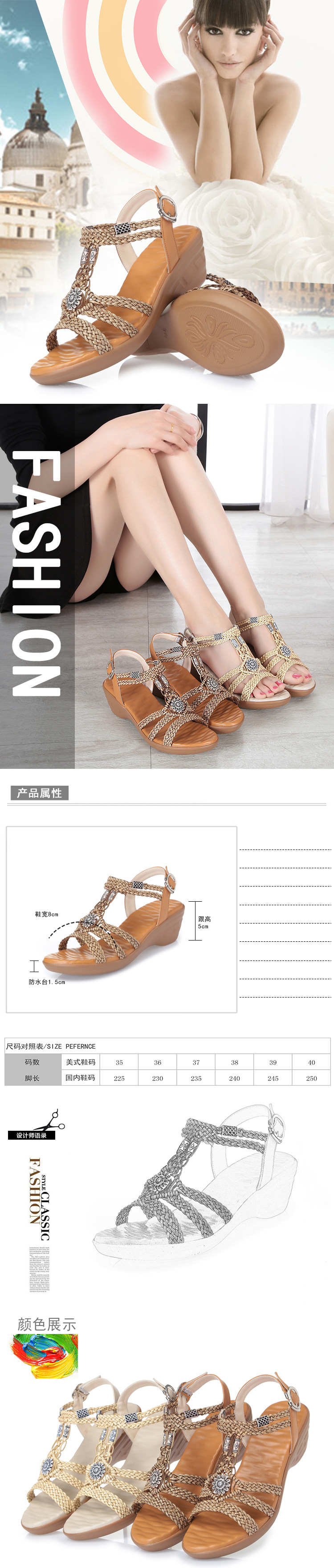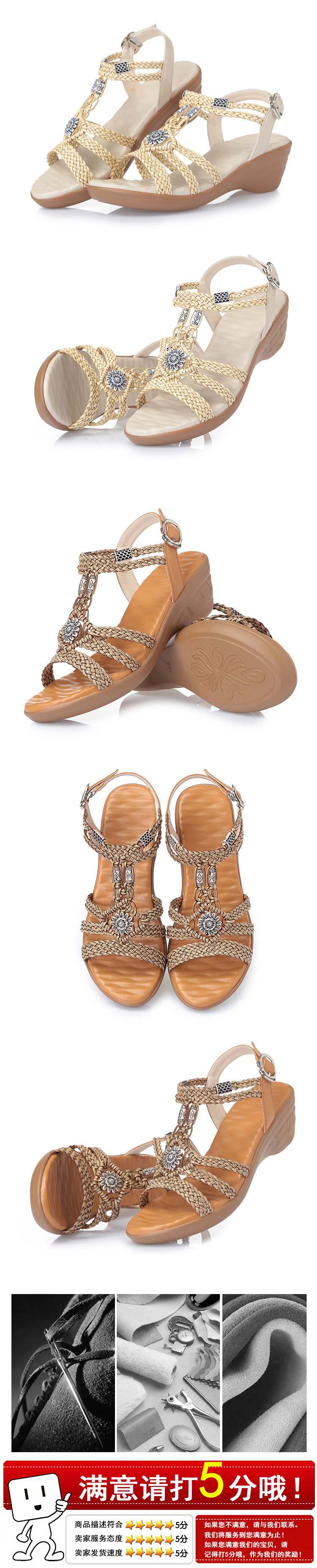 여름 새로운 2024 캐주얼 여성 신발 정품 가죽 웨지 샌들 중간 힐 민족 스타일 짠 플러스 사이즈 엄마 샌들