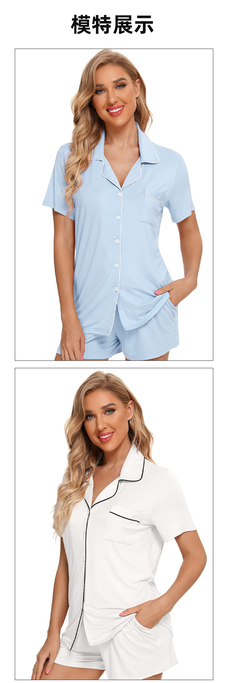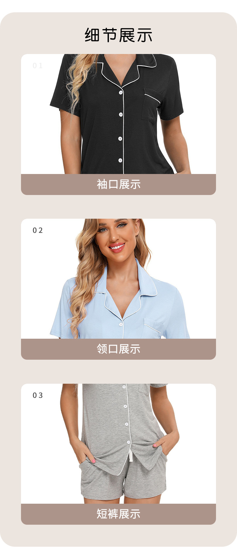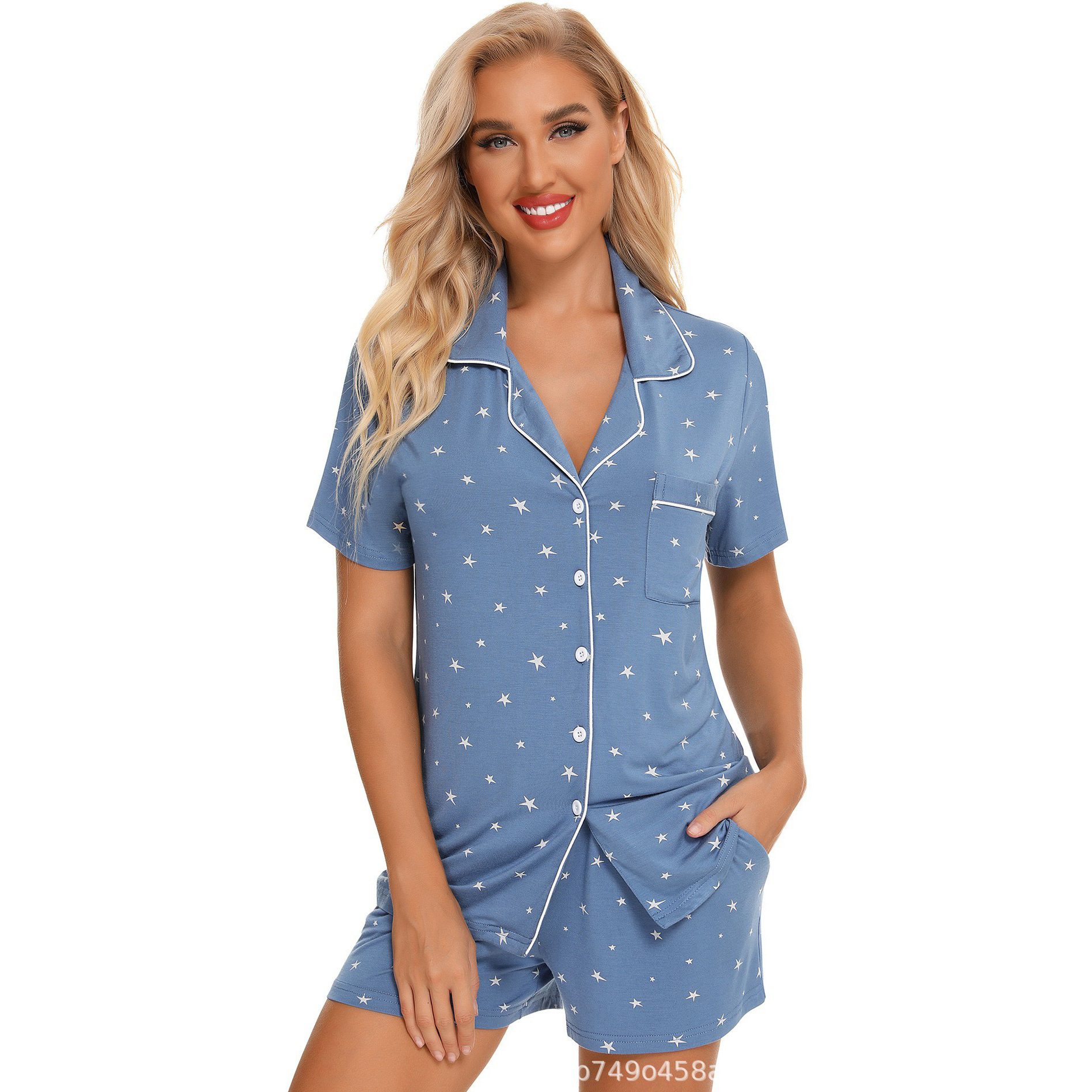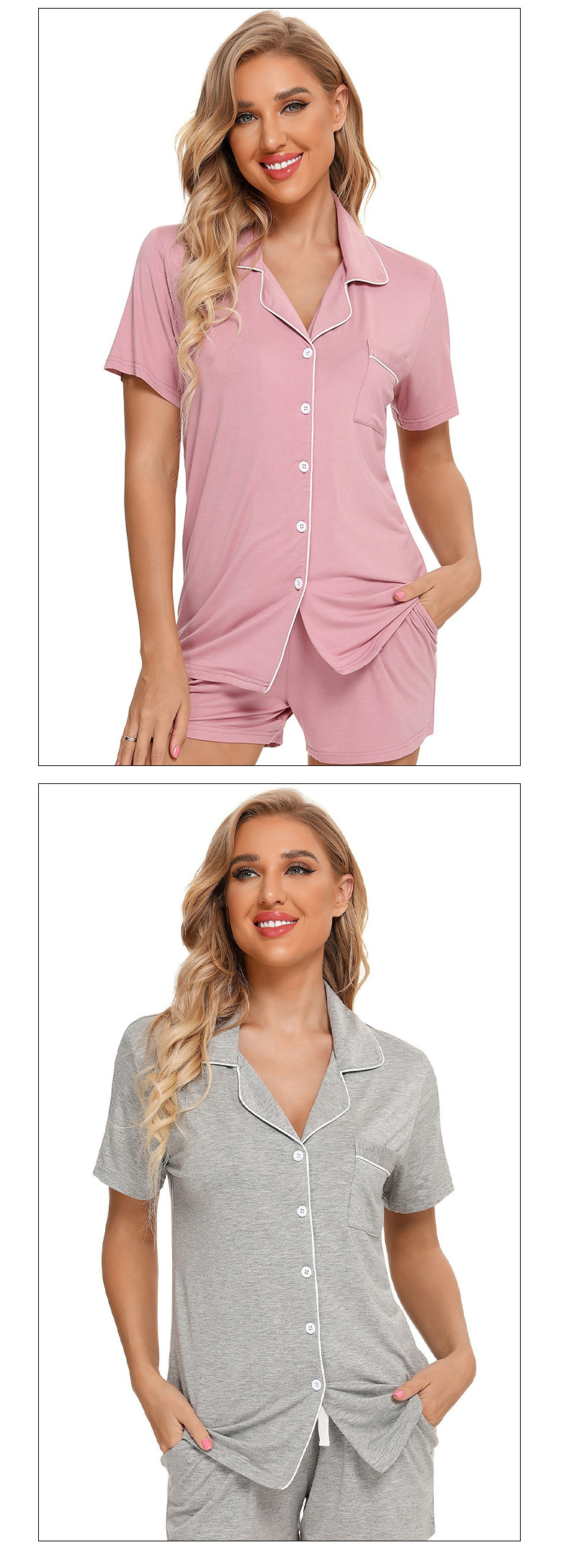 크리스마스 모달 파자마 여성 여름 옷깃 반팔 반팔 반바지 투피스 세트 세트 홈웨어