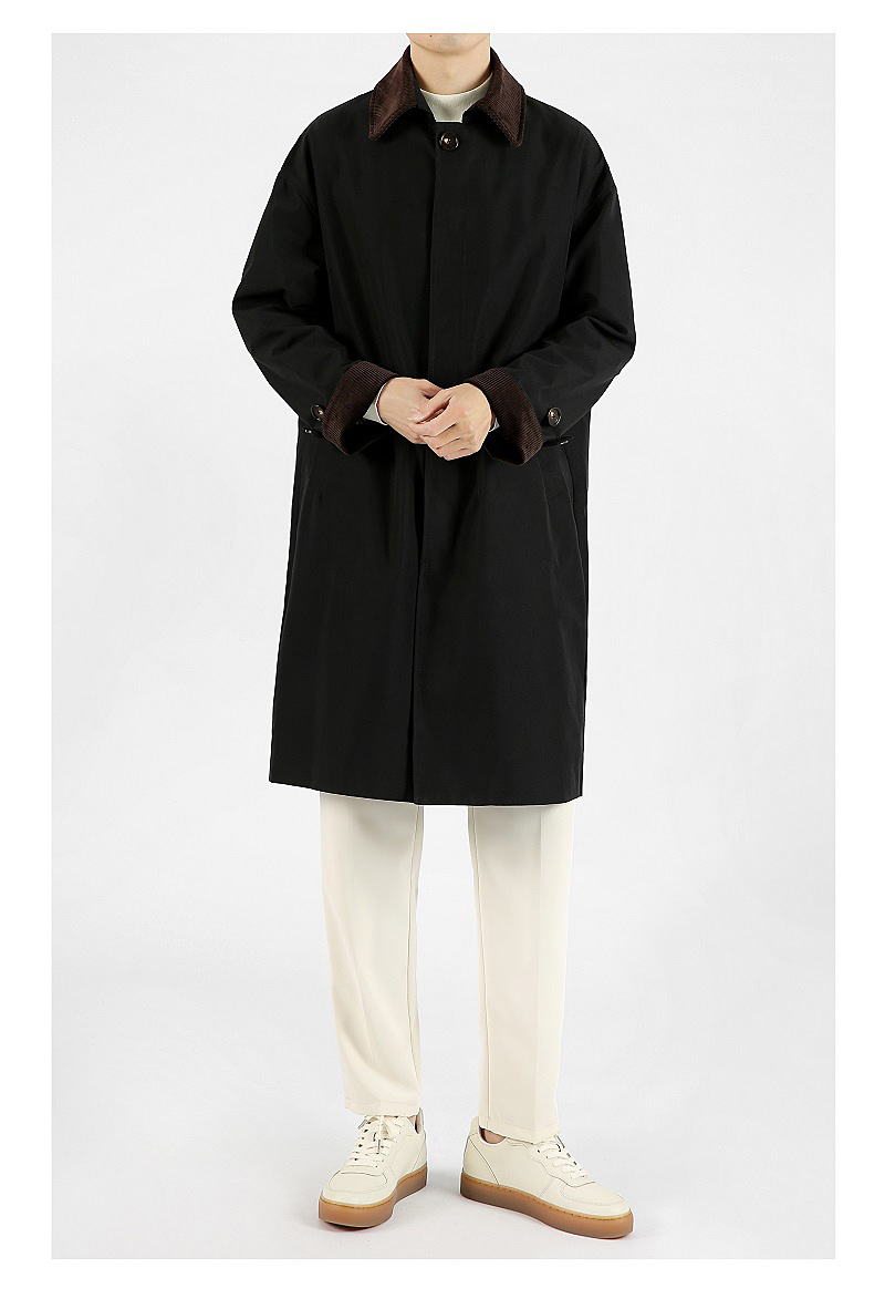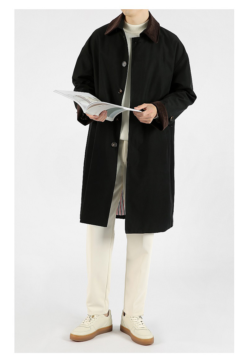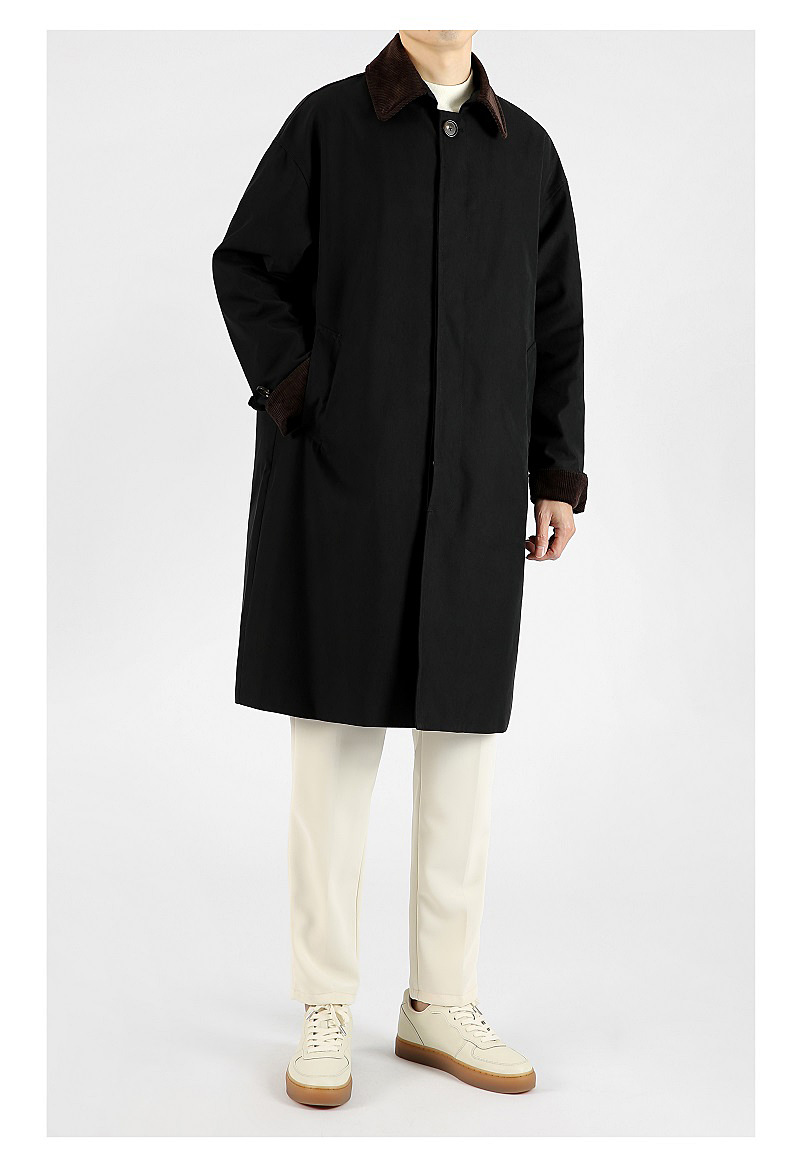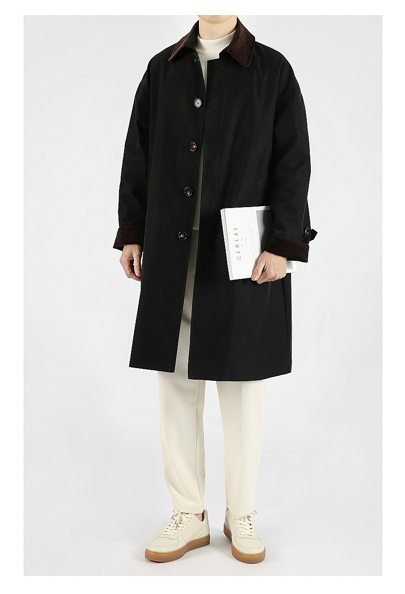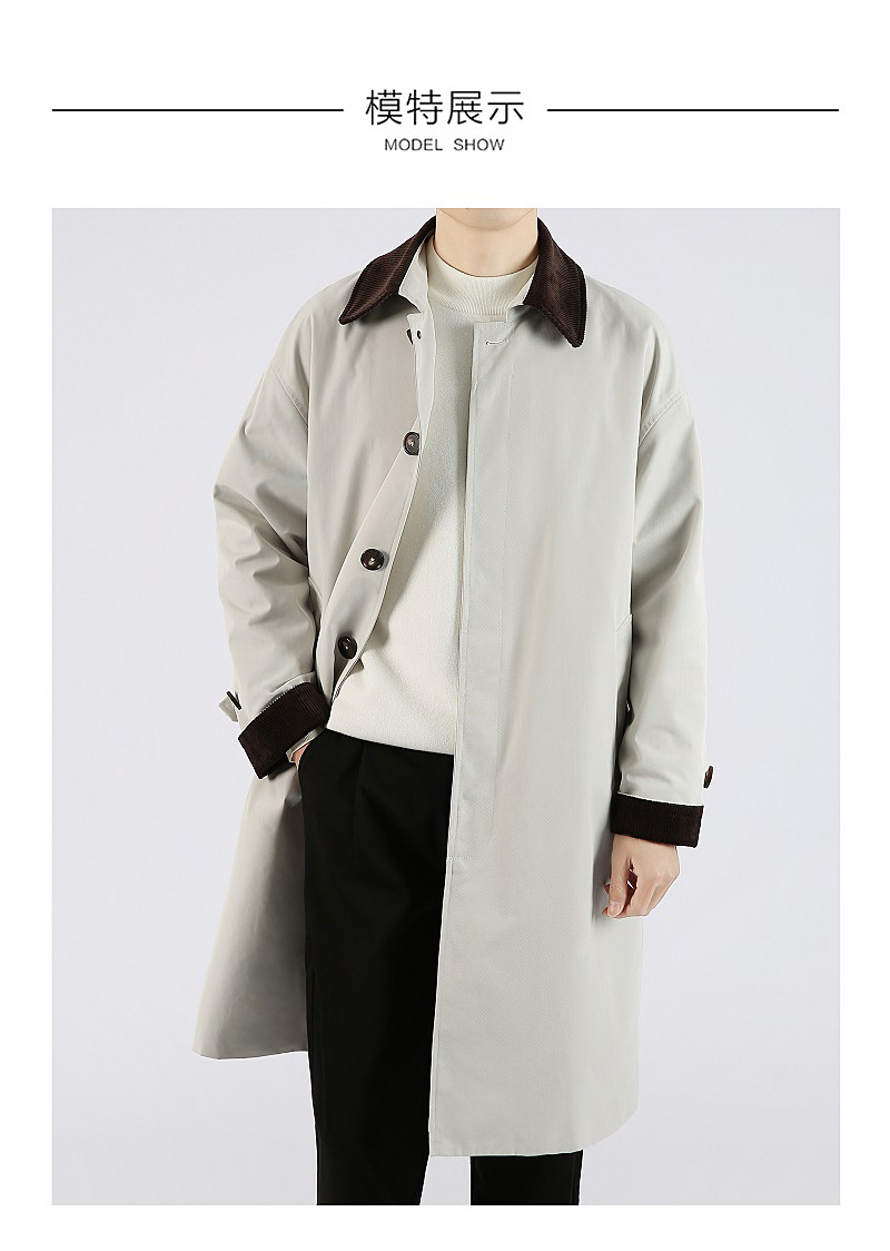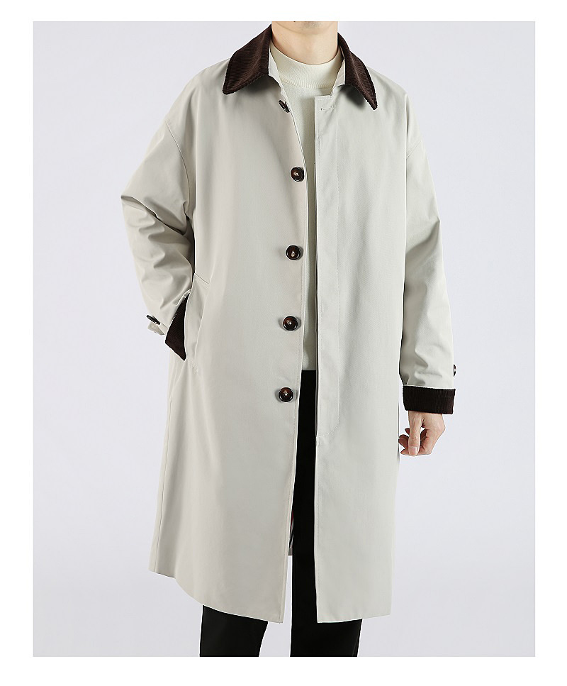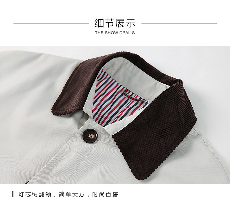 봄 가을 신상품 레트로 스타일 중간 길이의 가벼운 성숙한 스타일 코트 트렌디한 루즈핏 캐주얼 다용도 레트로 스타일 남성용 코듀로이 라펠 윈드브레이커