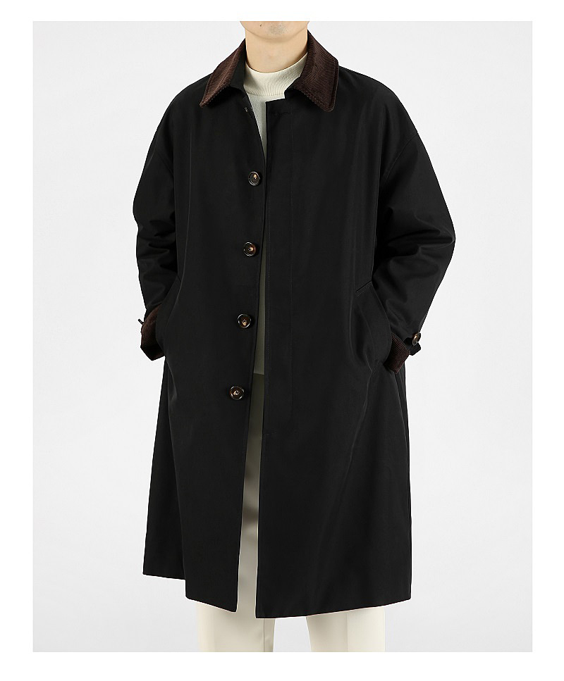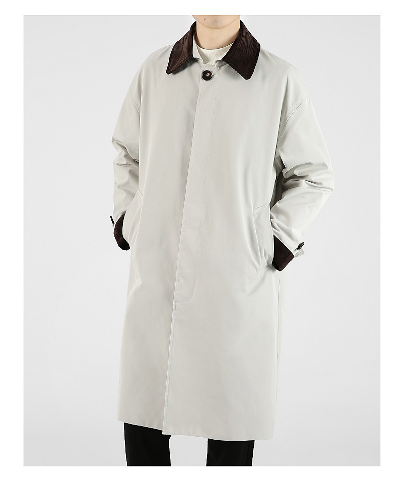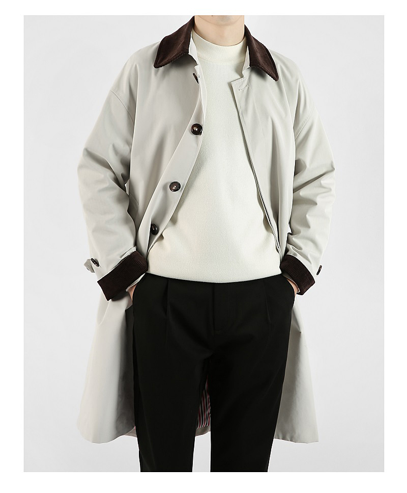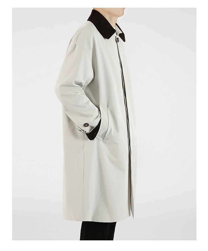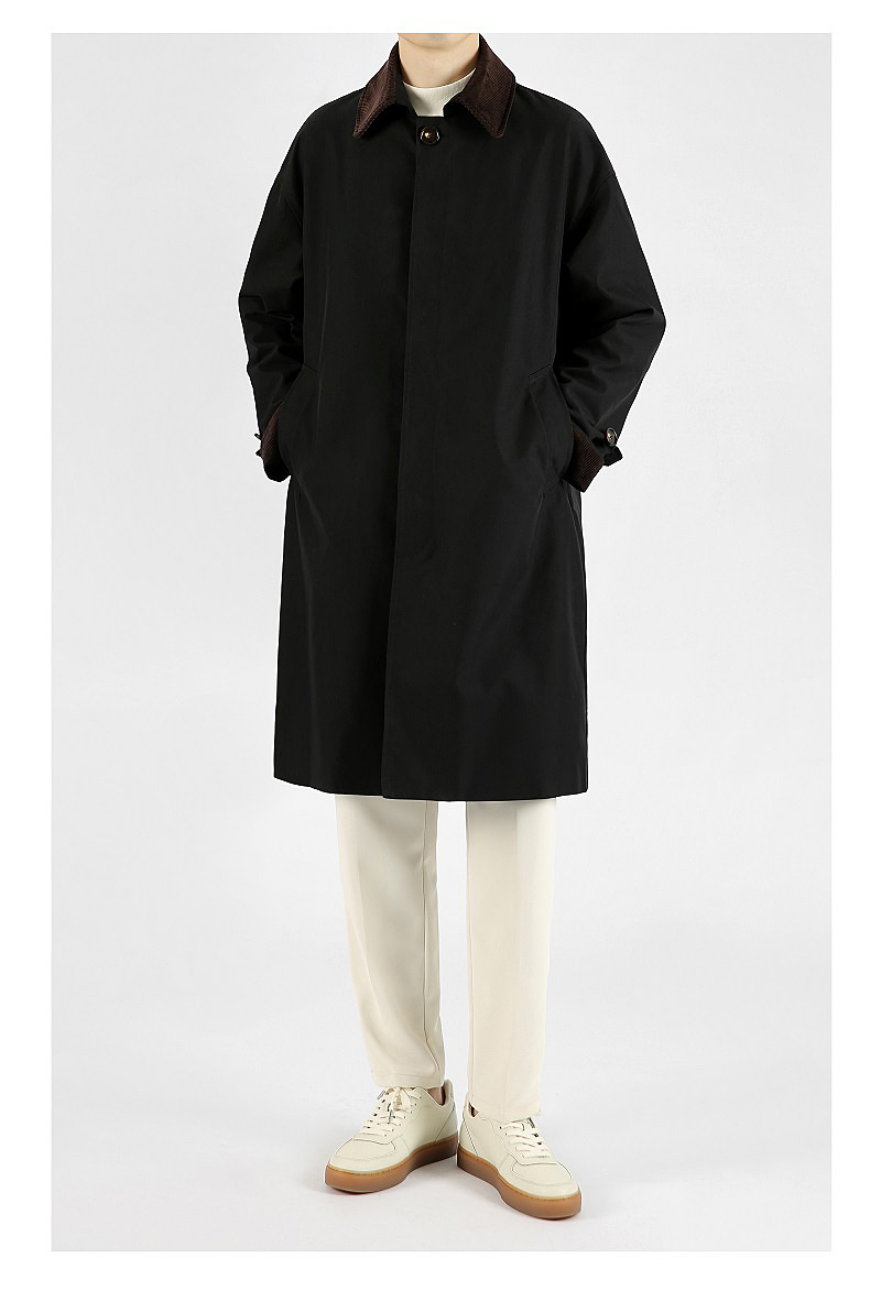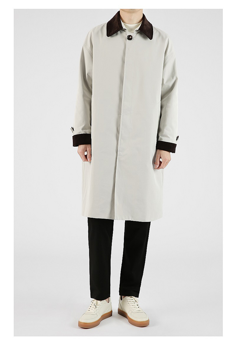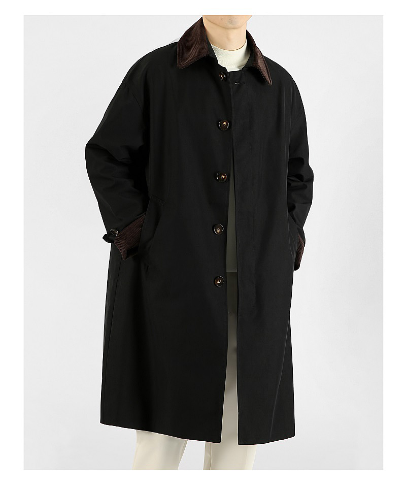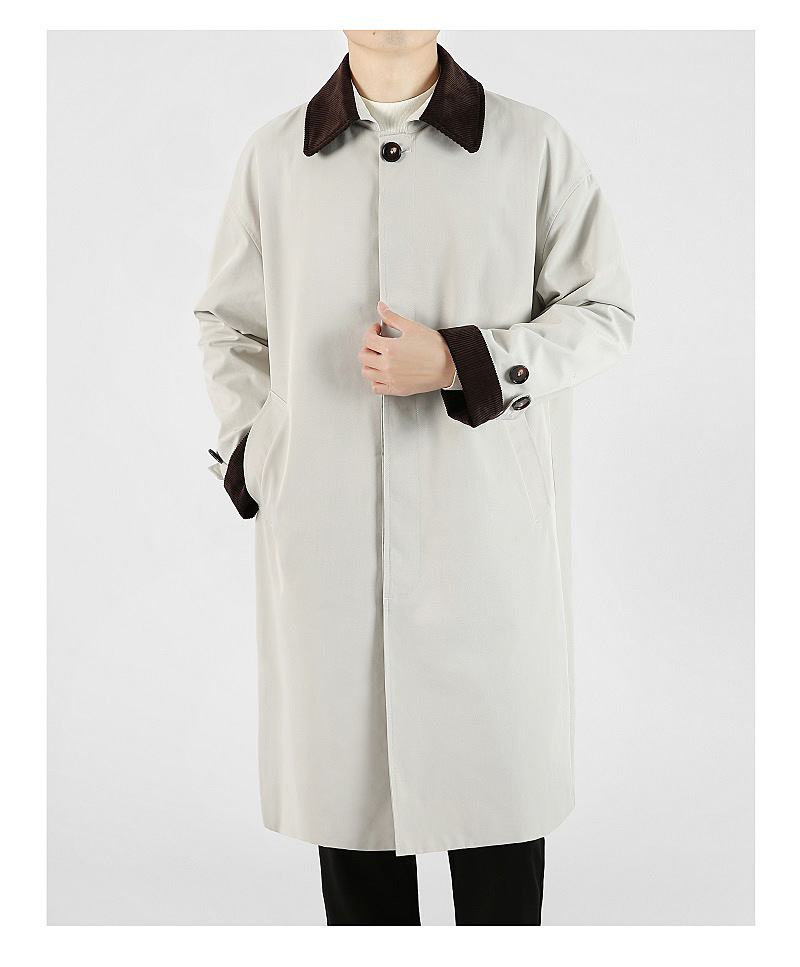봄 가을 신상품 레트로 스타일 중간 길이의 가벼운 성숙한 스타일 코트 트렌디한 루즈핏 캐주얼 다용도 레트로 스타일 남성용 코듀로이 라펠 윈드브레이커