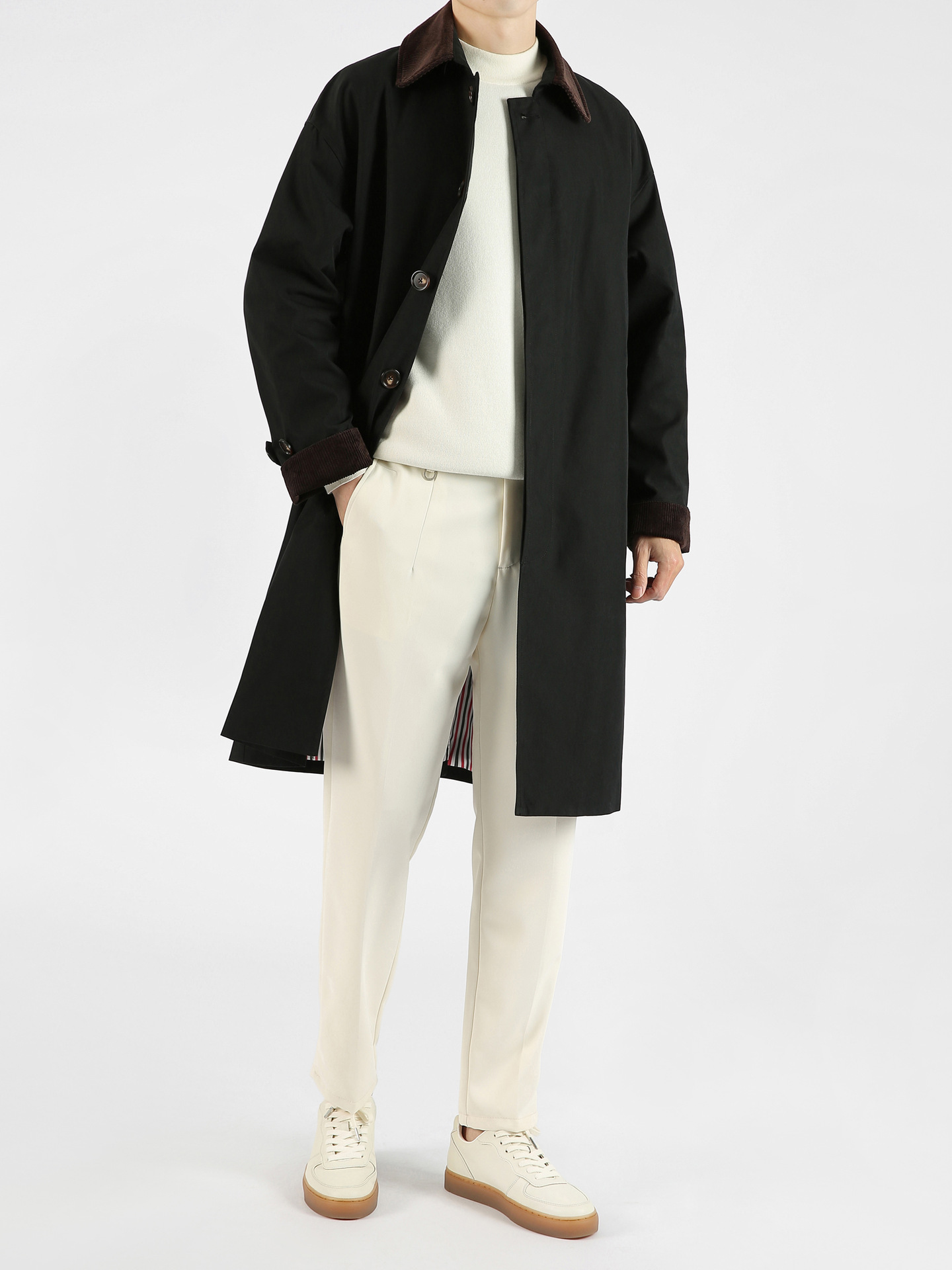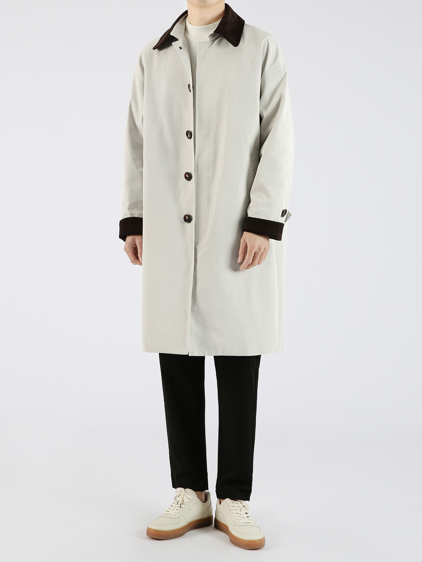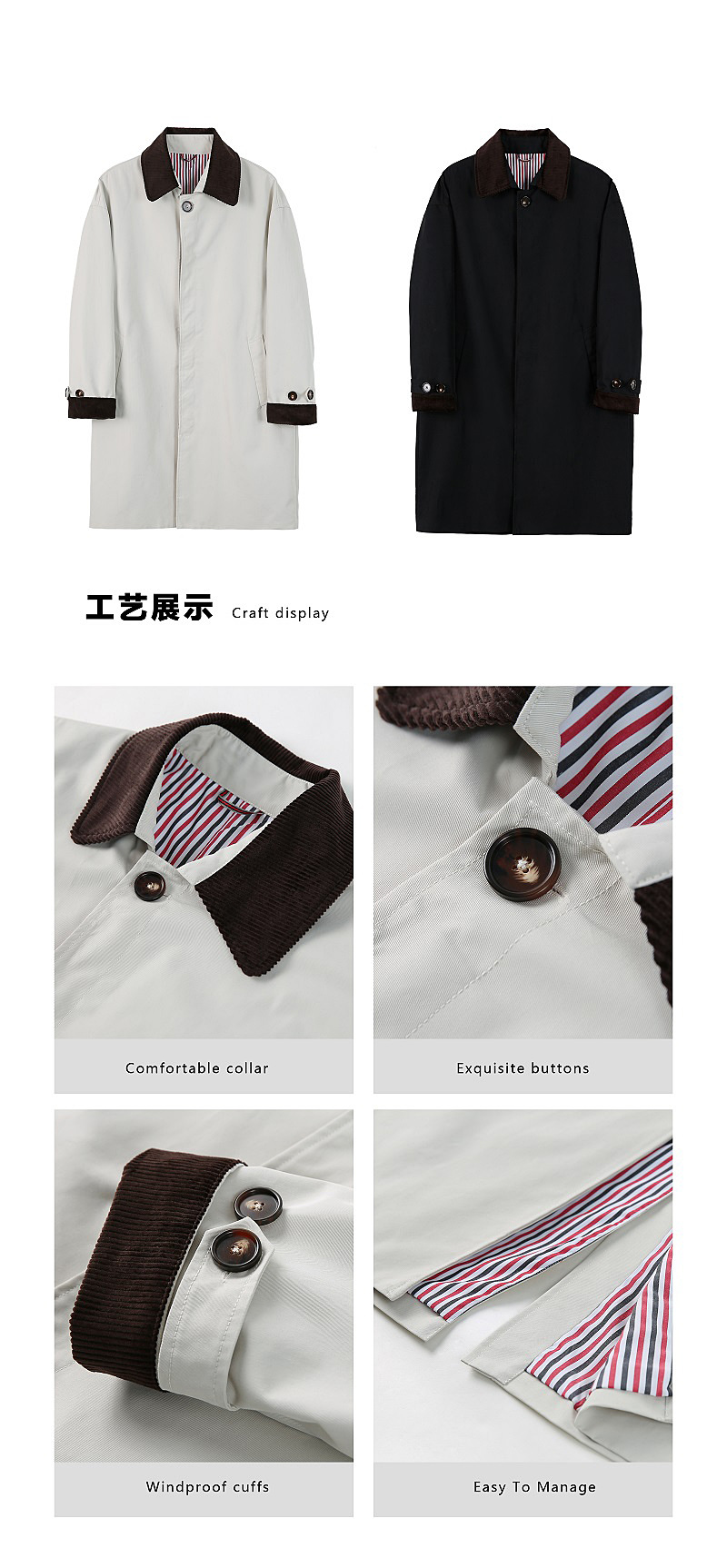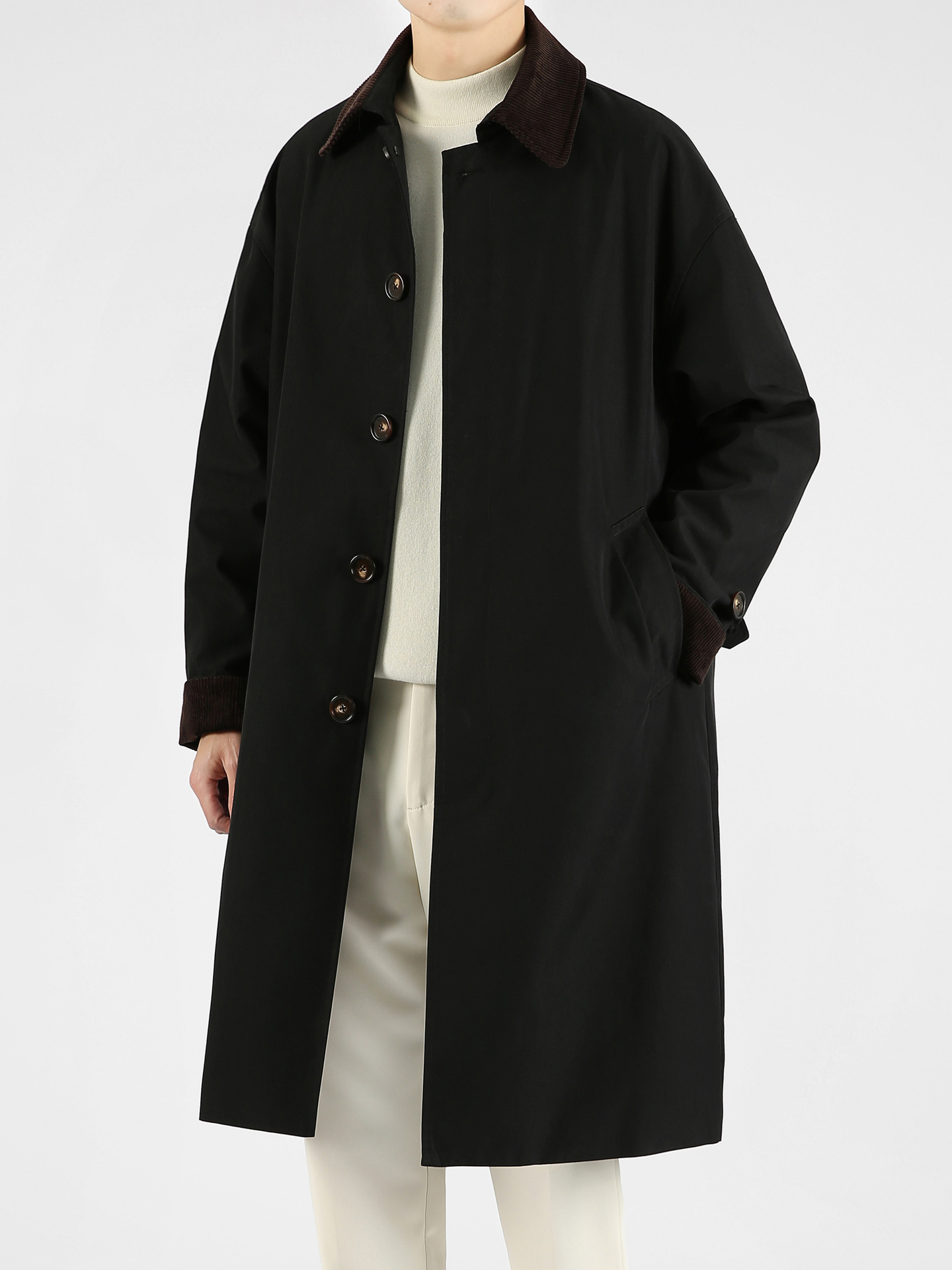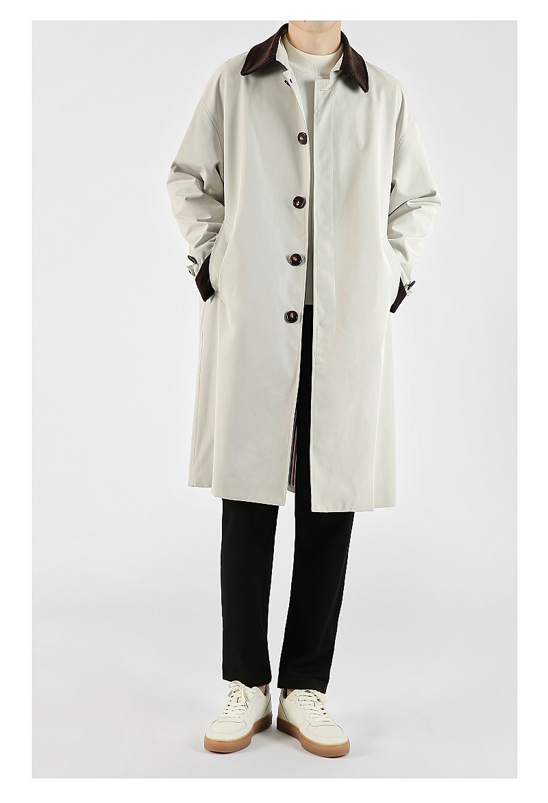 봄 가을 신상품 레트로 스타일 중간 길이의 가벼운 성숙한 스타일 코트 트렌디한 루즈핏 캐주얼 다용도 레트로 스타일 남성용 코듀로이 라펠 윈드브레이커