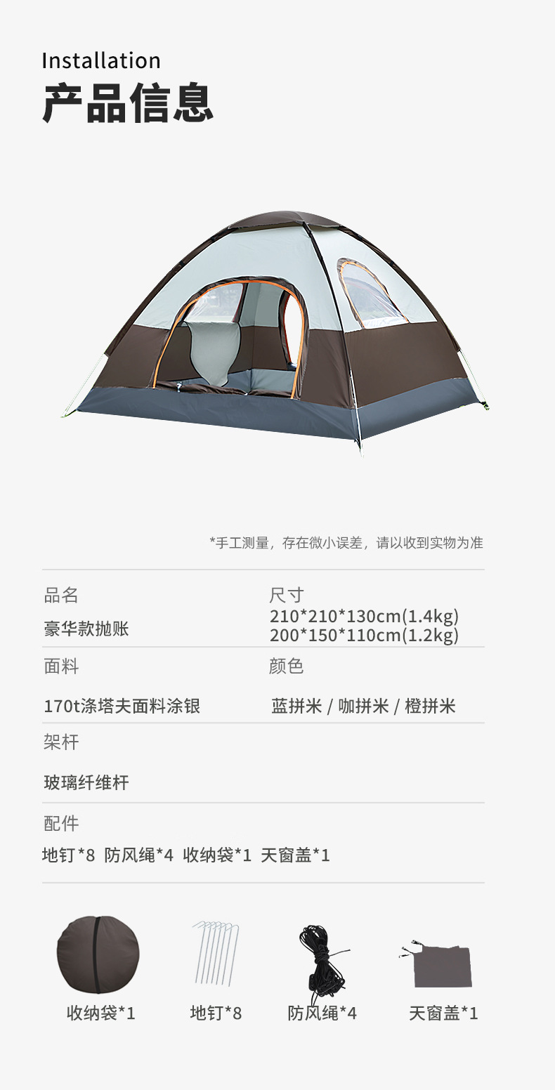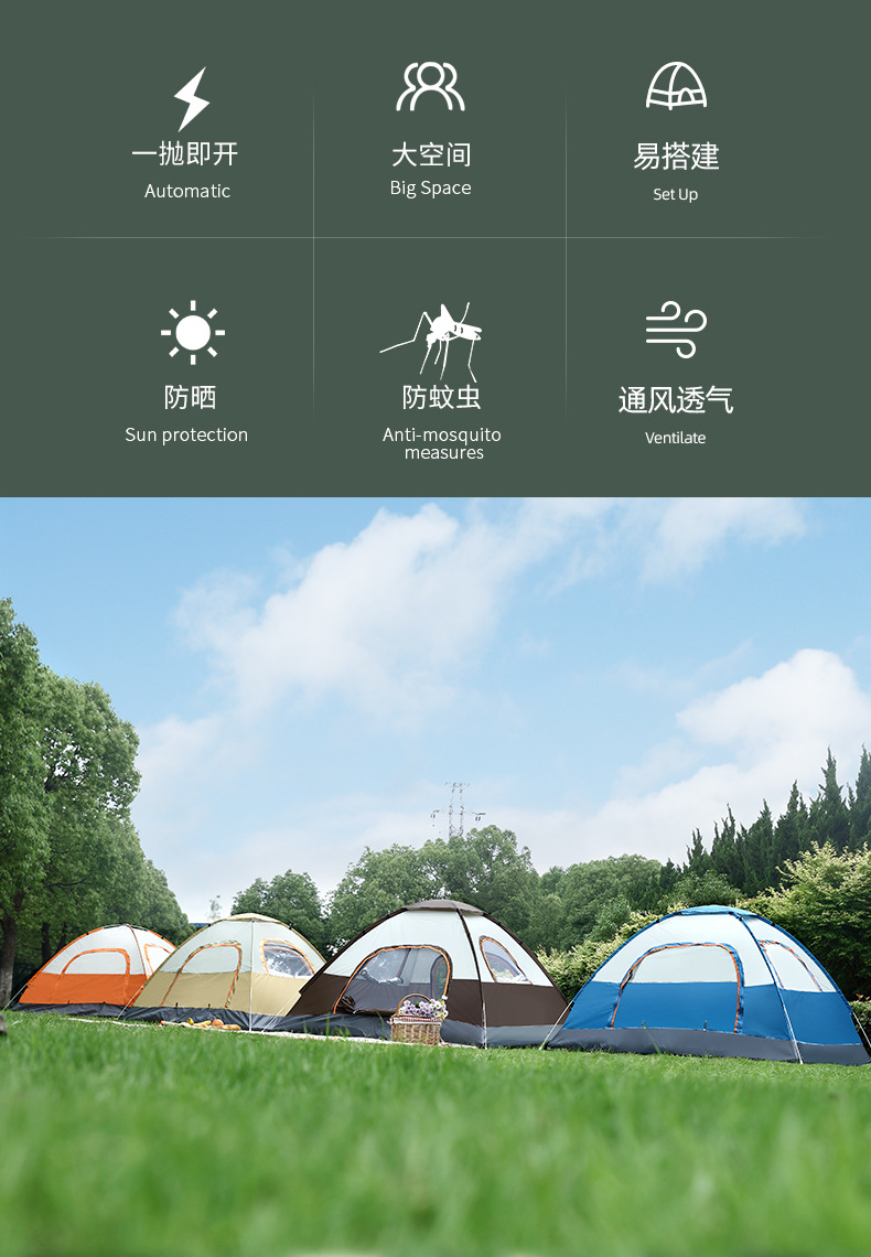 캠핑 텐트, 완전 자동 빠른 설치, 휴대용 접이식, 다인용, 자동 설치, 야외용, 설치 불필요, 빠른 개방