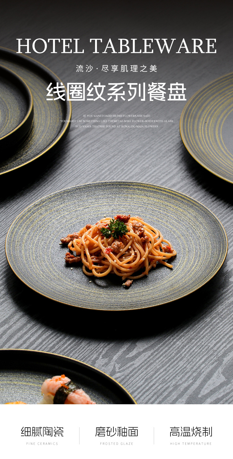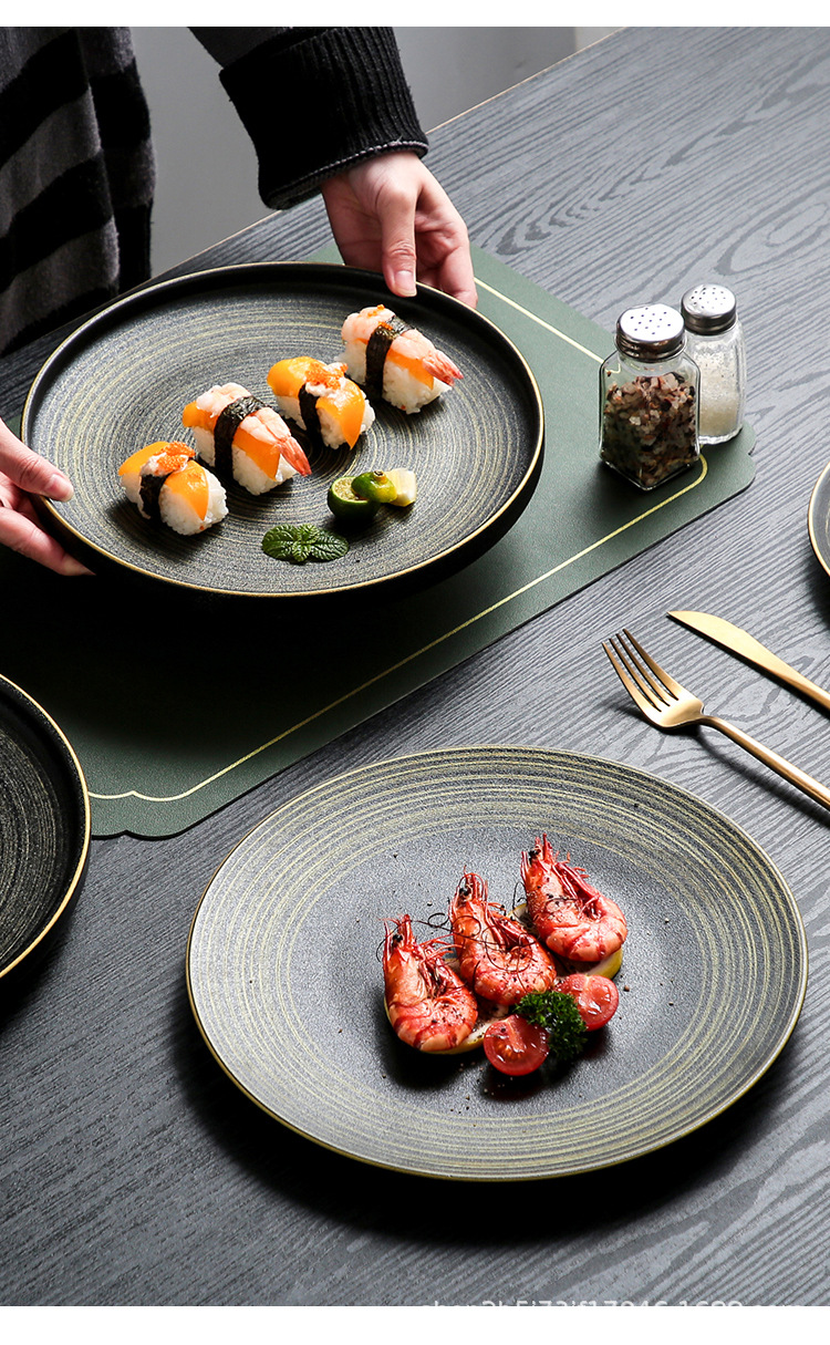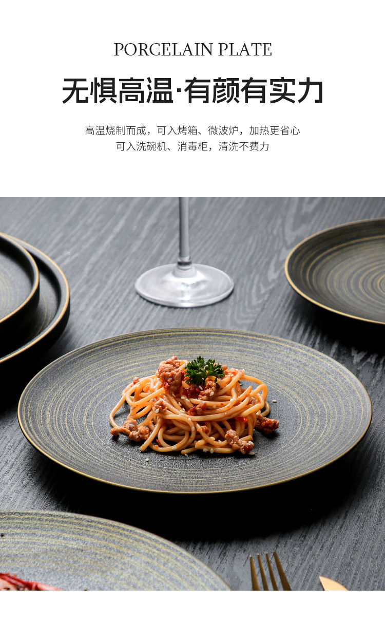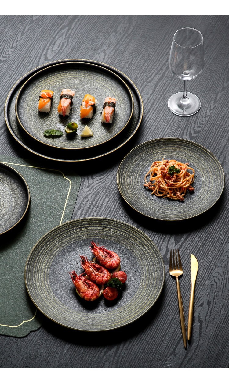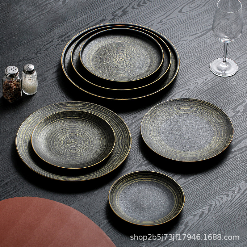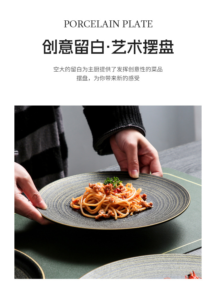 유럽식 스테이크 플레이트 세라믹 라운드 플레이트 가정용 접시 일본 식기 얕은 플레이트 고급 평면 플레이트 이탈리아 국수 플레이트
