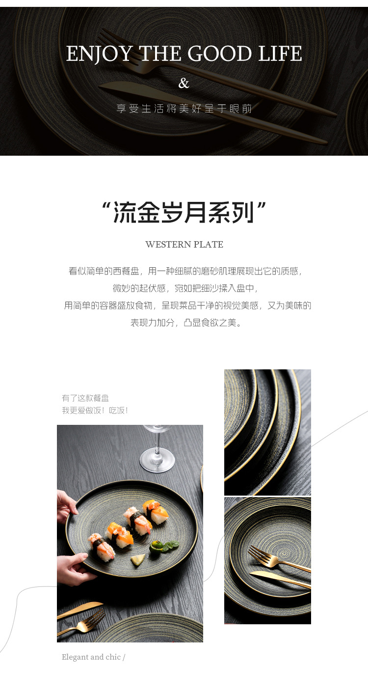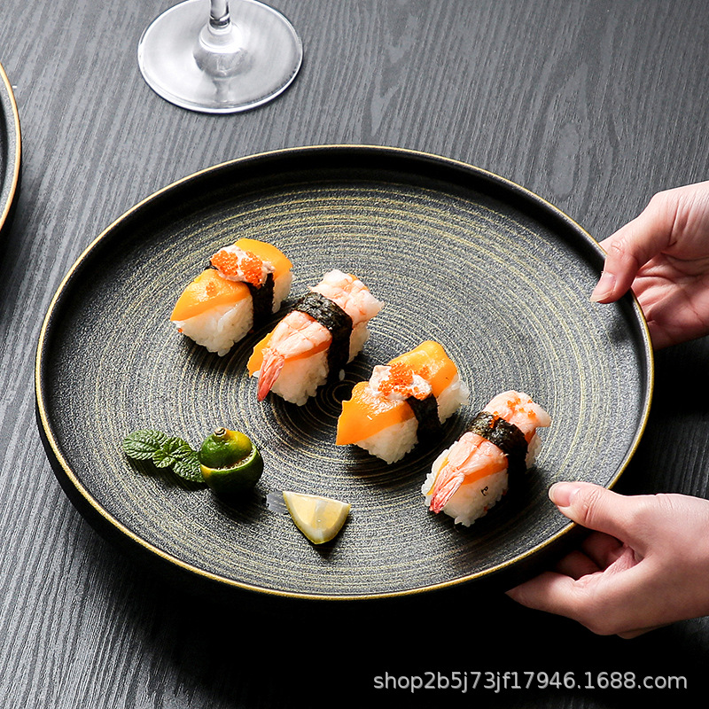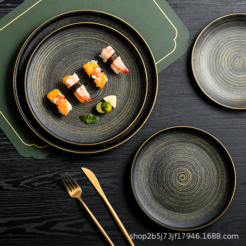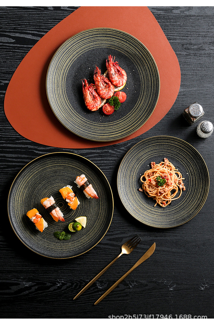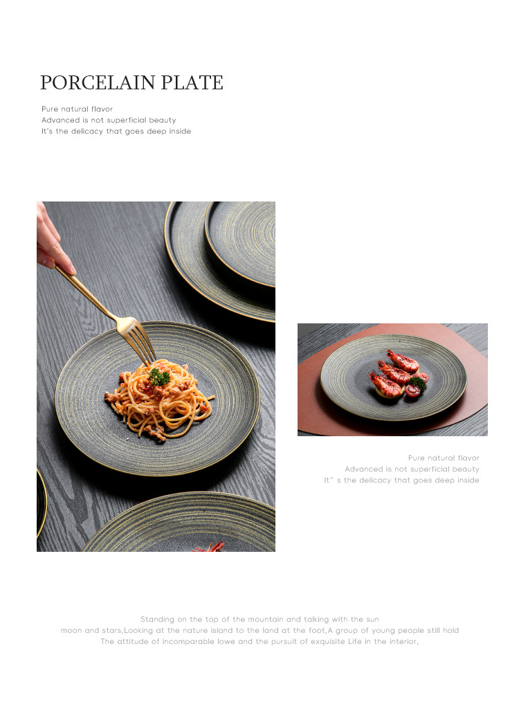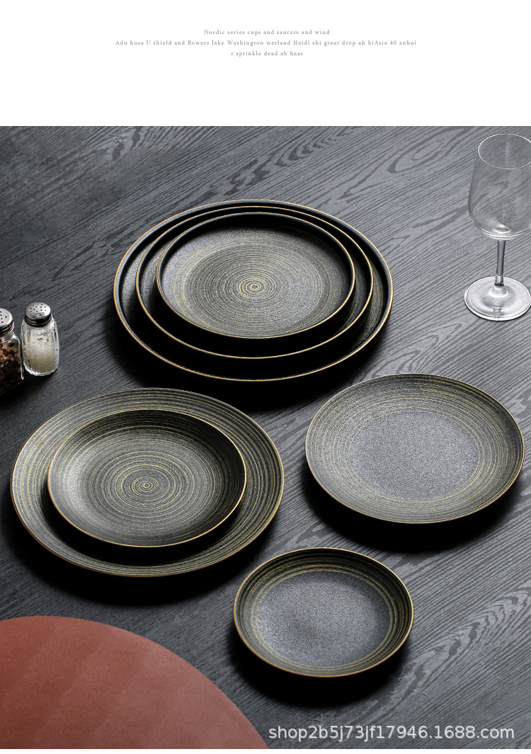 유럽식 스테이크 플레이트 세라믹 라운드 플레이트 가정용 접시 일본 식기 얕은 플레이트 고급 평면 플레이트 이탈리아 국수 플레이트