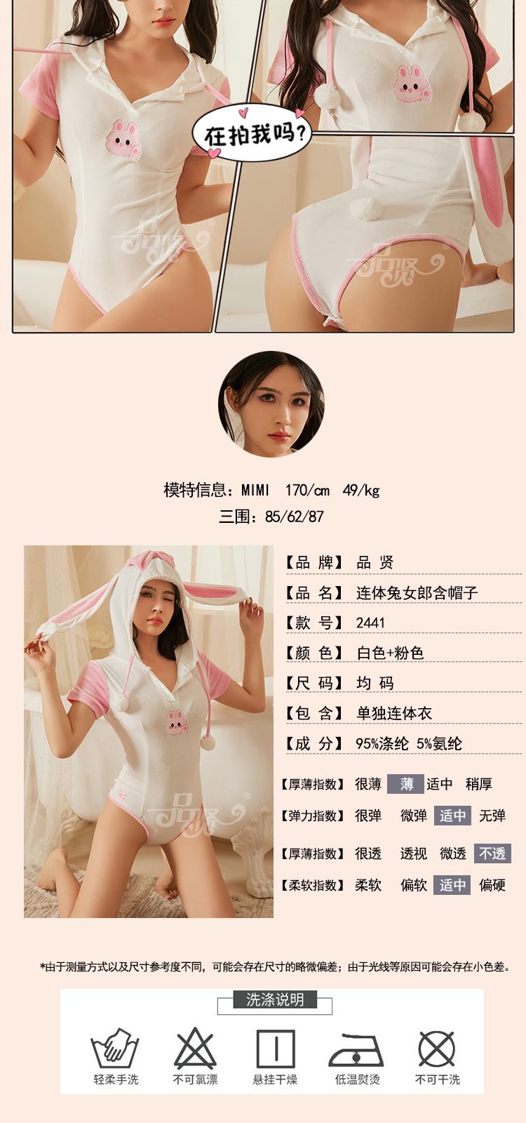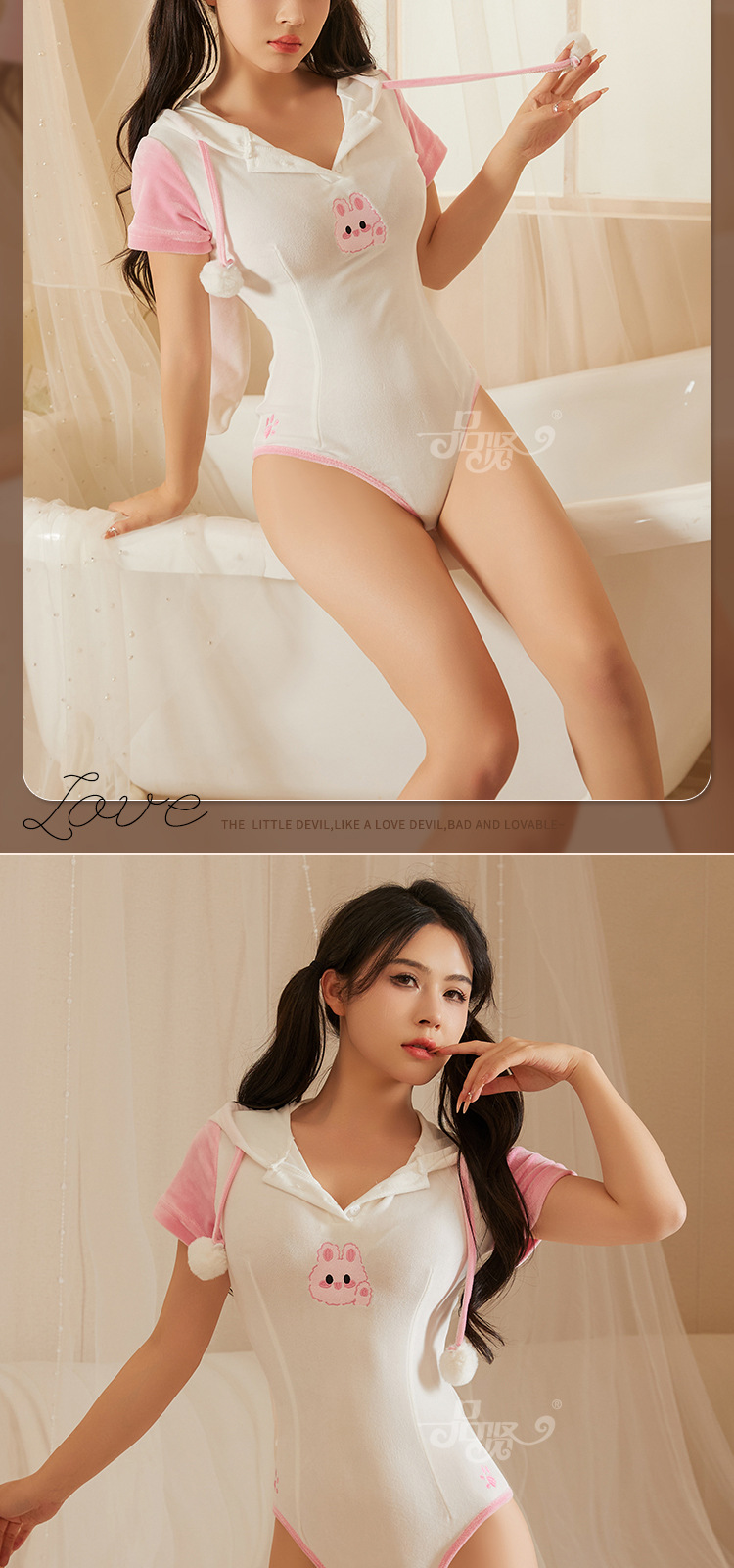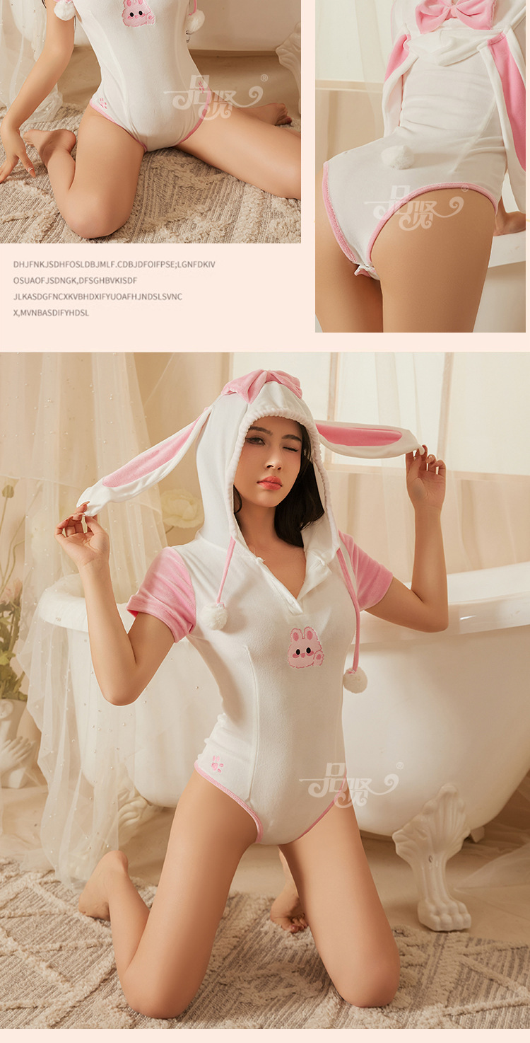 핀시안 섹시 속옷 여성 토끼 섹시 하이 포크 후디 파자마 프라이빗 룸 숨겨진 버클 오프닝 퍼포먼스 옷 2441