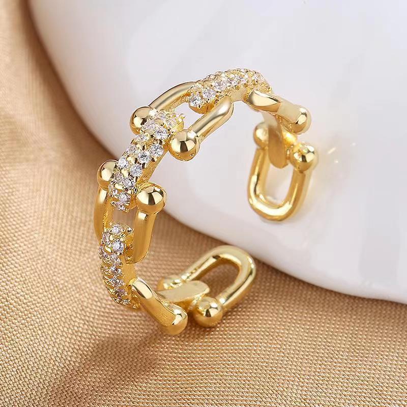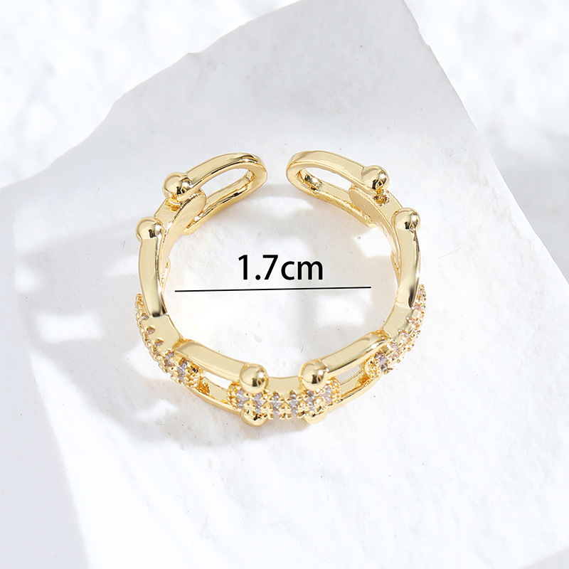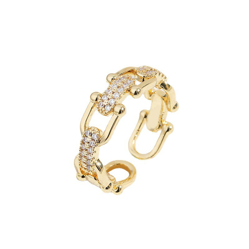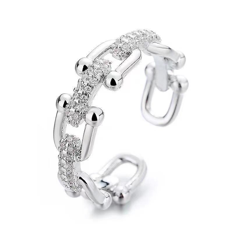 절묘한 마이크로 상감 지르콘 체인 스티칭 링 여성 기질 콜드 스타일 패션 올 매치 고급 핑거 링 푸드 핑거 링