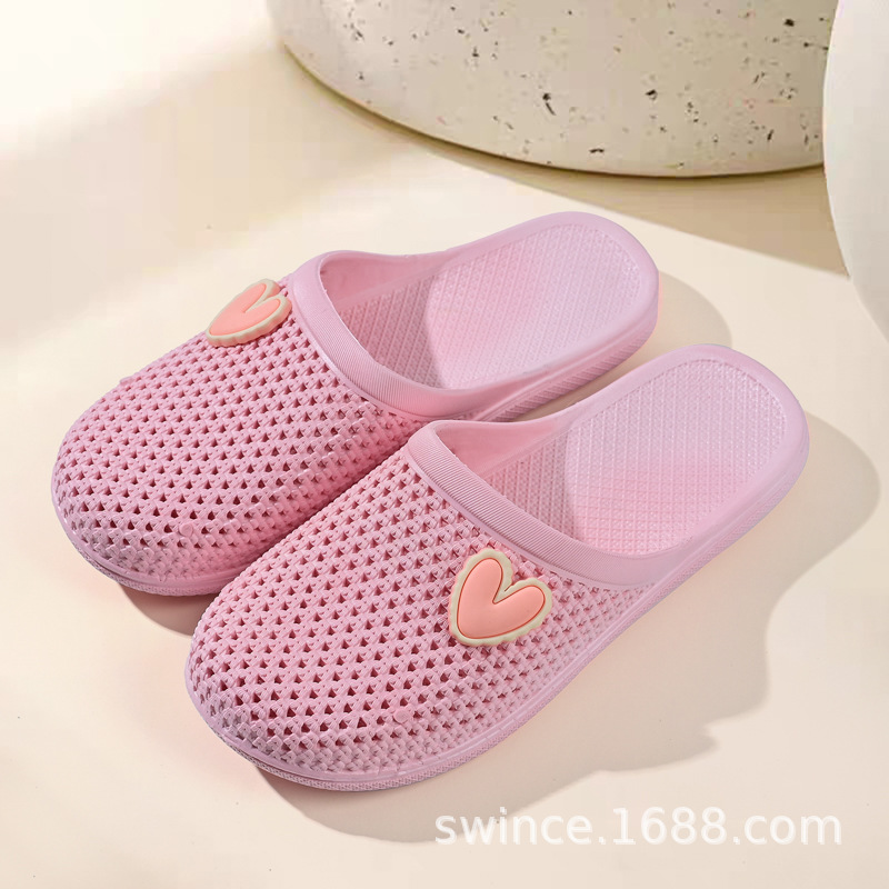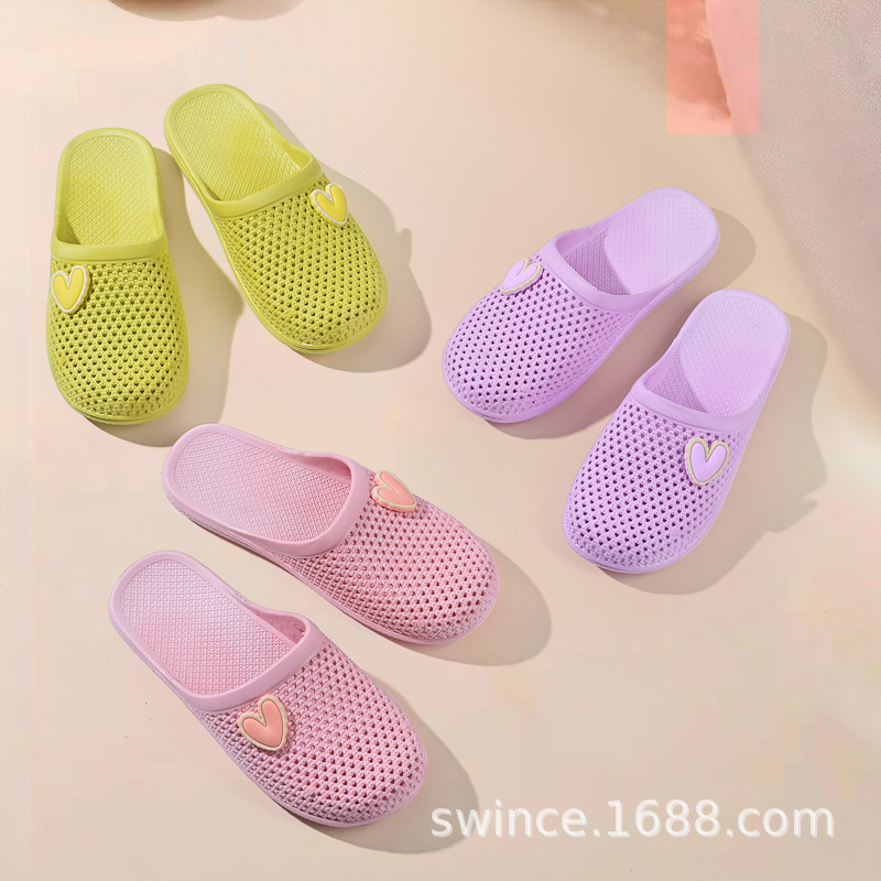 집 여름 부드러운 고무 닫힌 발가락 구멍 신발 실내 부드러운 고무 홈 플랫 여성 겉옷 닫힌 발가락 하프 슬리퍼