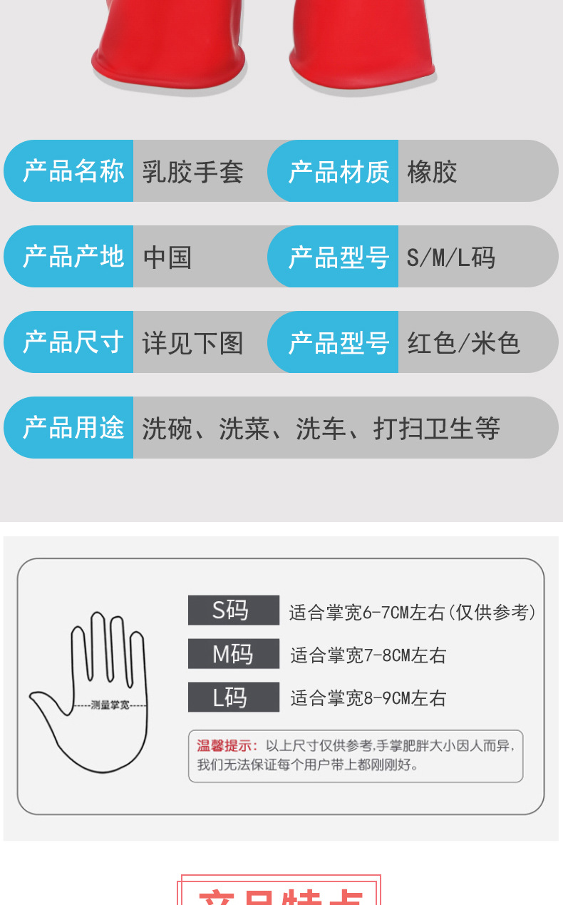 产品名称:七仙女乳胶手套 家用洗衣洗碗清洁手套 洗车手套 工厂用手套
