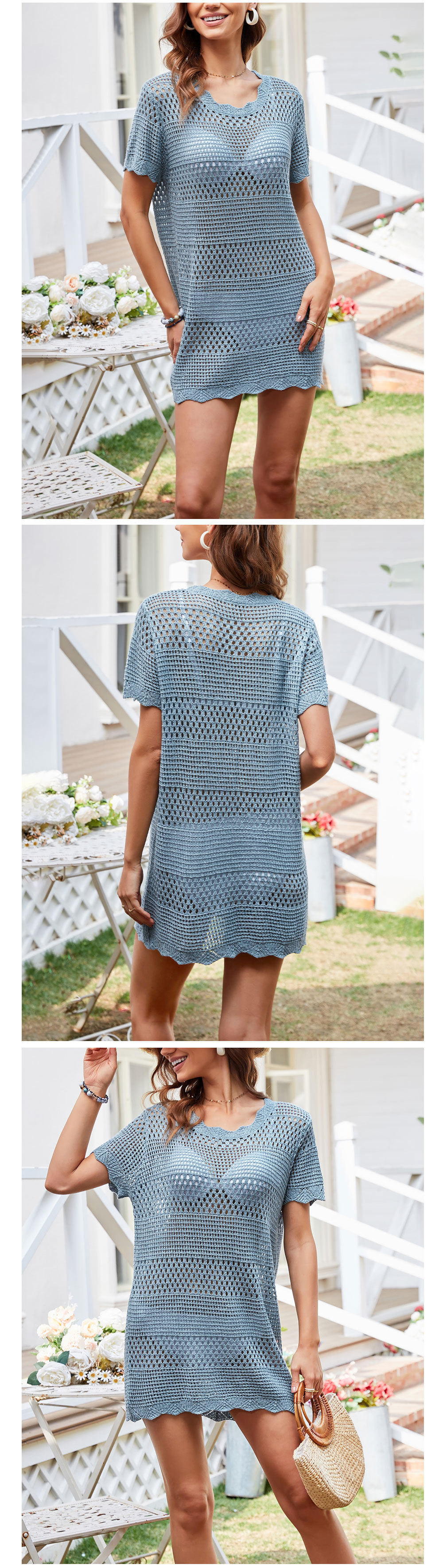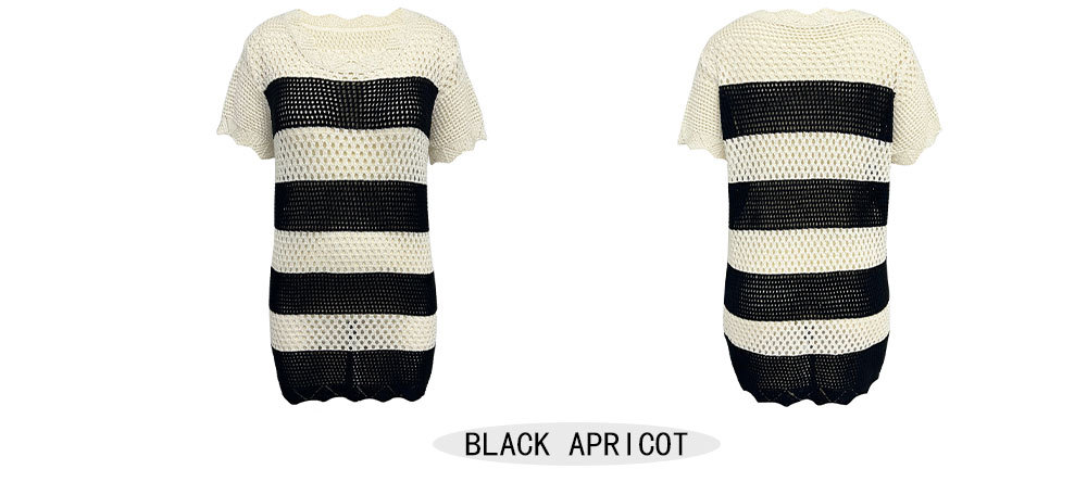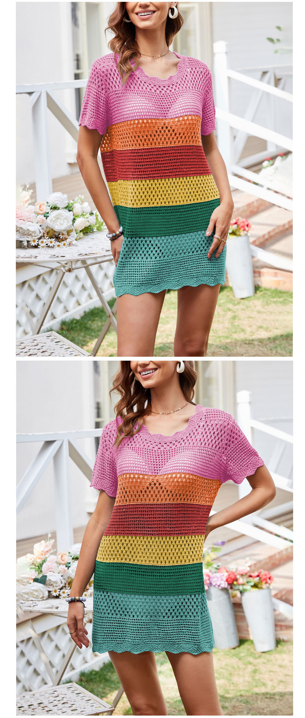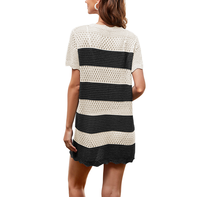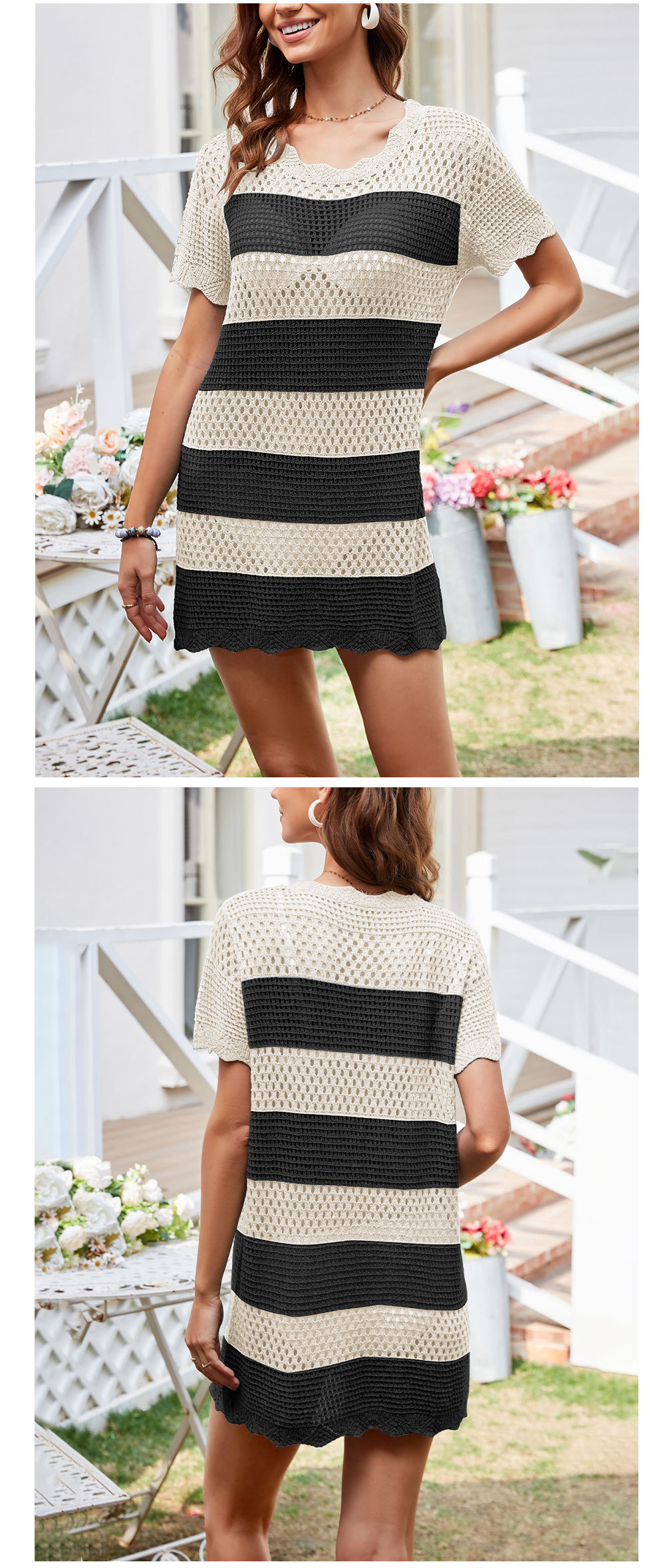 유럽과 미국의 국경 2024 아마존 여름 새로운 인기있는 라운드 넥 핸드 후크 비치 중공 블라우스 스트라이프 원피스
