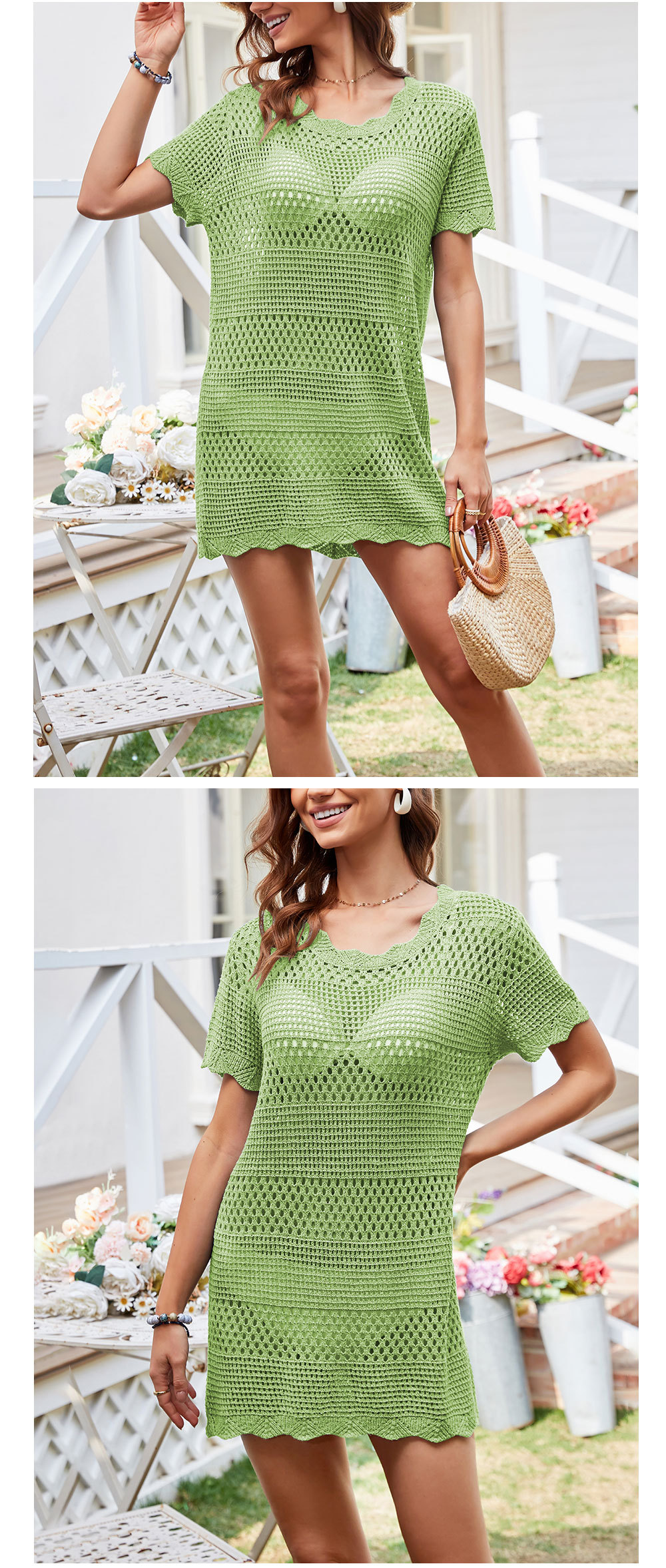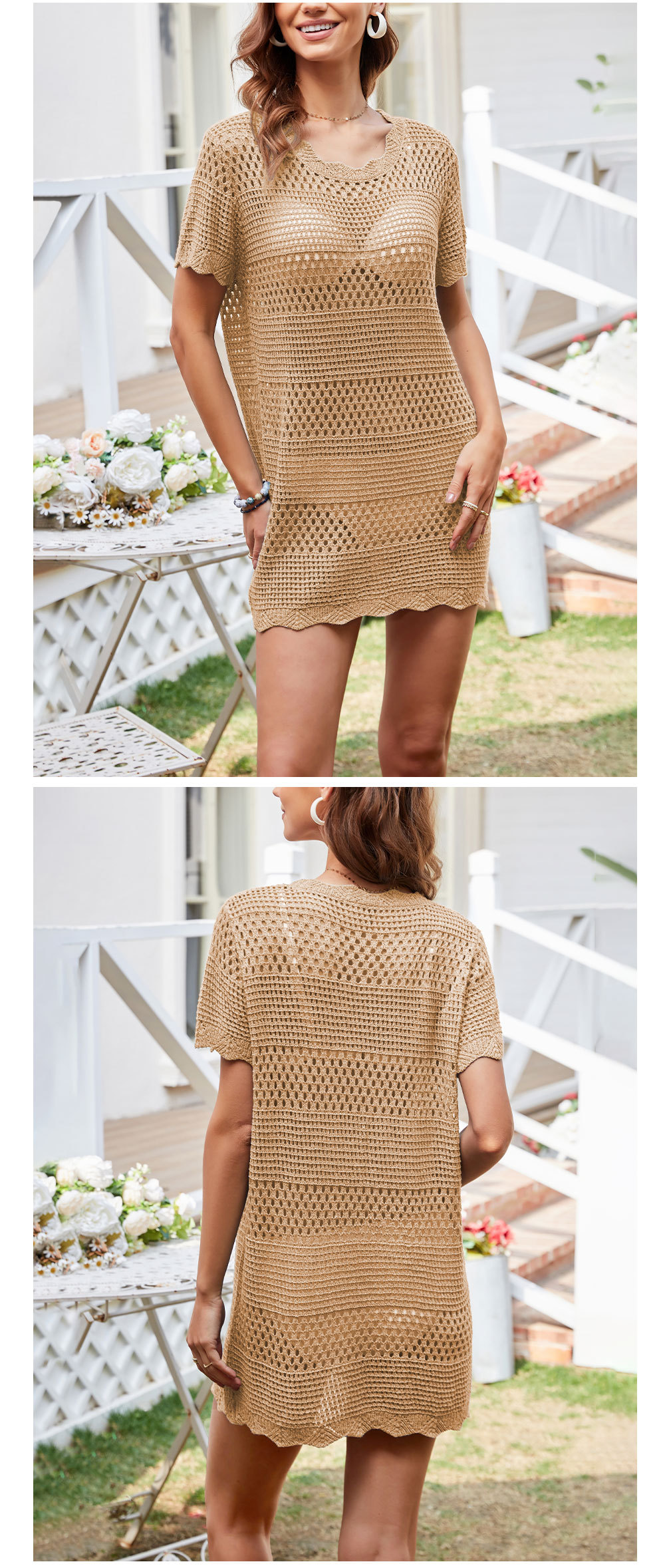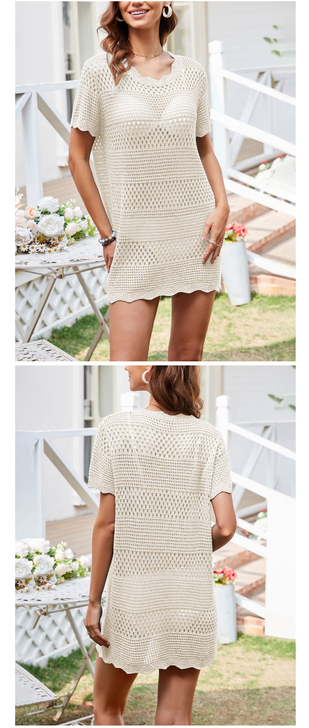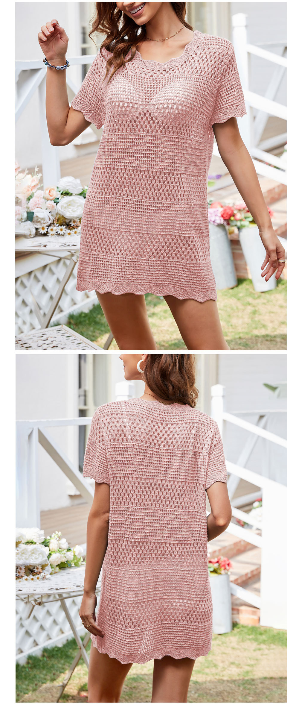 유럽과 미국의 국경 2024 아마존 여름 새로운 인기있는 라운드 넥 핸드 후크 비치 중공 블라우스 스트라이프 원피스