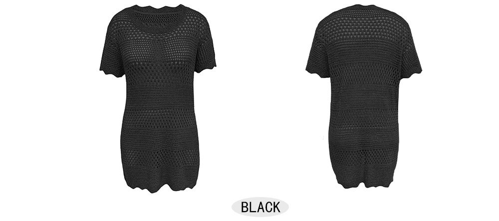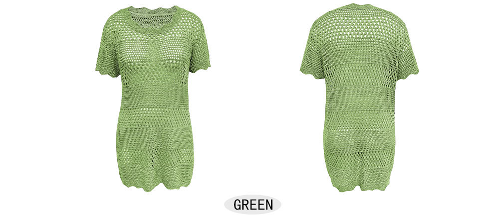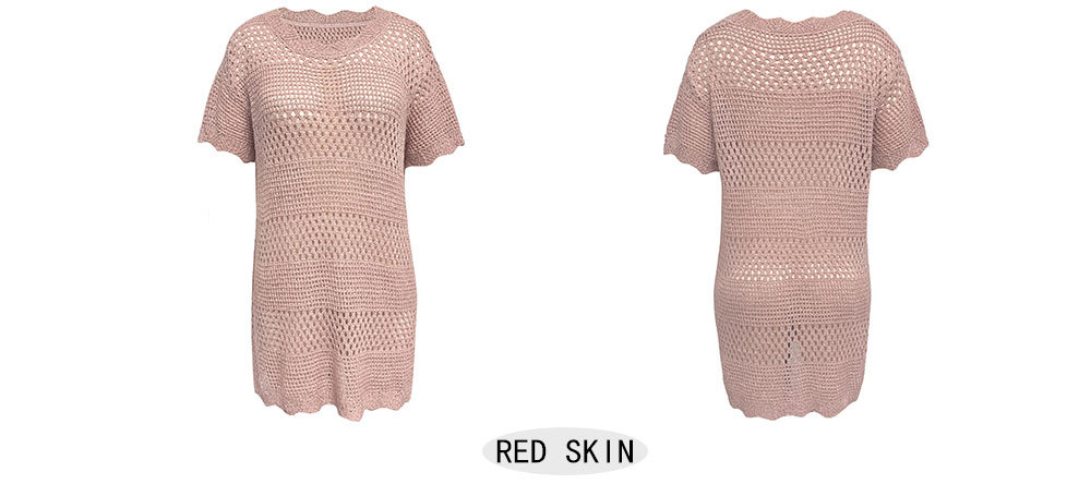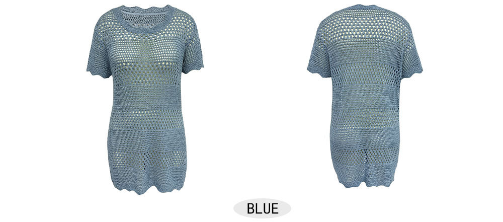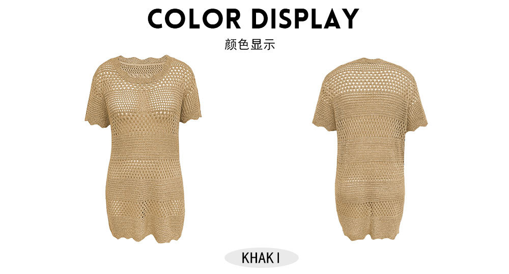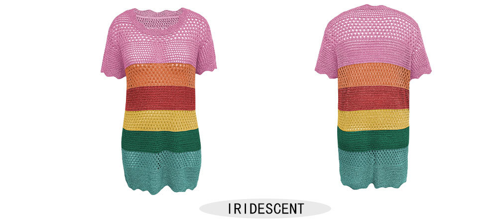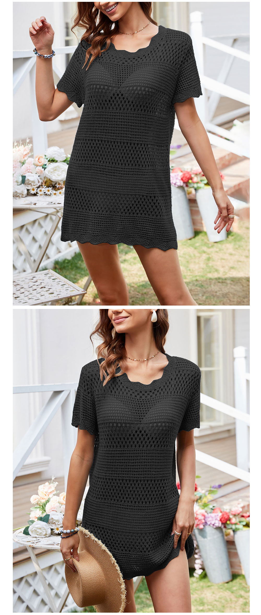 유럽과 미국의 국경 2024 아마존 여름 새로운 인기있는 라운드 넥 핸드 후크 비치 중공 블라우스 스트라이프 원피스