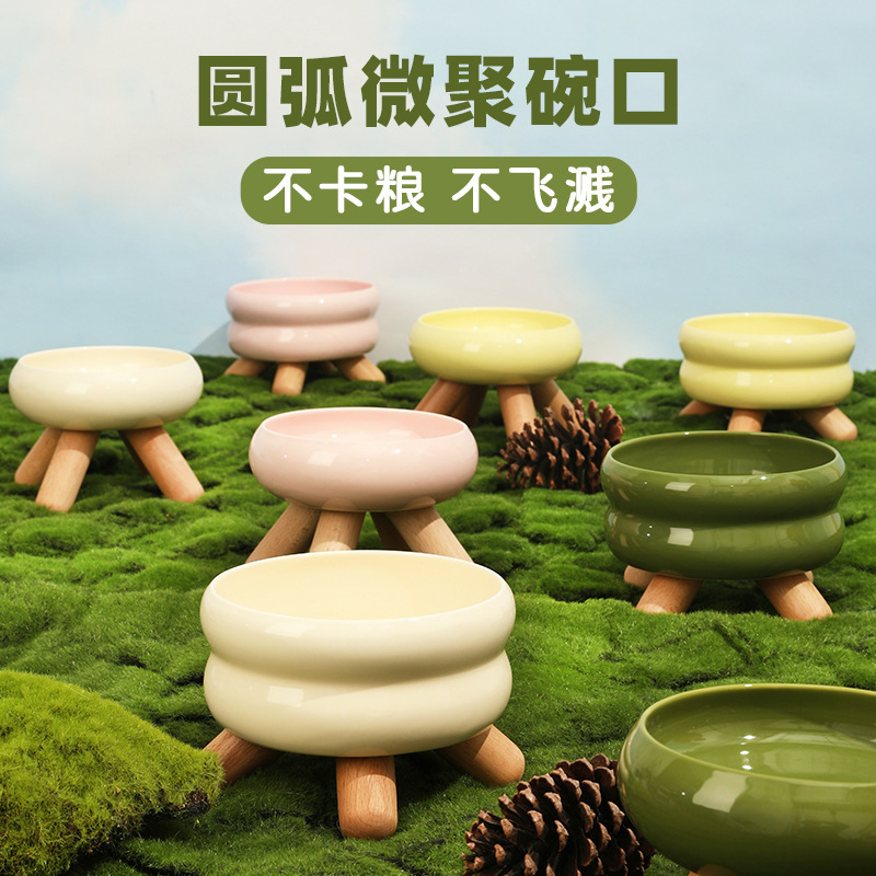 Meoof 음식 그릇 물 그릇 gulu 애완 동물 그릇 세라믹 색 개 먹이 그릇 목 보호 고양이 그릇 애완 동물 용품 음식 그릇
