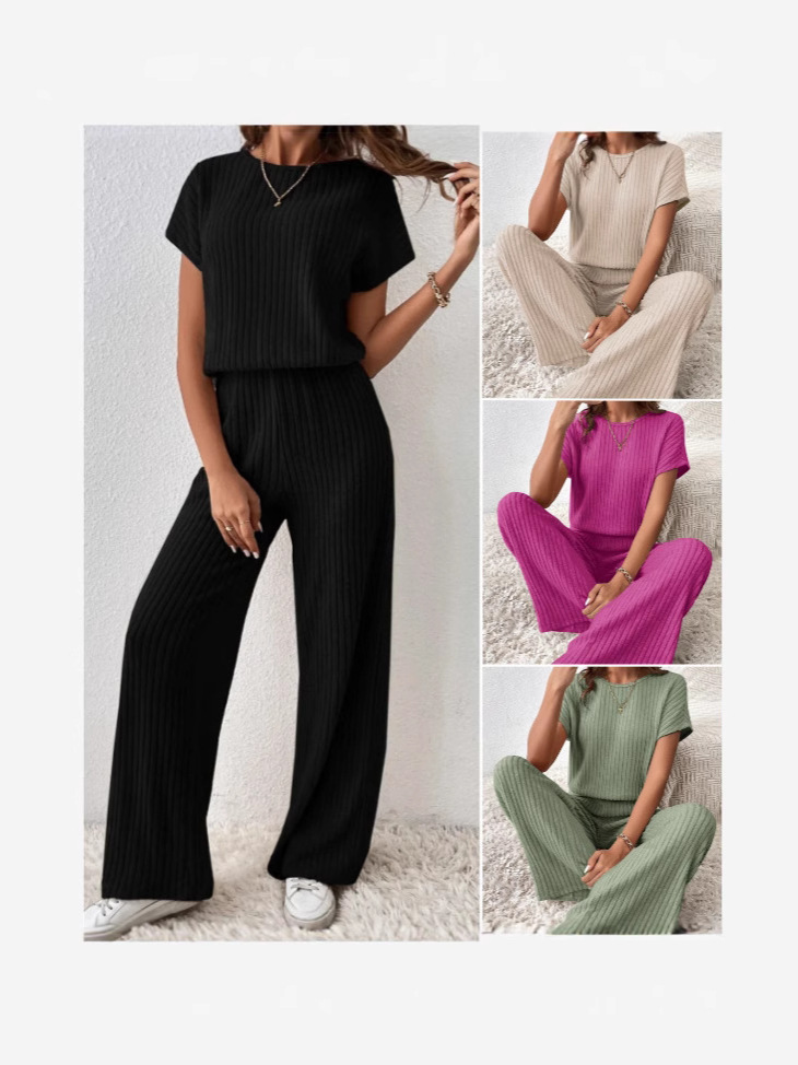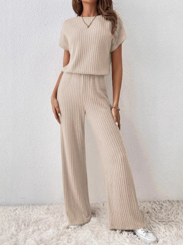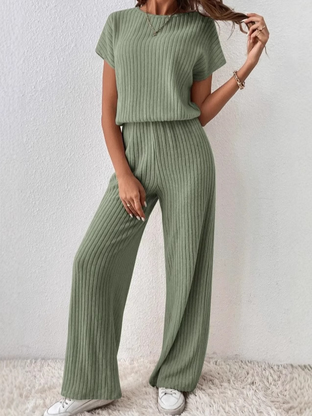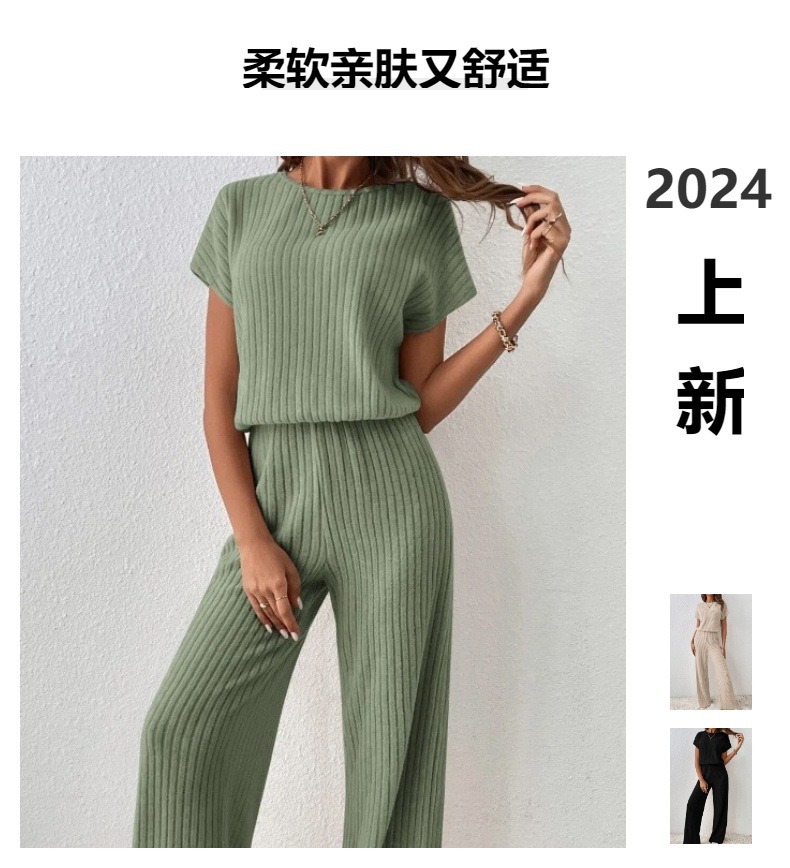 2025년 유럽 및 미국 신상 여성 패션 스트라이프 패턴 오프숄더 반팔 니트 세트 상의와 긴바지 투피스 세트