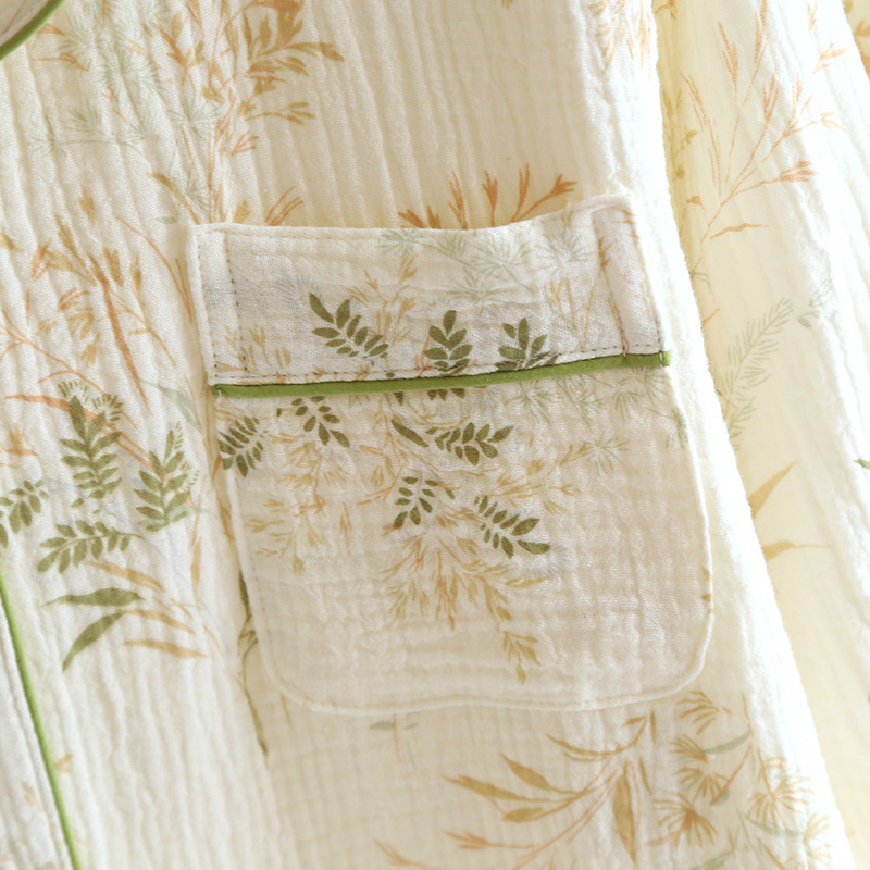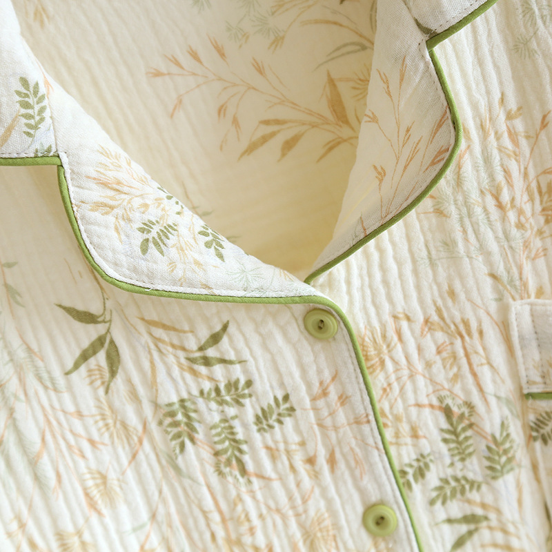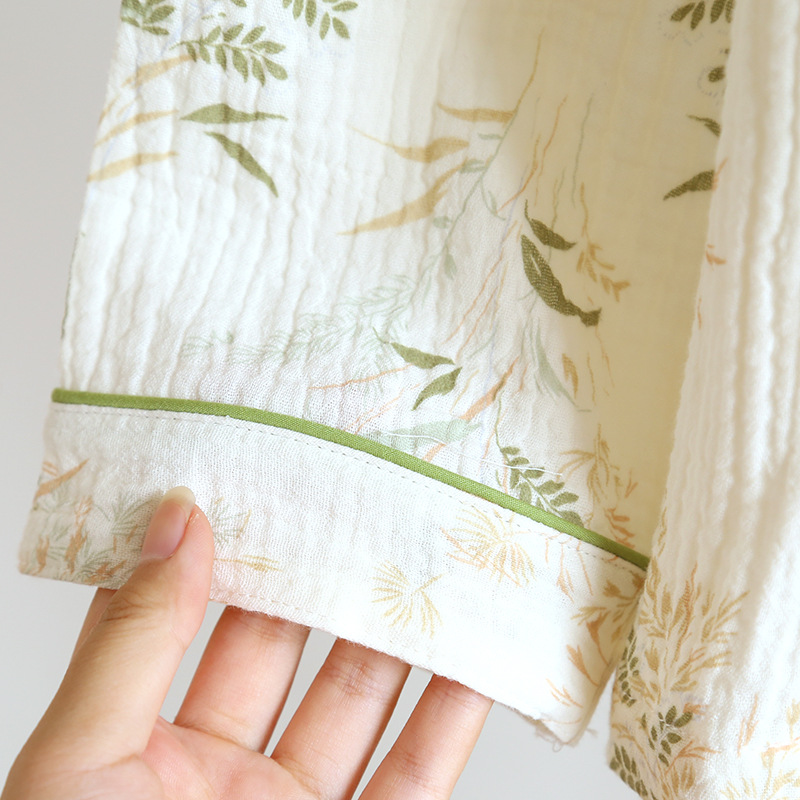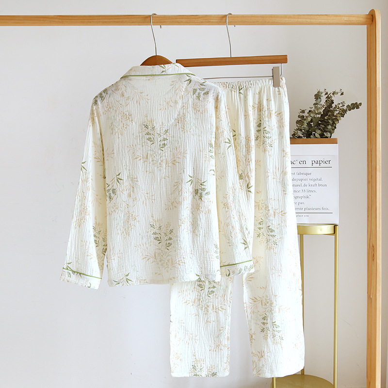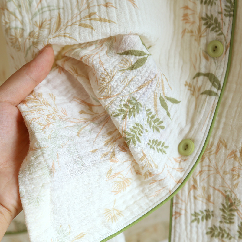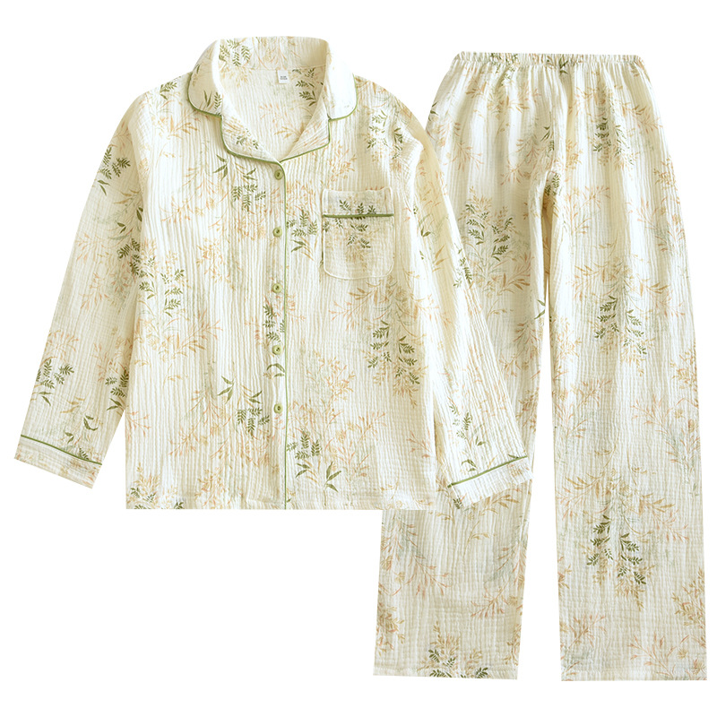 새로운면 인쇄 긴팔 바지 홈 의류 여성용 카디건 파자마 투피스 세트 여성의 얇은 센스 잠옷
