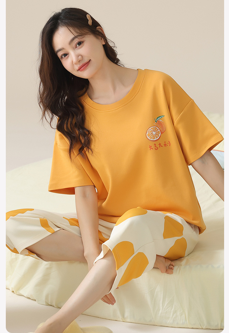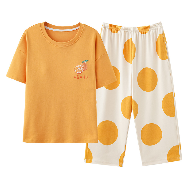 가슴 패드가 달린 여성용 잠옷 여름면 반팔 크롭 팬츠 홈 착용 얇은 여름 캐주얼 겉옷 플러스 사이즈 세트