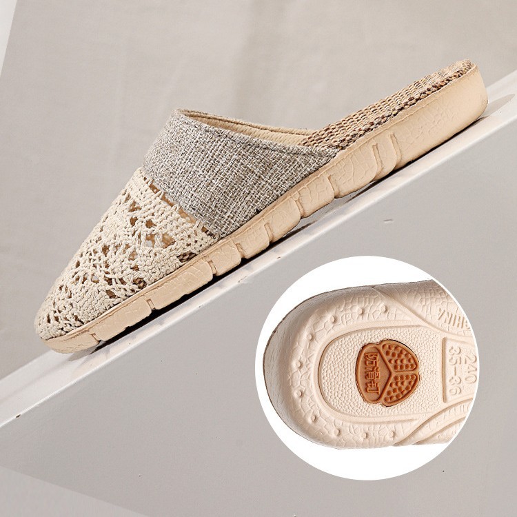 가정용 린넨 슬리퍼 여름 남성과 여성의 집 실내 미끄럼 방지 경량 부드러운 바닥 바닥 슬리퍼 빈 통기성