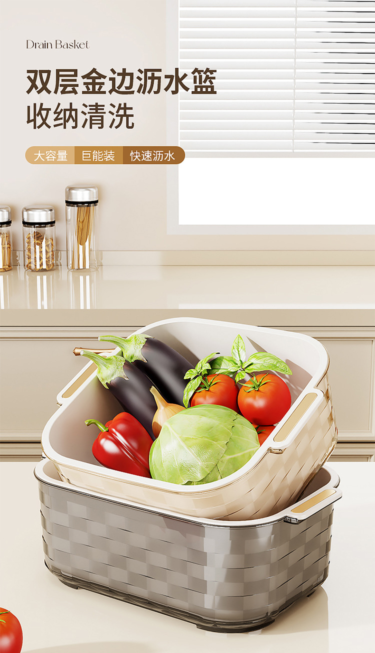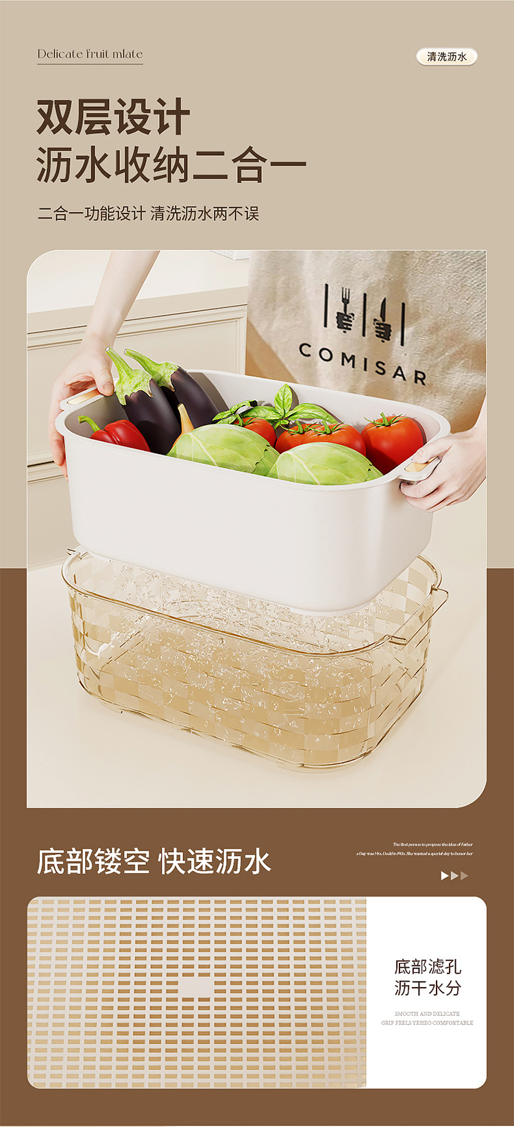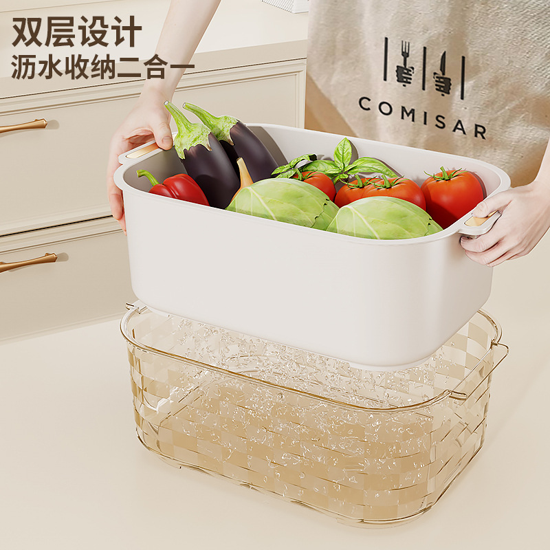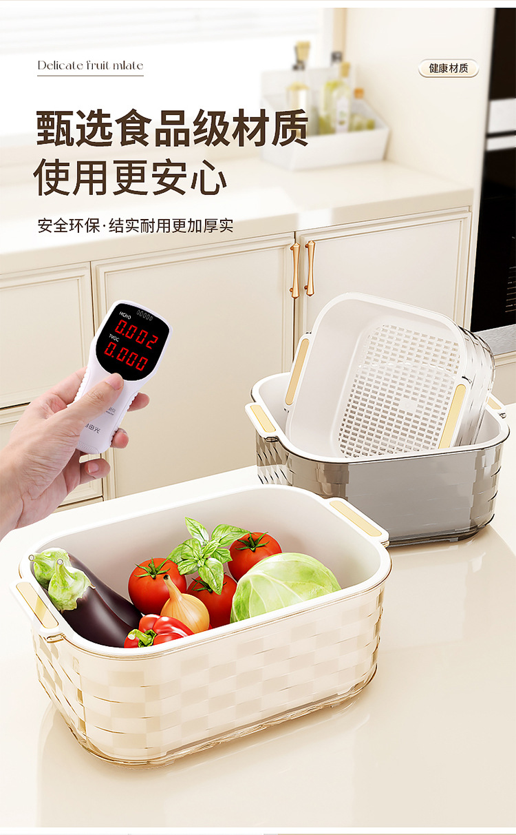 이중 층 야채 세척 분지 배수 바구니 주방 용품 가정용 과일 플레이트 거실 쌀 세척 유물 과일 및 야채 세척 바구니