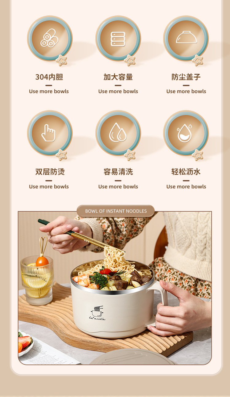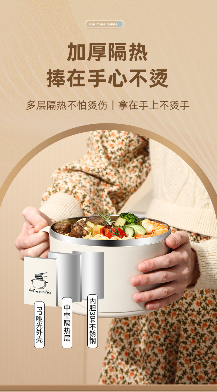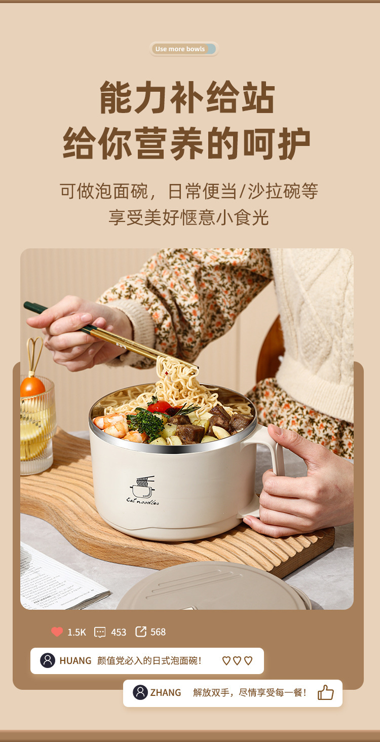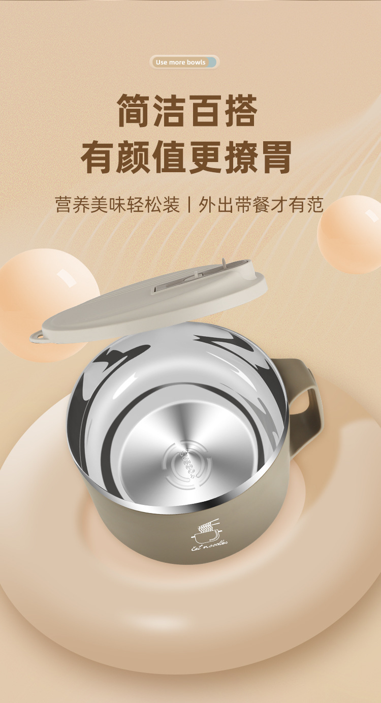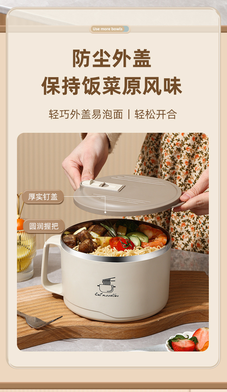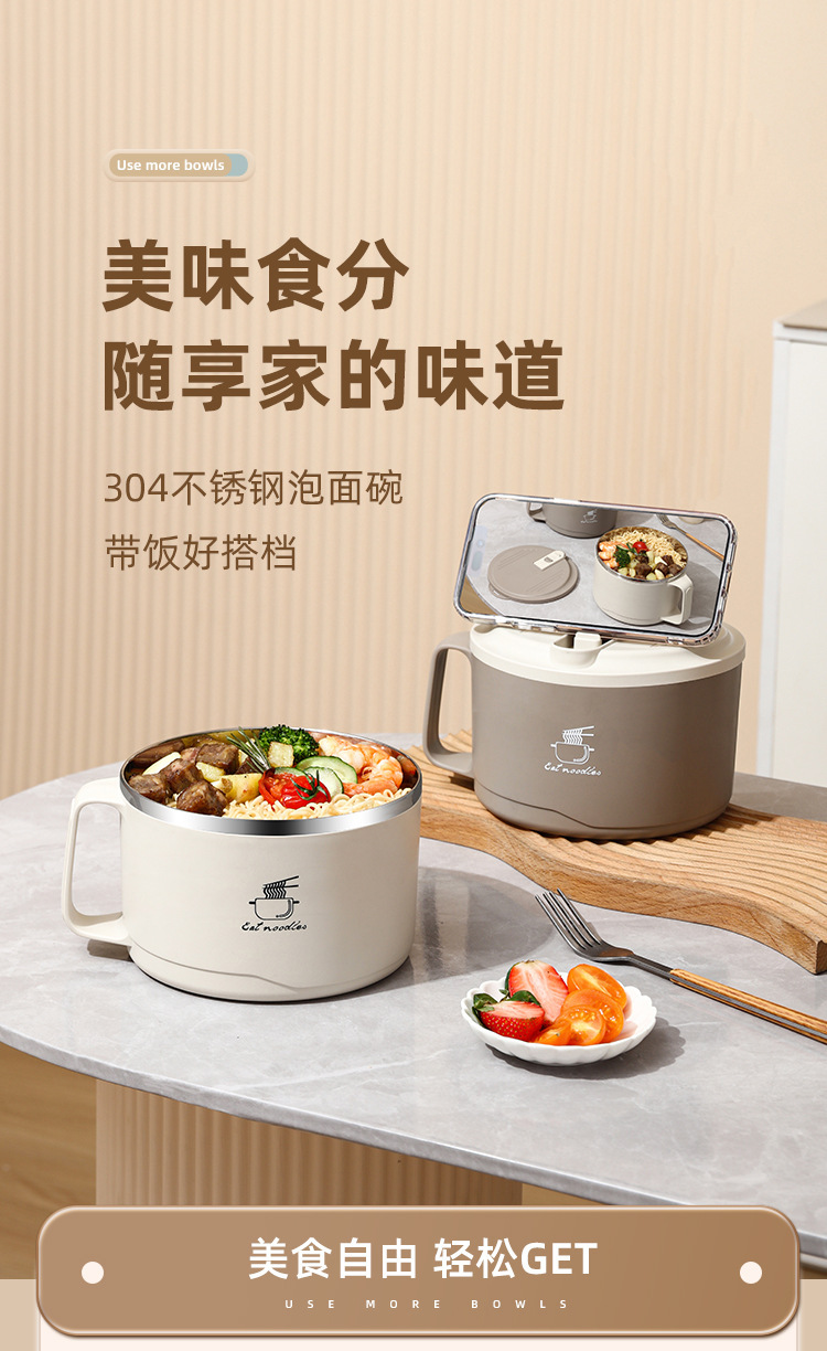 높은 색상 값 두꺼운 304 스테인레스 스틸 인스턴트 국수 그릇 배수 뚜껑 열 보존 밀봉 휴대용 도시락 스낵 컵 식기