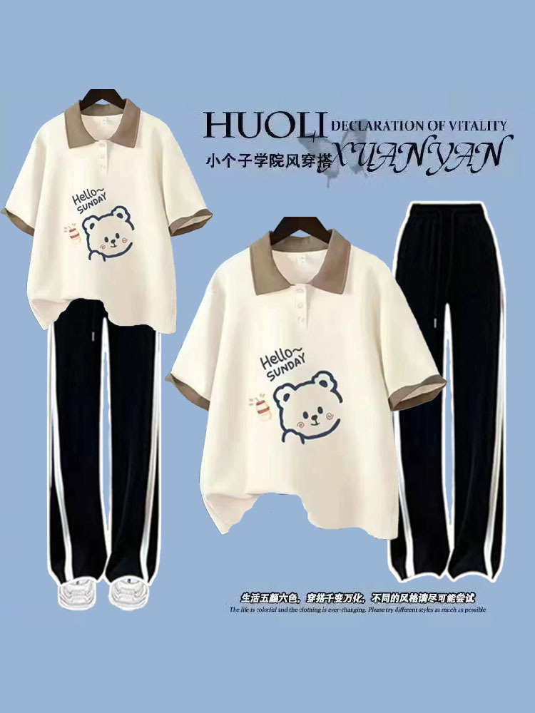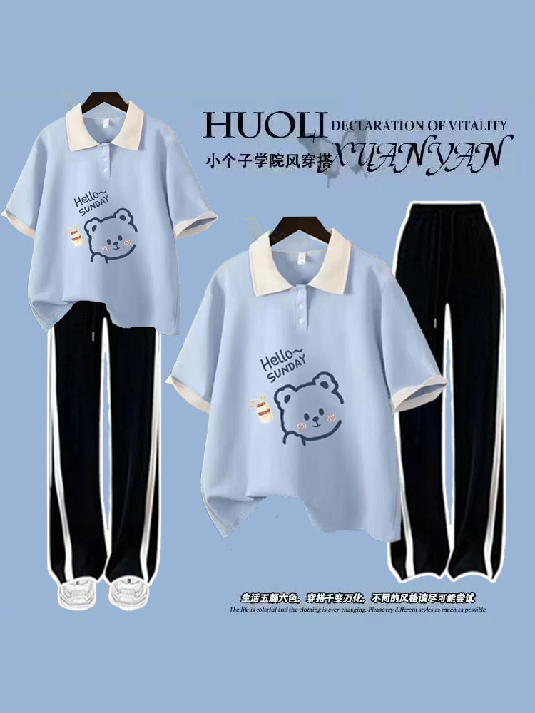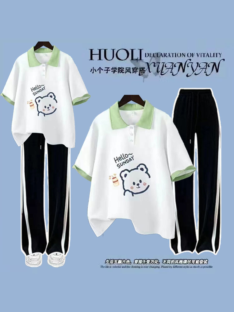 여름 스포츠 세트 2024 신상 학생 소녀 폴로 투피스 세트+와이드 팬츠 패셔너블하고 활력 넘치는