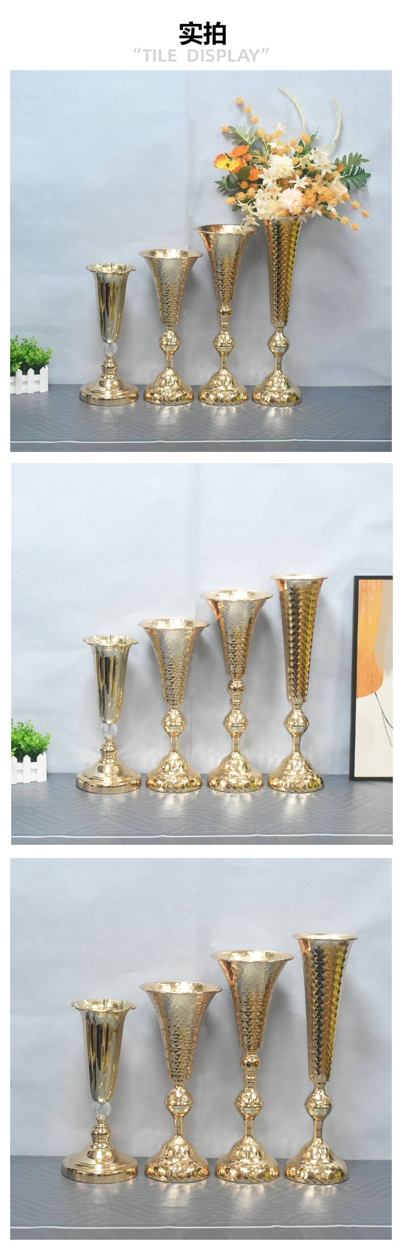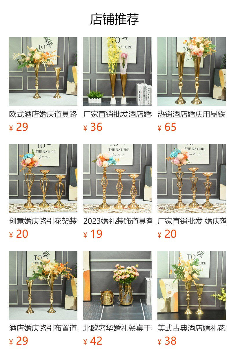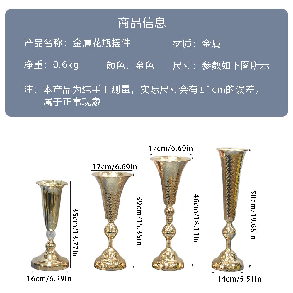 북유럽 복고풍 거실 입구 금 꽃병 결혼식 도로 리드 소품 금속 공예 장식 장식품