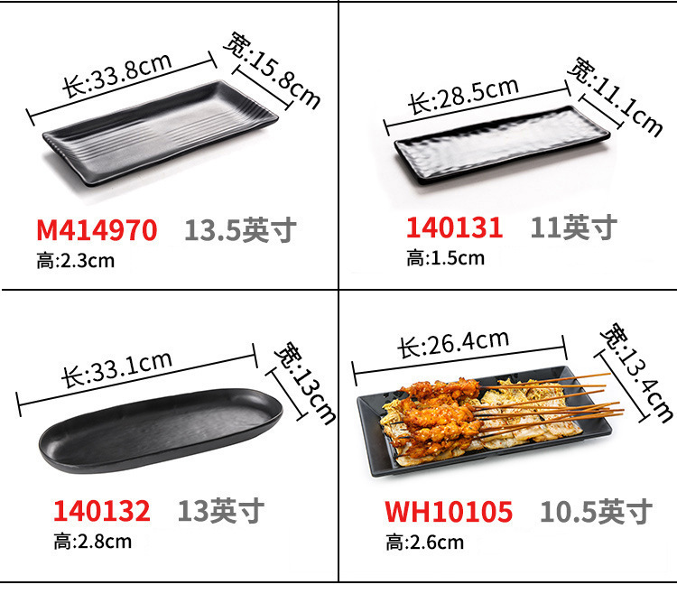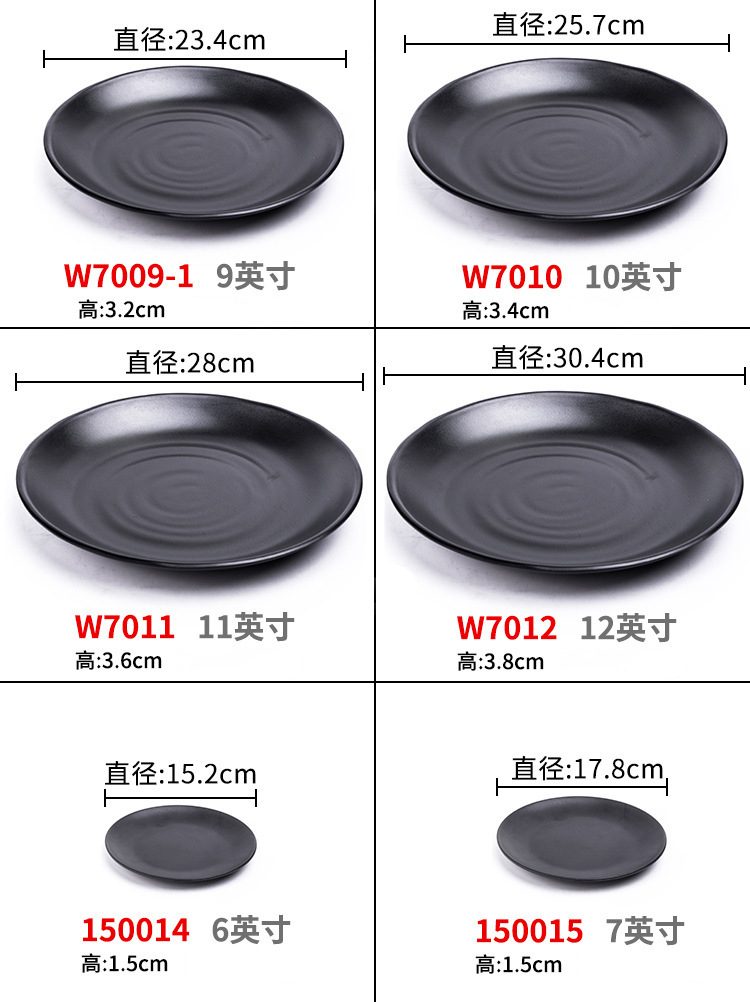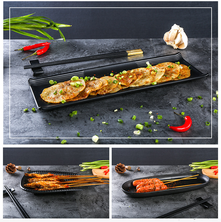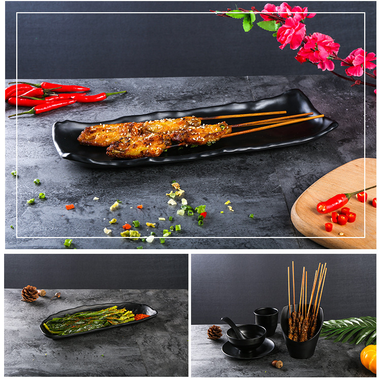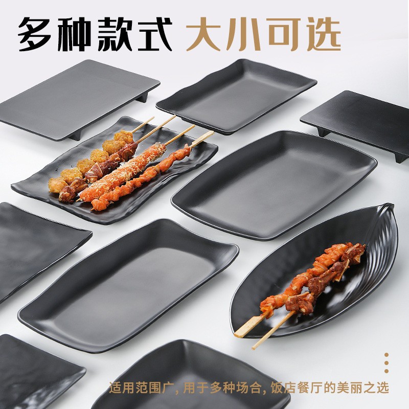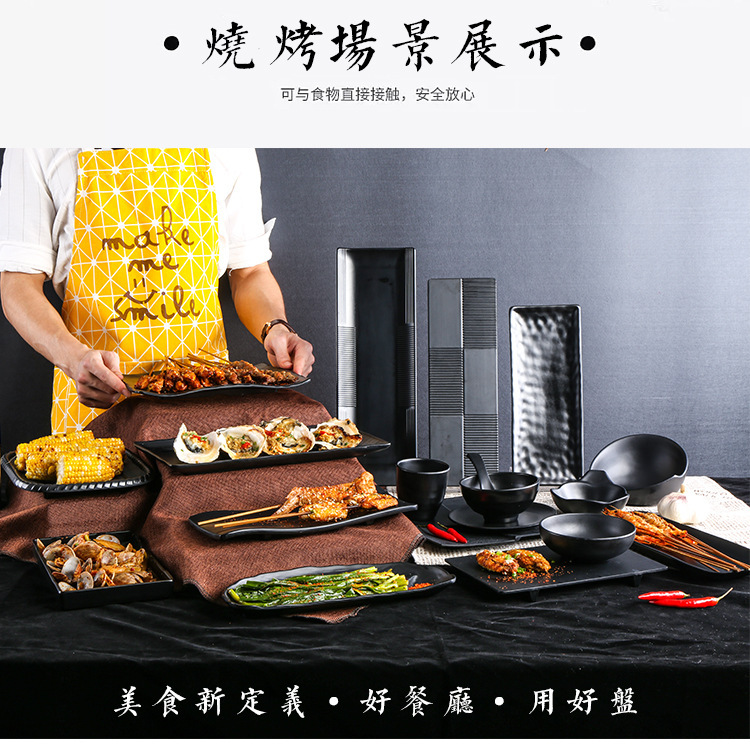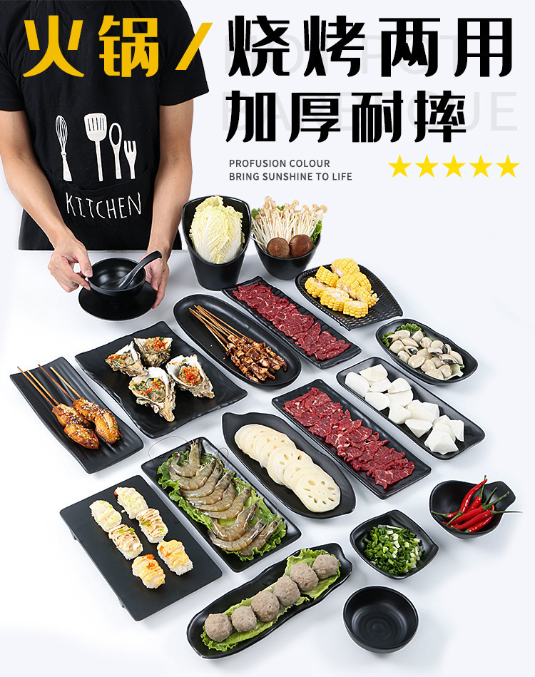 멜라민 검은 식기 플라스틱 요리 모방 도자기 접시 차가운 접시 바베큐 냄비 접시 바베큐 가게 접시 상업
