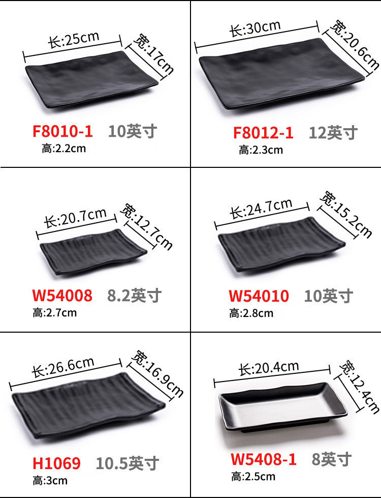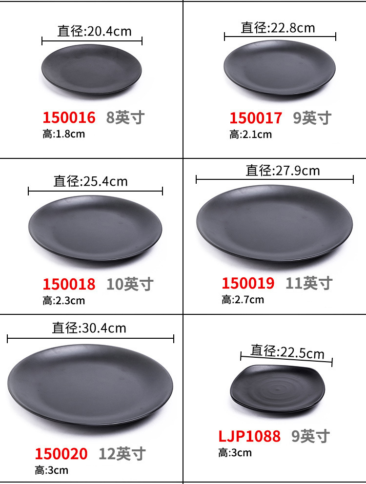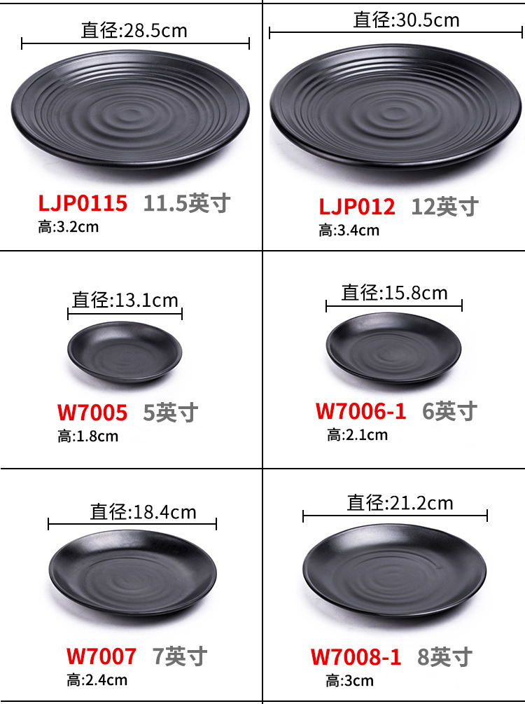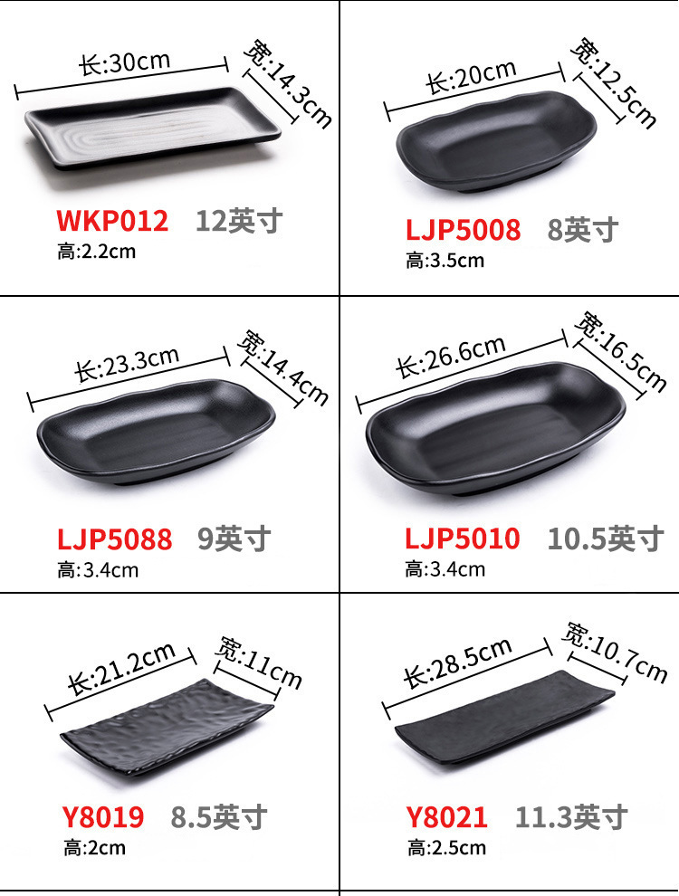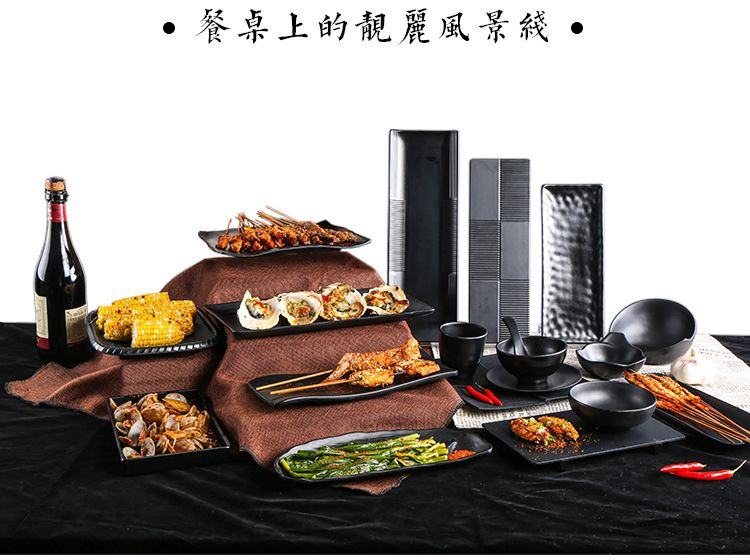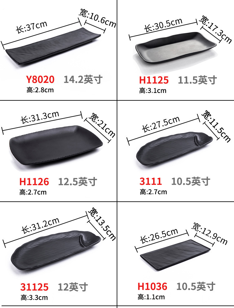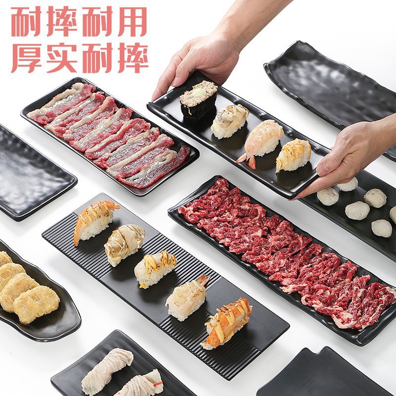 멜라민 검은 식기 플라스틱 요리 모방 도자기 접시 차가운 접시 바베큐 냄비 접시 바베큐 가게 접시 상업