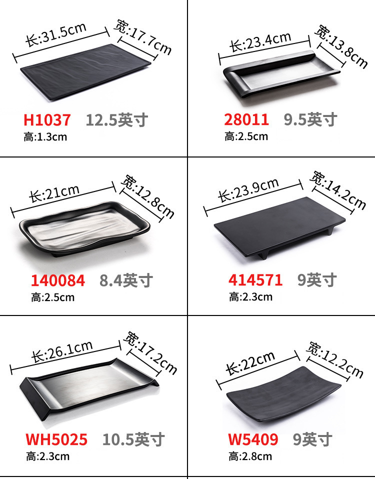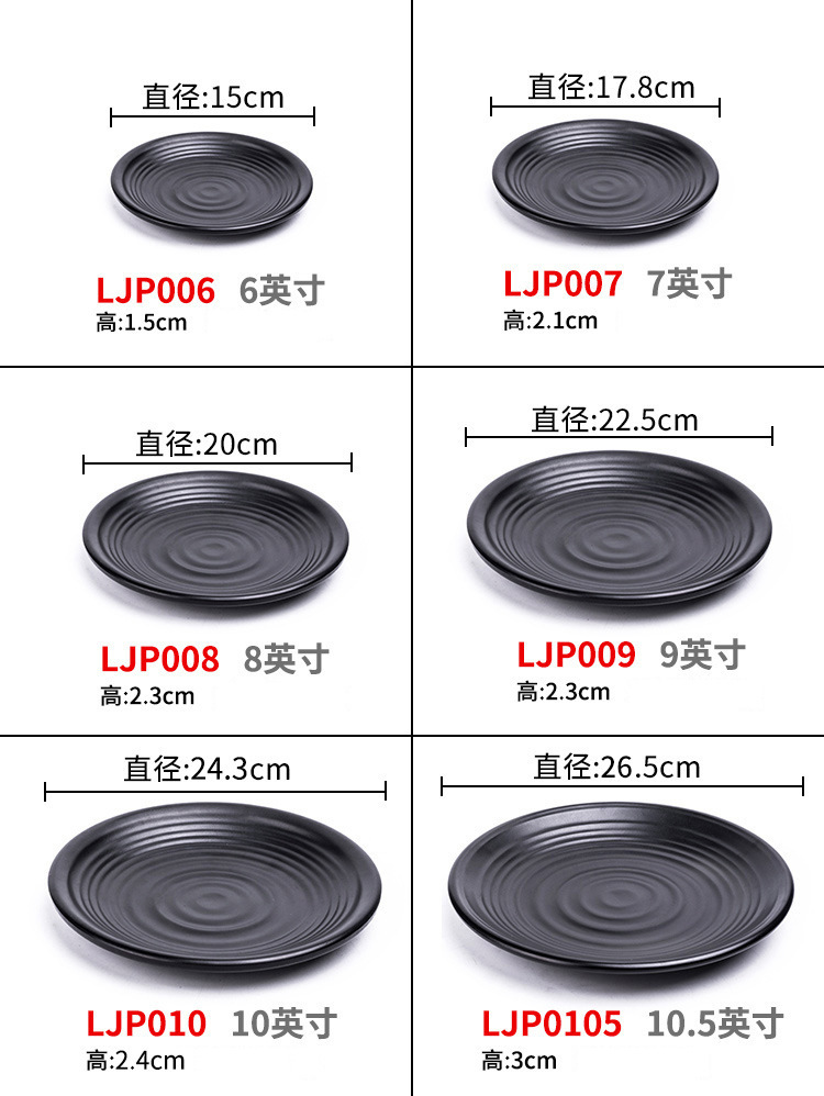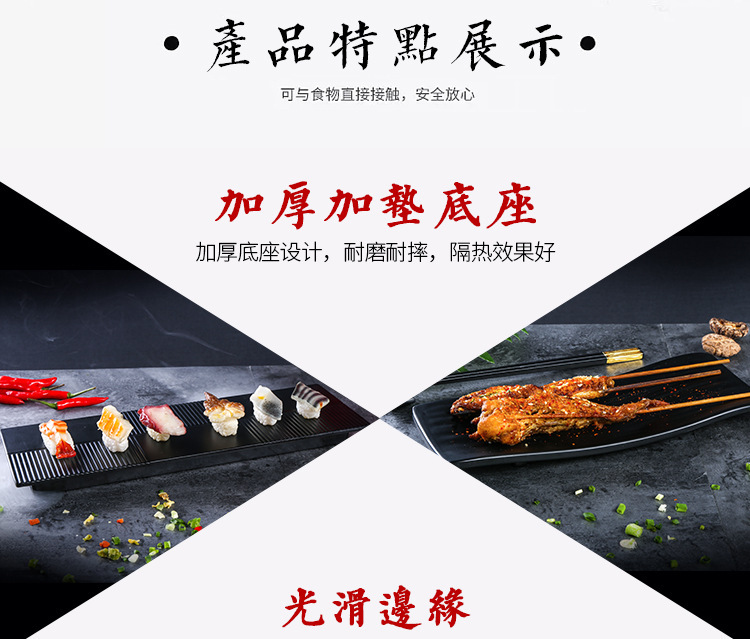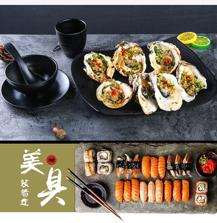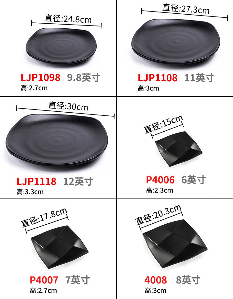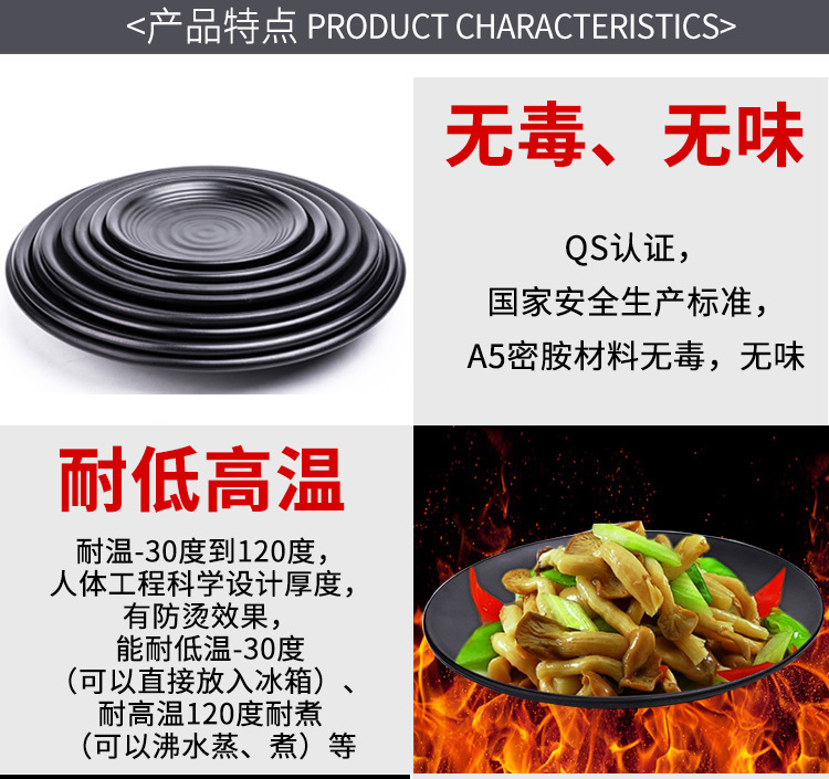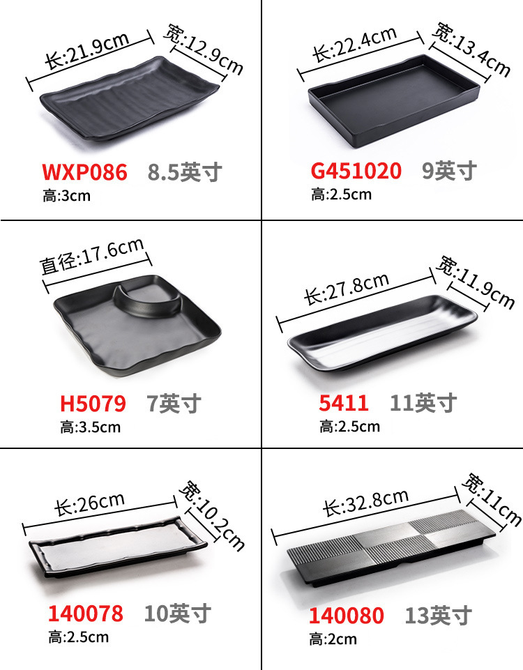 멜라민 검은 식기 플라스틱 요리 모방 도자기 접시 차가운 접시 바베큐 냄비 접시 바베큐 가게 접시 상업