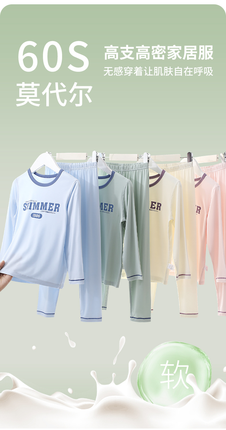 모달 가을 옷 어린이 잠옷 세트 여름 얇은 긴 소매 봄 소년 소녀 홈 착용 아이스 실크 에어컨 옷