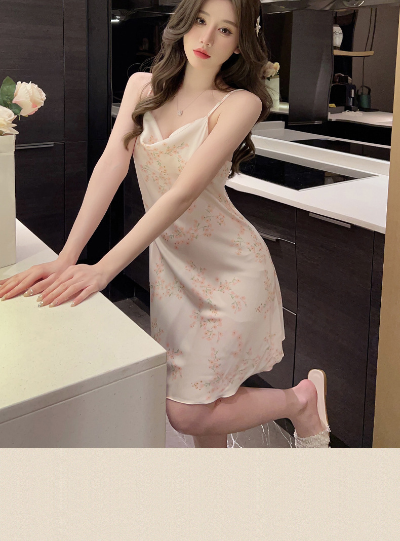새로운 여성의 여름 섹시한 나이트 드레스 슬링 아이스 실크 스윙 칼라 인쇄 파자마 라이브 폭발 속옷 홈 웨어 얇은