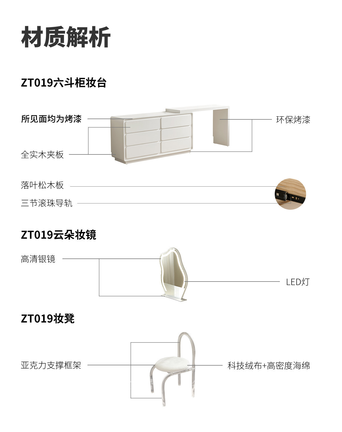 1.2m 화장대 + 구름거울 + 1.8m 서랍장