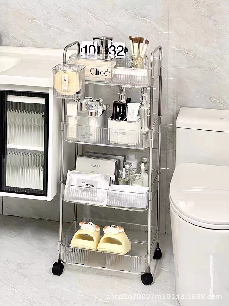 좁은 다층 스토리지 랙 스낵 랙 책꽂이 욕실 용품 스토리지 랙 아크릴 투명 트롤리