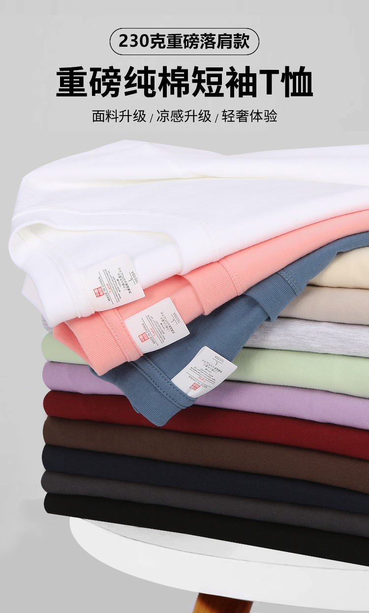 수닝 헤비웨이트 230g 순면 스몰 드롭숄더 라지 사이즈 라운드넥 반팔 티셔츠 남성용 무지 티셔츠 문화 티셔츠 도매
