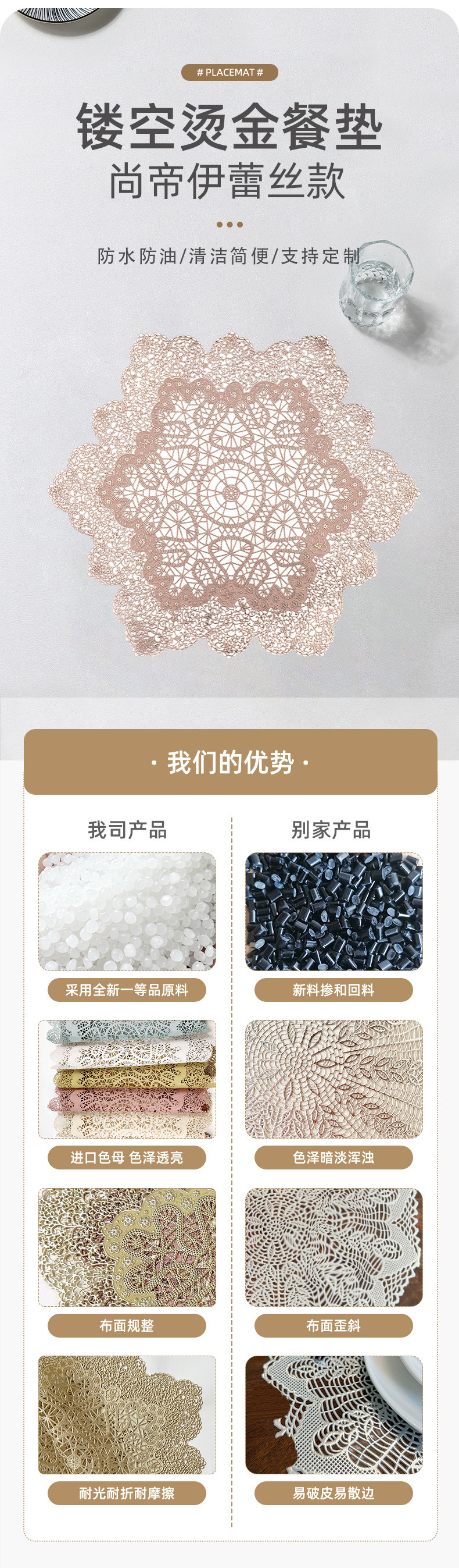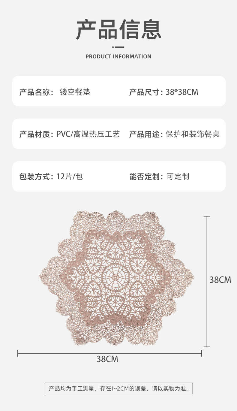 유럽식 pvc 브론 징 플레이스 매트 간단한 빈 아웃 빨 수없는 단열 매트 가정용 그릇 매트 코스터 식탁 접시 매트 도매
