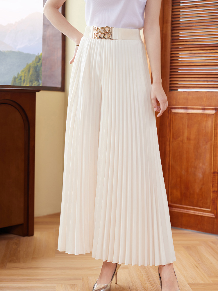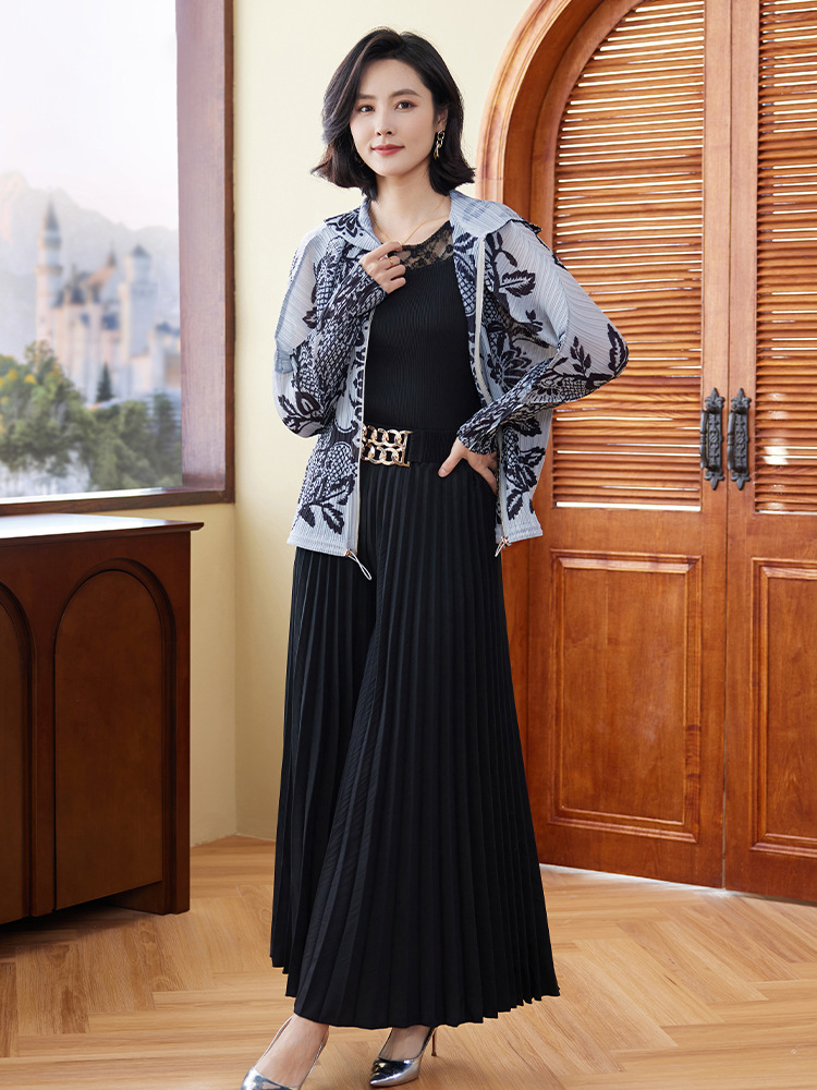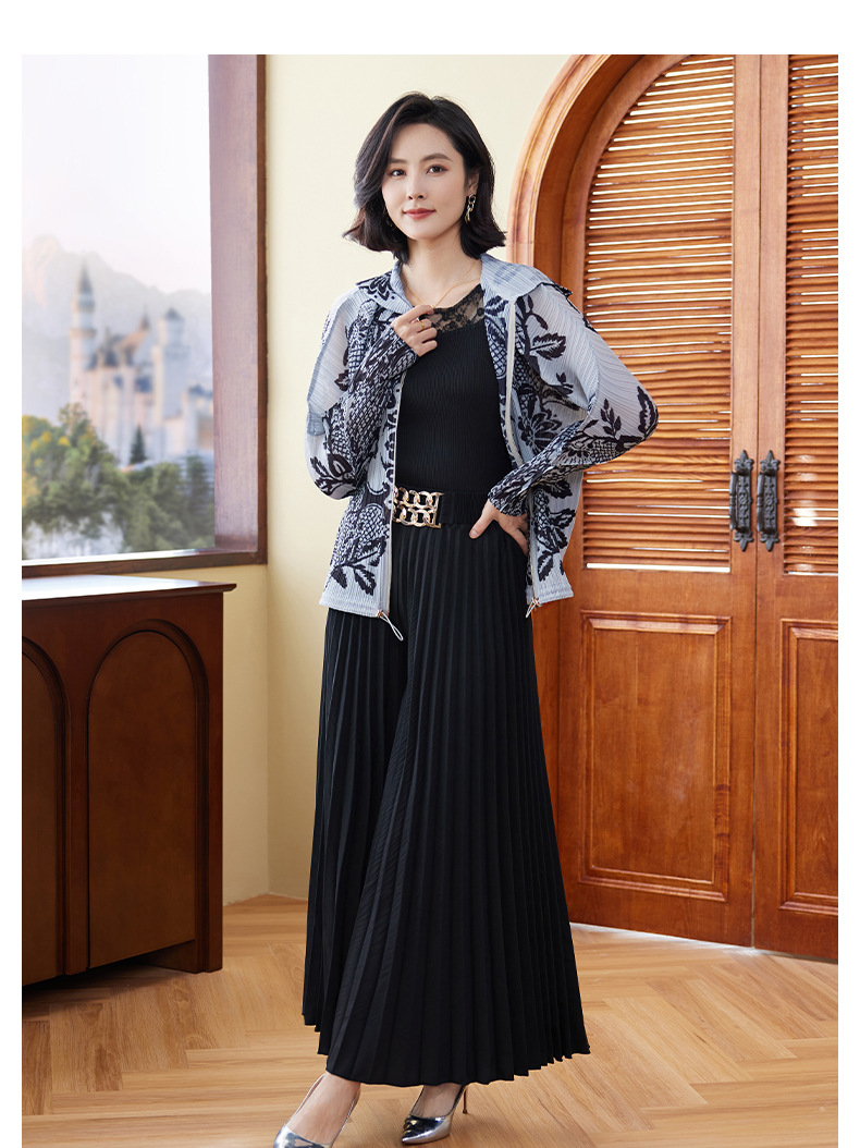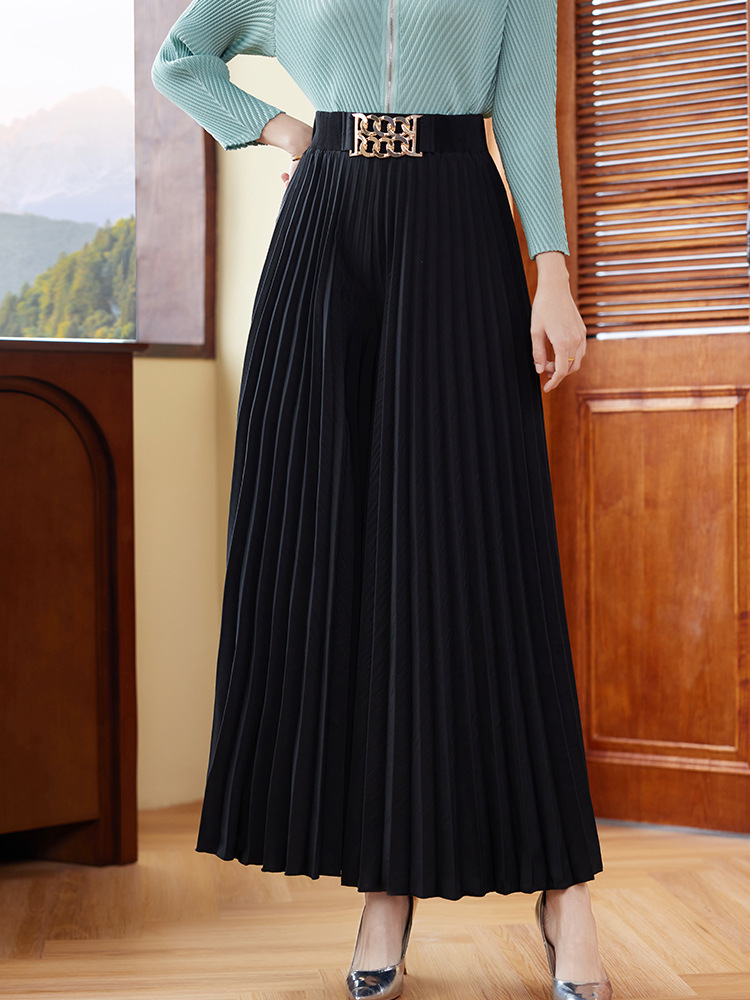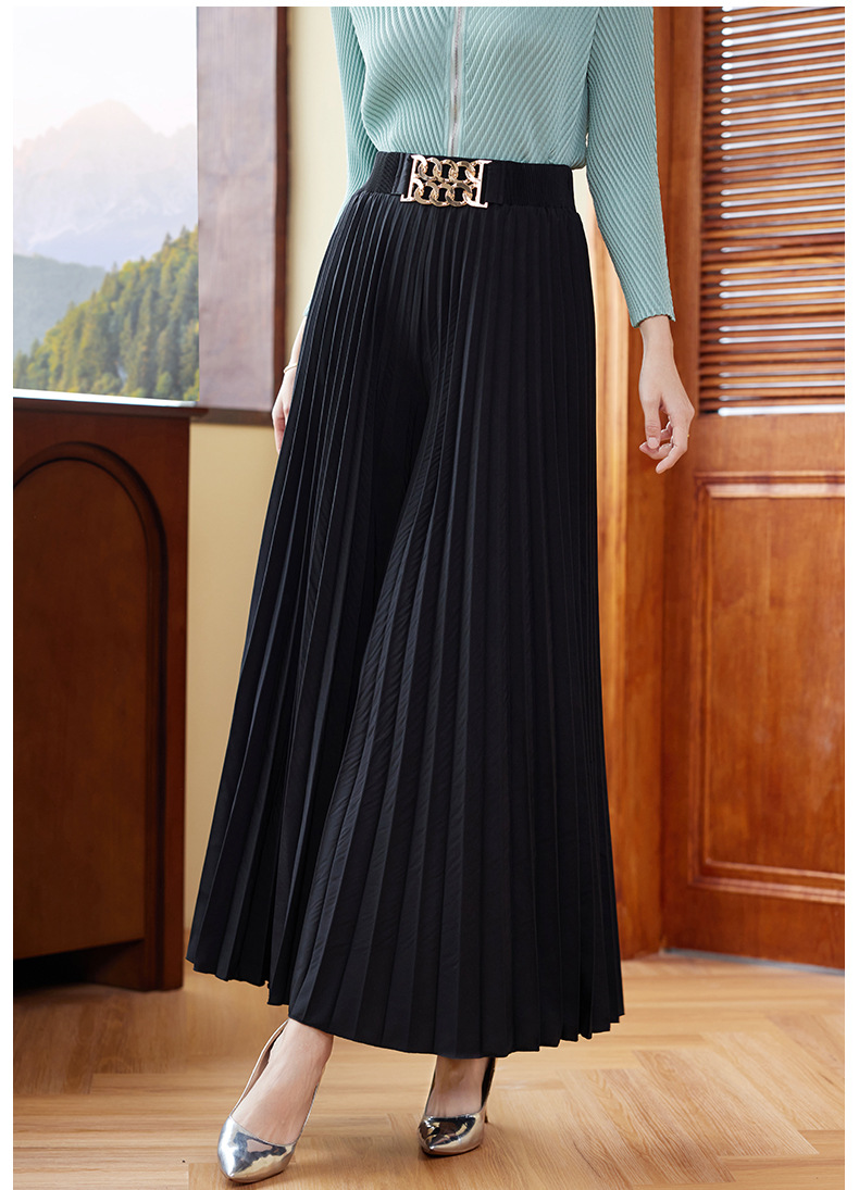 미야케 블랙 여성용 만능 캐주얼 팬츠 2026 봄 가을 신상 플리츠 스트레이트 팬츠 고급스러운 드레이프감의 와이드 팬츠