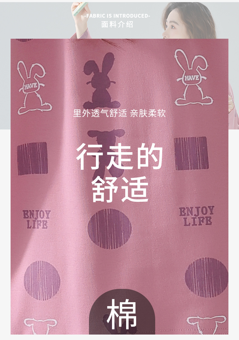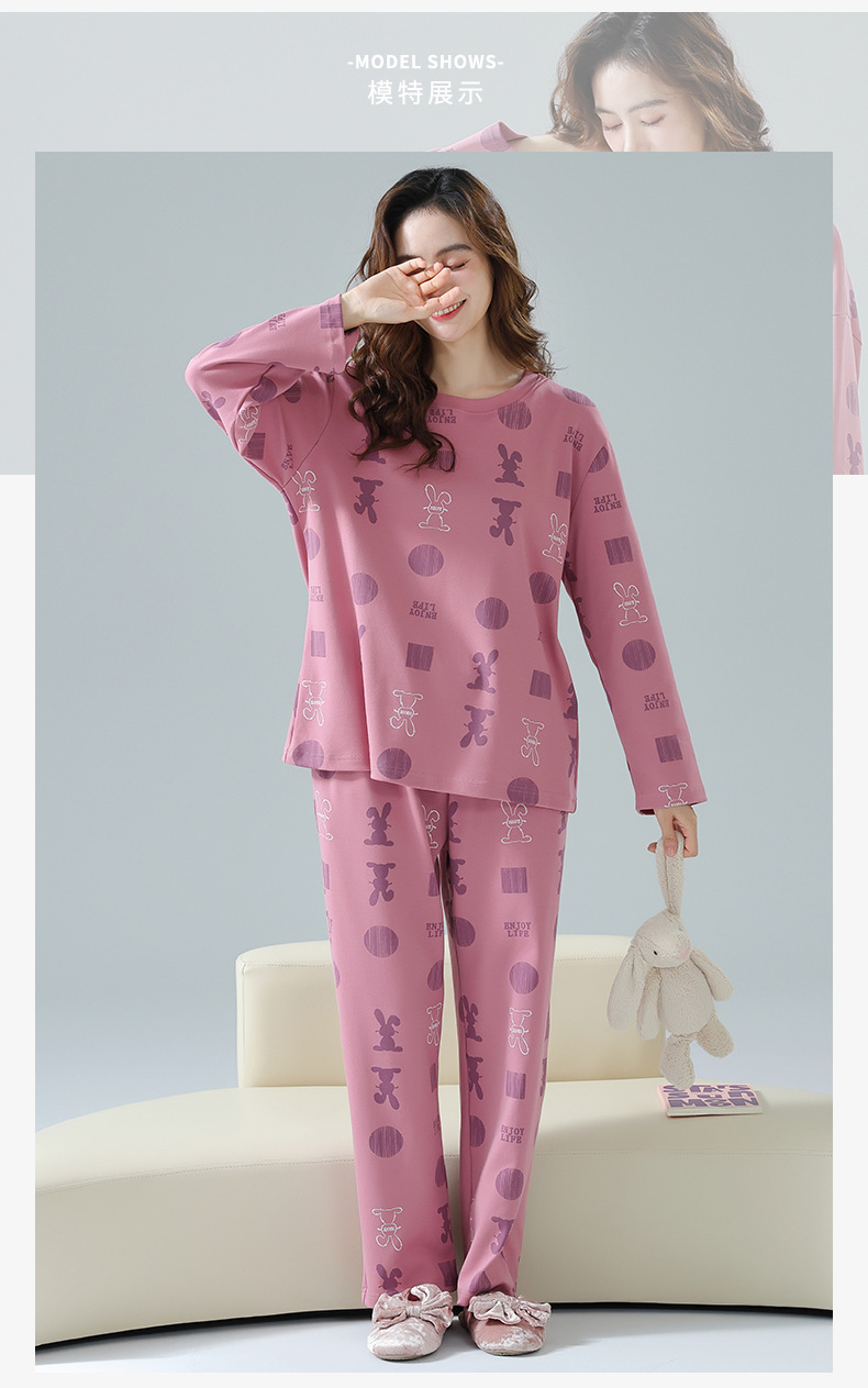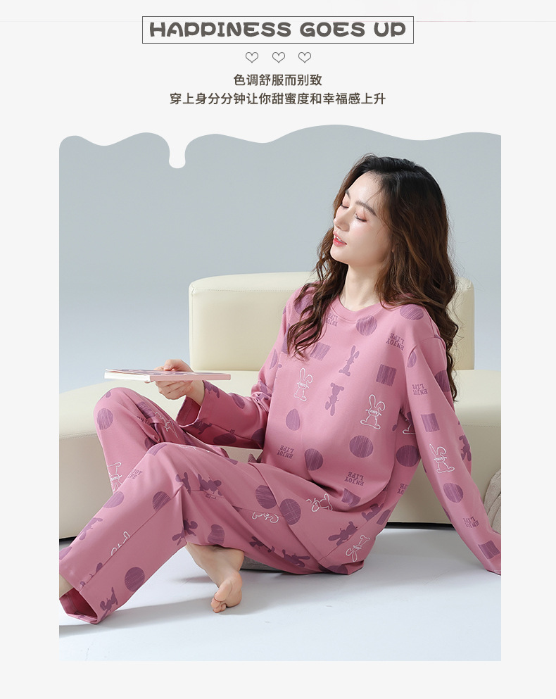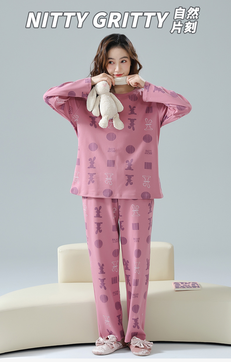 봄과 가을 잠옷 여성용 긴팔 바지 둥근 목 원피스 캐주얼 얇은면 세트 가슴 패드가 달린 청소년 홈웨어