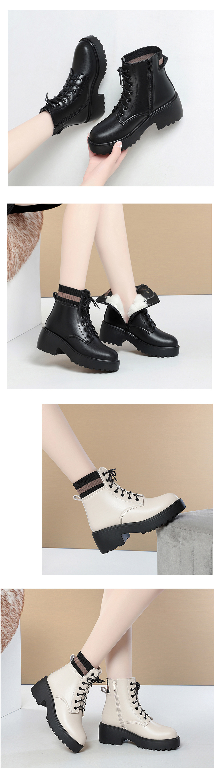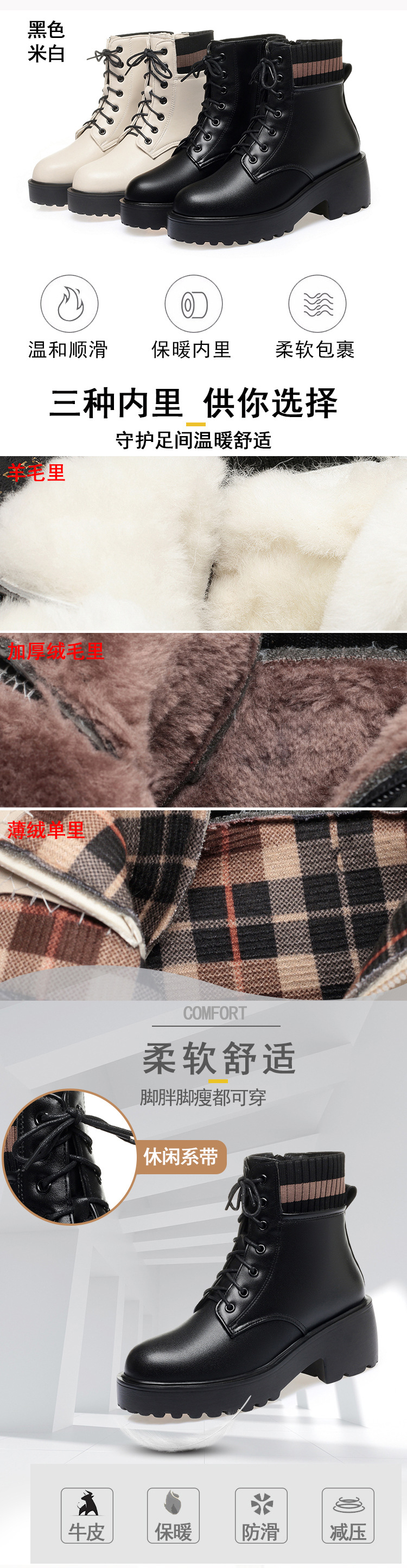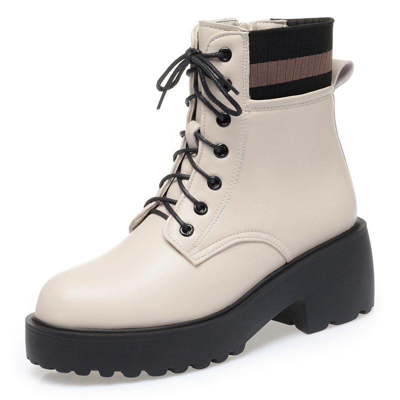 가을 겨울 여성을위한 화이트 마틴 부츠 새로운 기모 두꺼운 바닥 짧은 부츠 정품 가죽 양모 면화 패드 신발 영국 대형 싱글 레이어 부츠