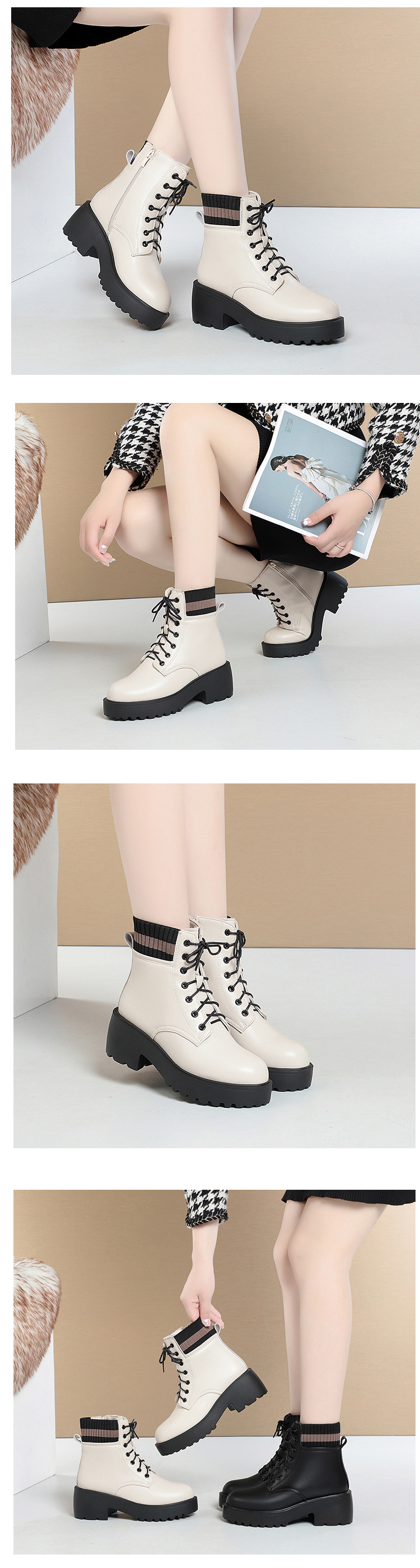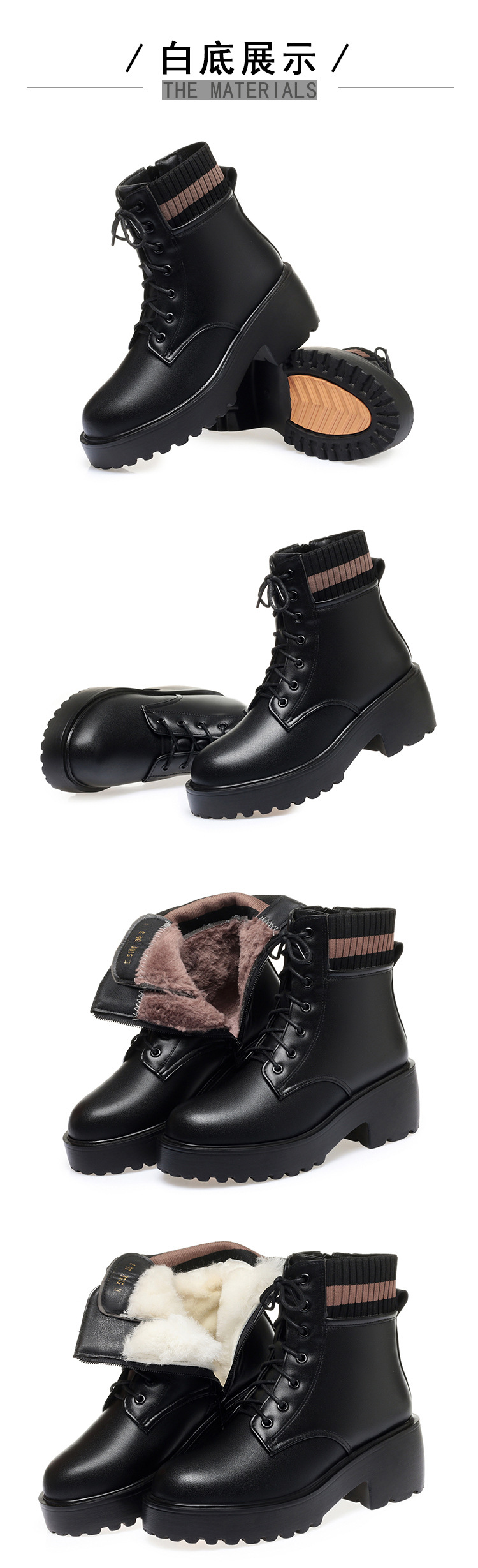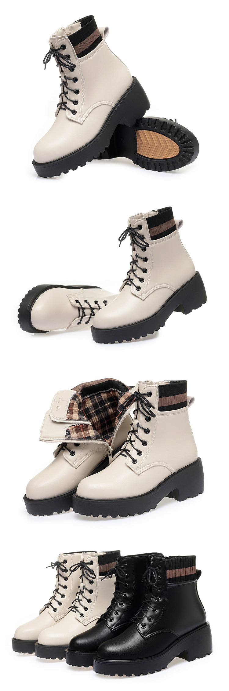 가을 겨울 여성을위한 화이트 마틴 부츠 새로운 기모 두꺼운 바닥 짧은 부츠 정품 가죽 양모 면화 패드 신발 영국 대형 싱글 레이어 부츠