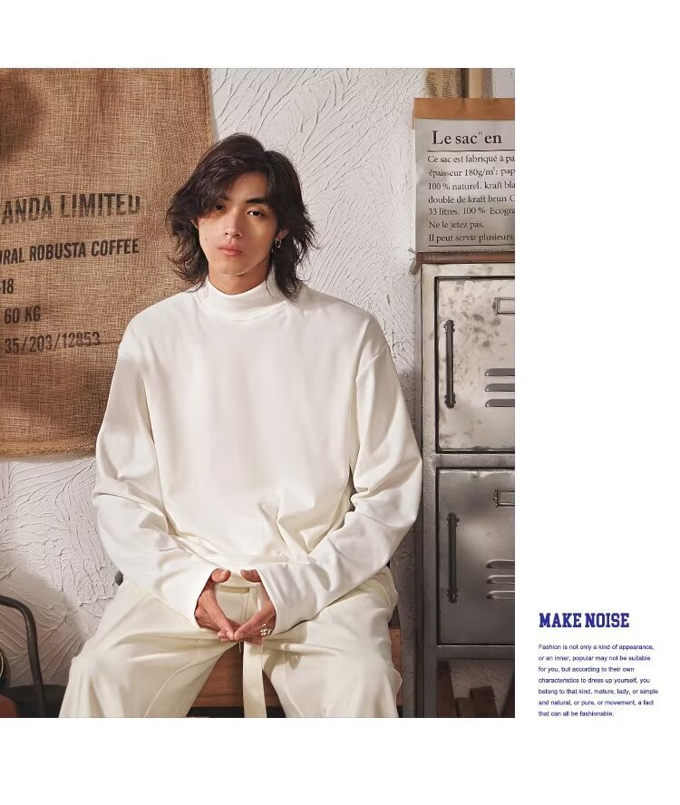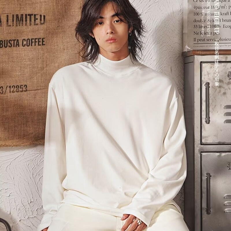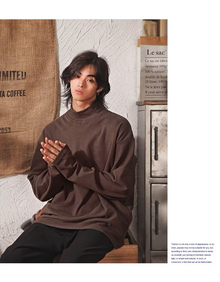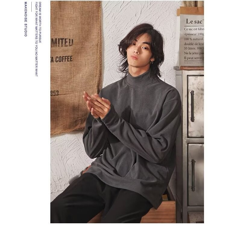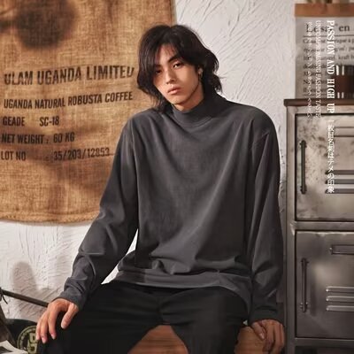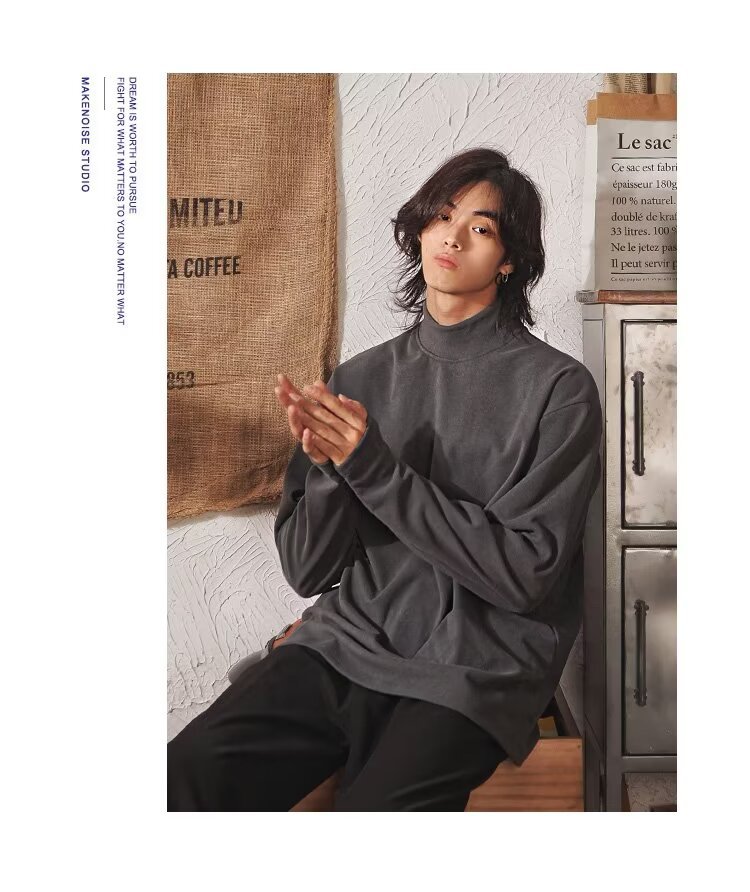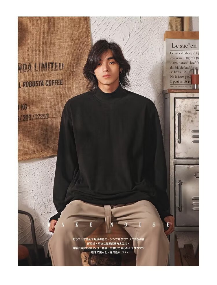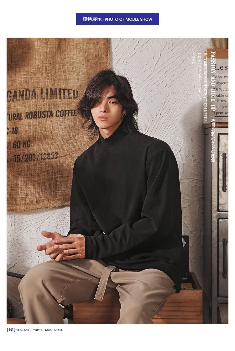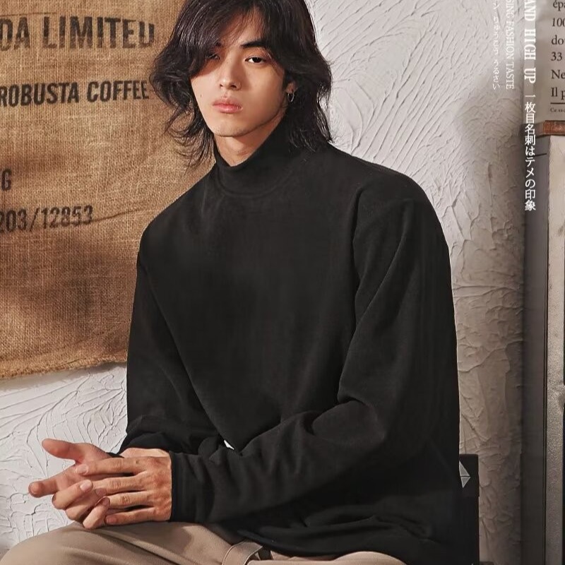 일본식 벨벳 하프 터틀넥 긴팔 티셔츠 남성용 가을과 겨울 기모 두꺼운 따뜻한 내복 단색 스웨터 바닥 셔츠