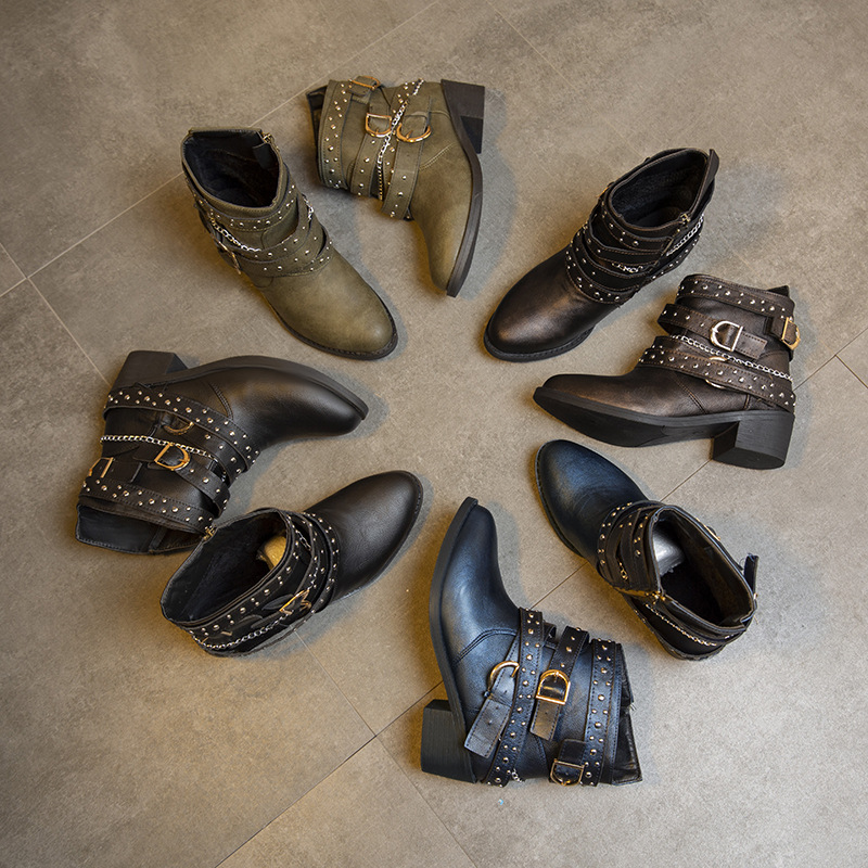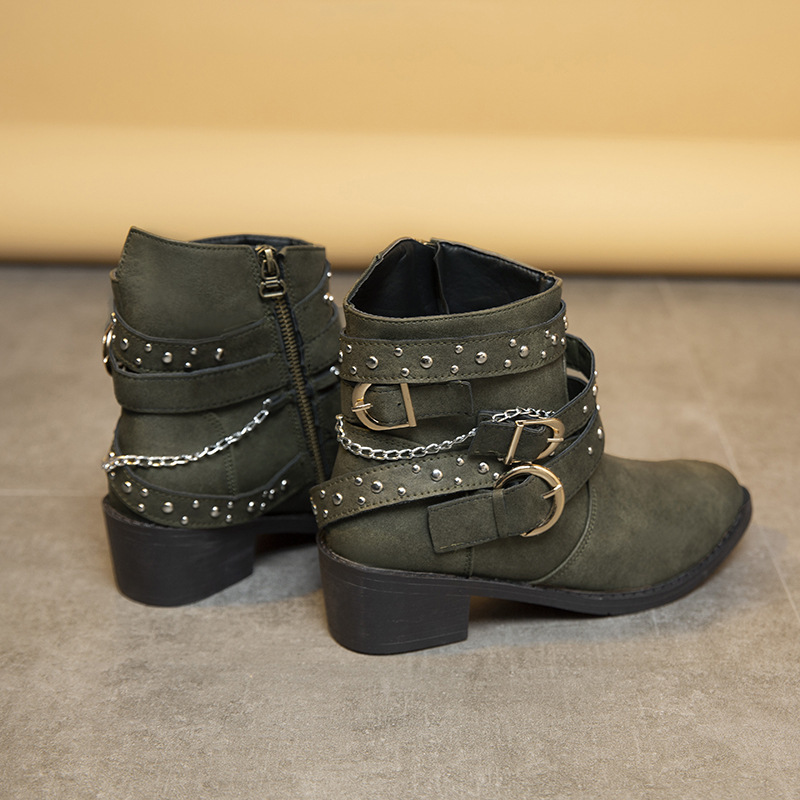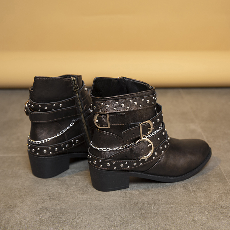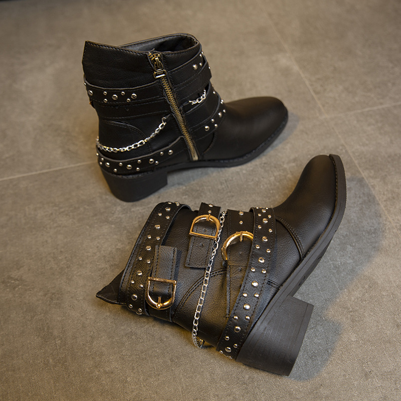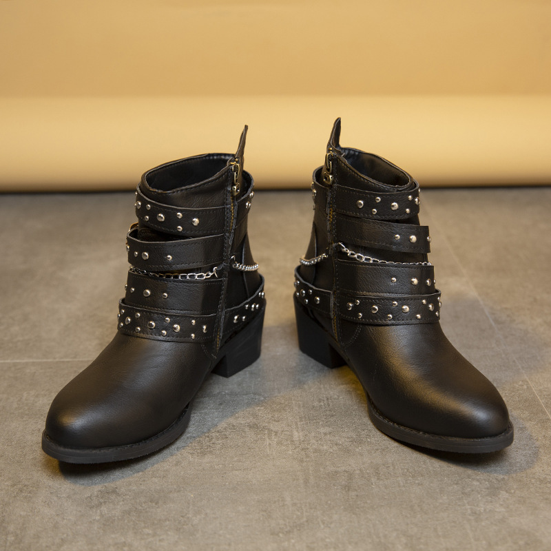 2025년 가을 신상 여성용 크로스보더 마틴 부츠, 유럽 및 미국 펑크 스타일 리벳 장식 캐주얼 웨스트코스트 미드카프 부츠 도매
