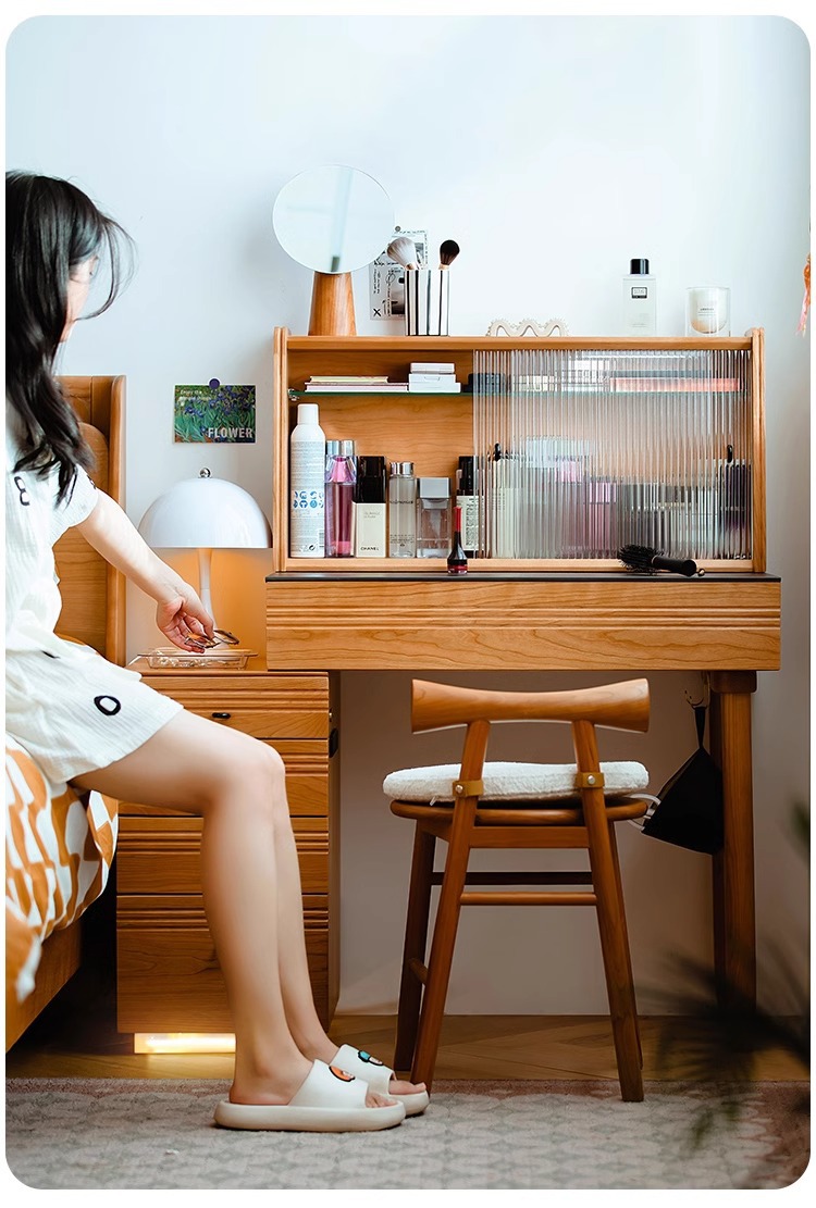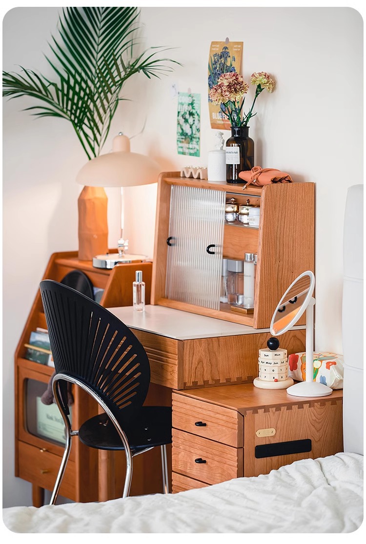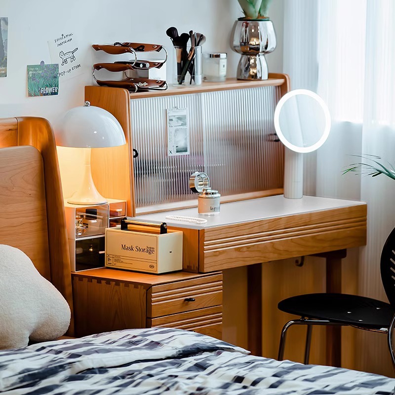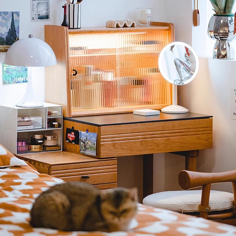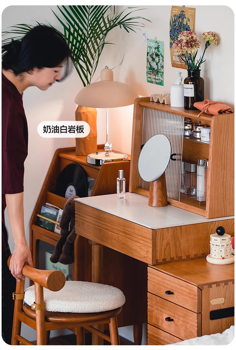 봄 드레싱 테이블 드레싱 캐비닛 체리 나무 단단한 나무 바위 플레이트 서랍장 침대 옆 테이블 메이크업 테이블 침실 드레싱 테이블