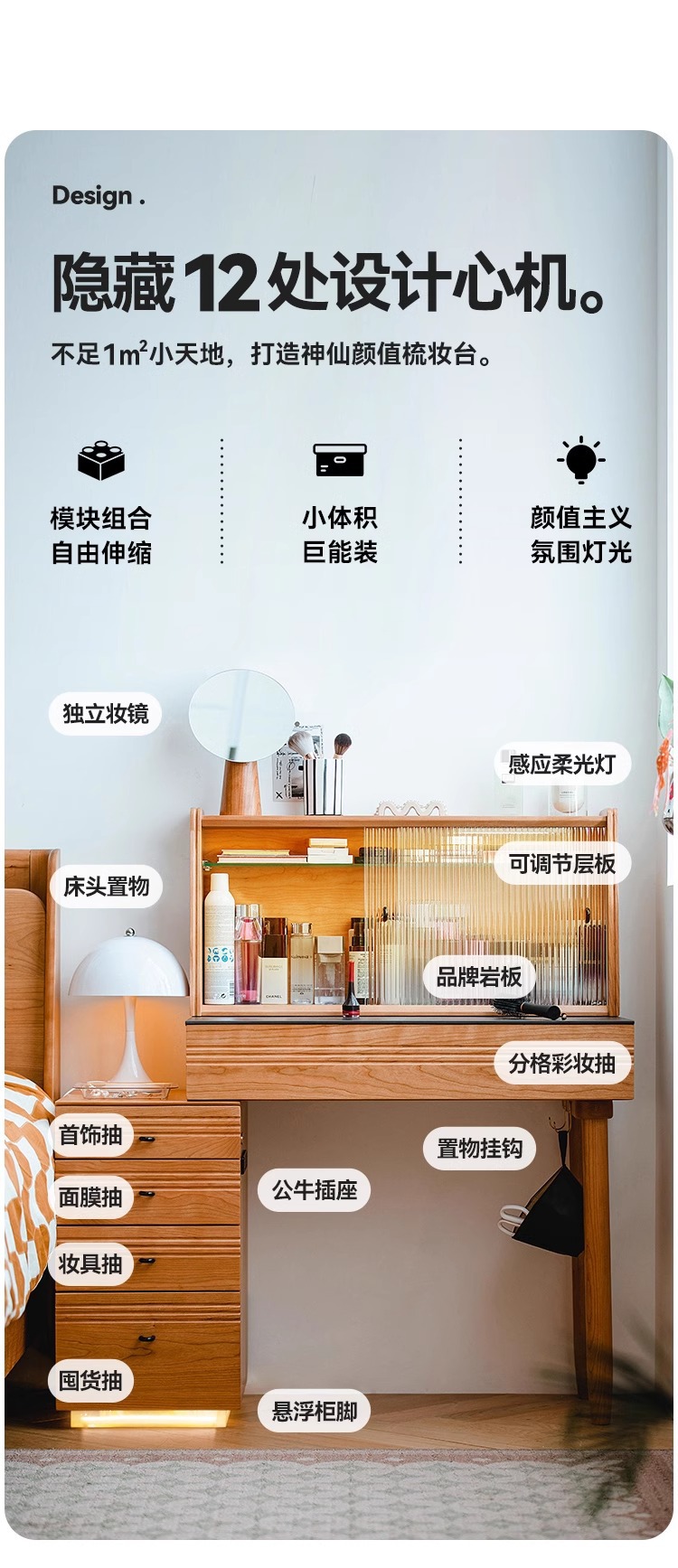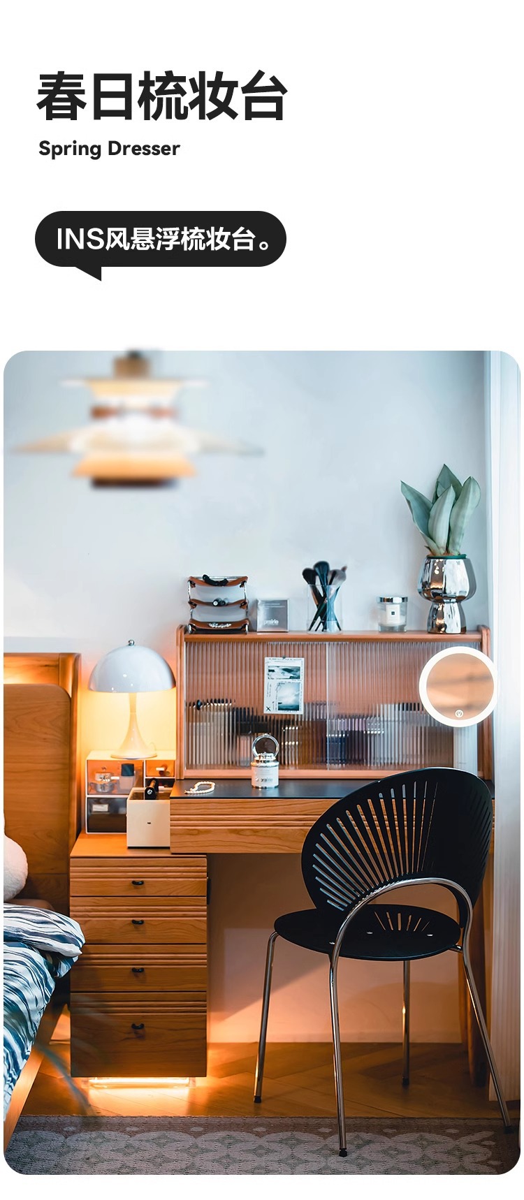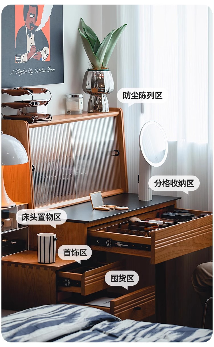 봄 드레싱 테이블 드레싱 캐비닛 체리 나무 단단한 나무 바위 플레이트 서랍장 침대 옆 테이블 메이크업 테이블 침실 드레싱 테이블