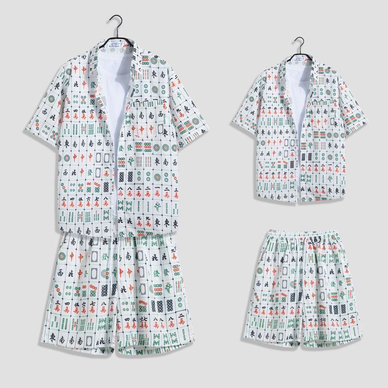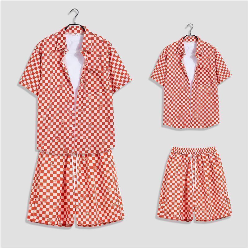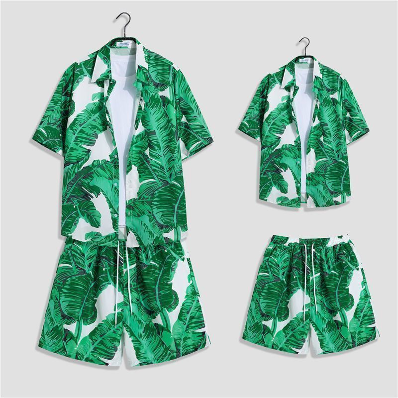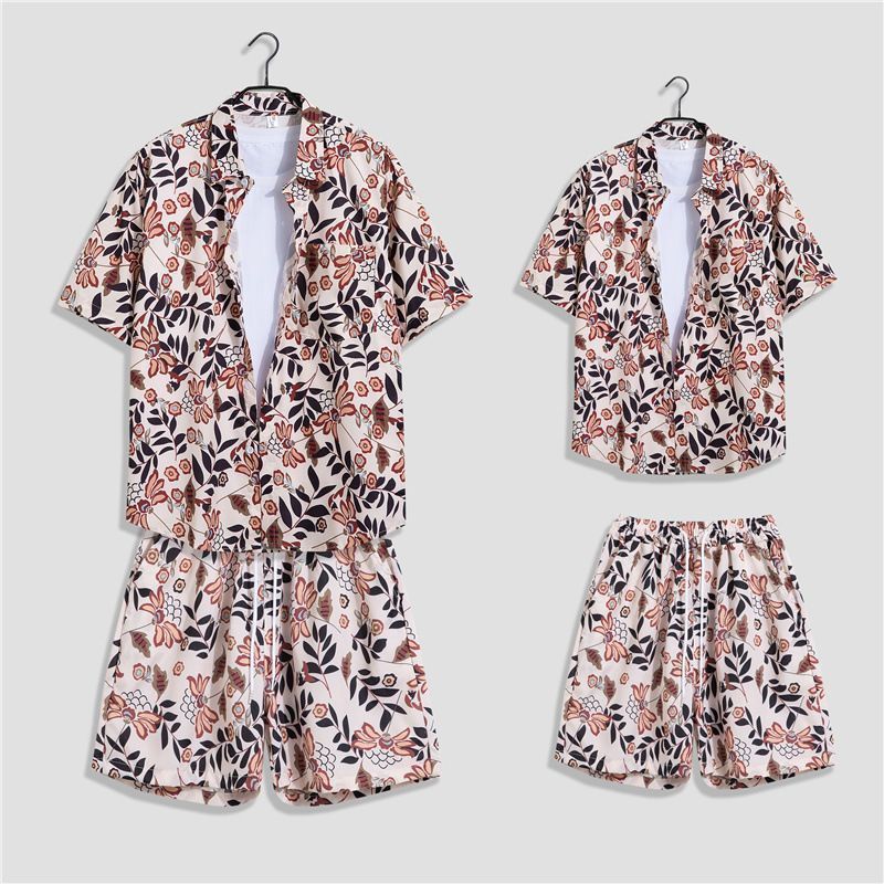 여름 해변 세트 남성 반팔 꽃 셔츠 플러스 사이즈 느슨한 커플은 하와이안 셔츠 반바지 투피스 세트 착용합니다.